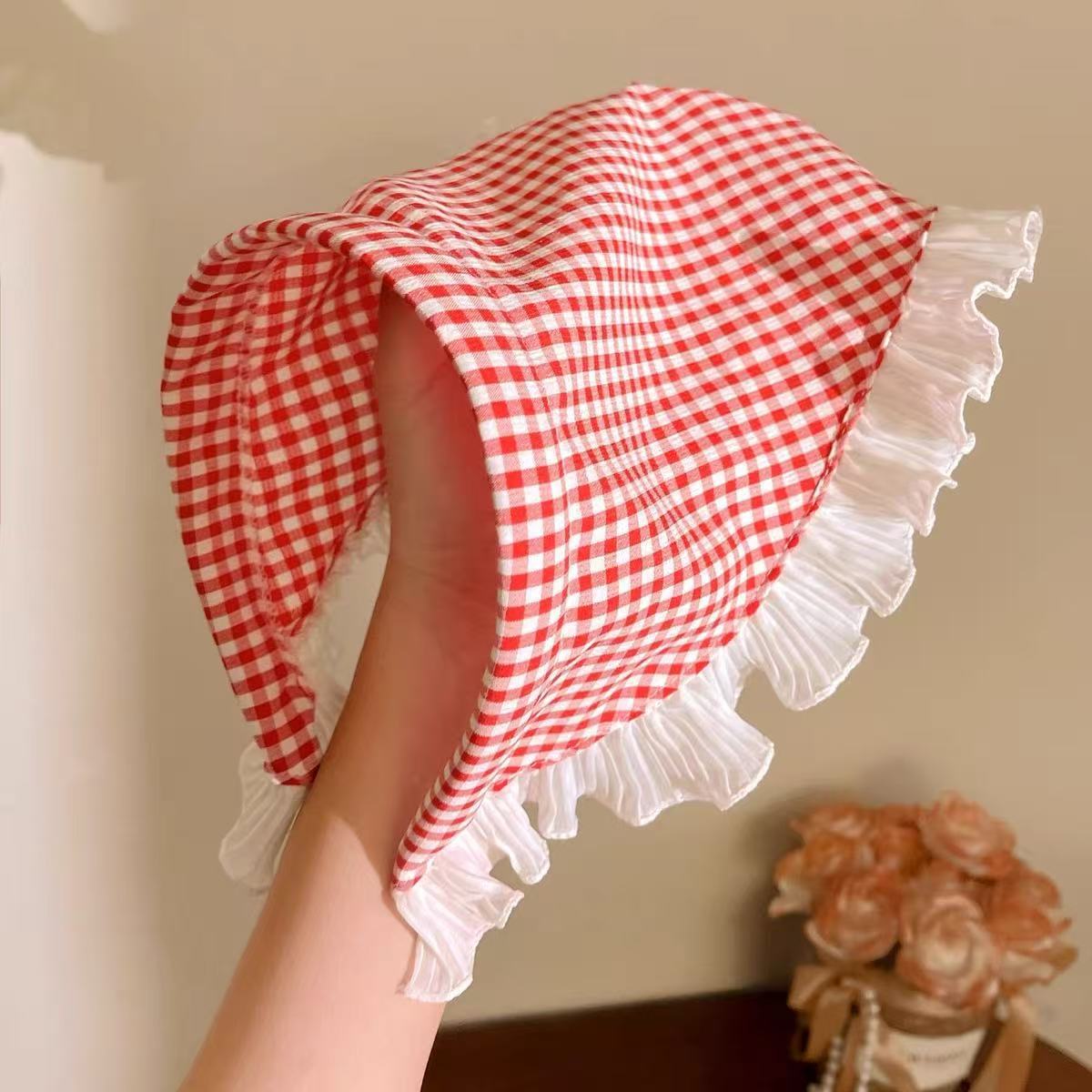 • 12 # 붉은 격자 무늬 머리띠
