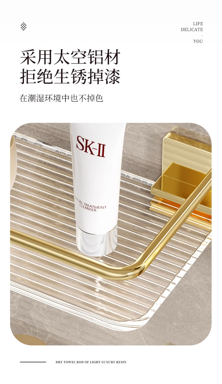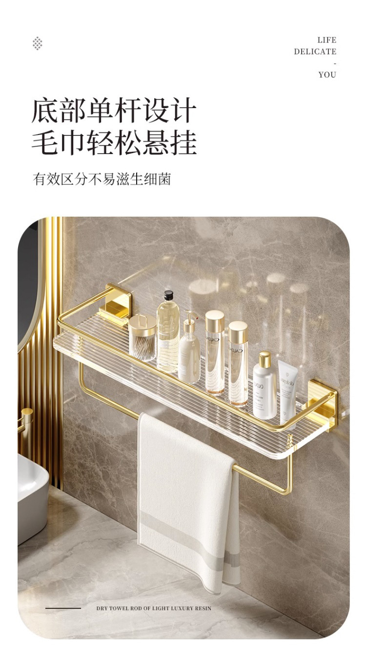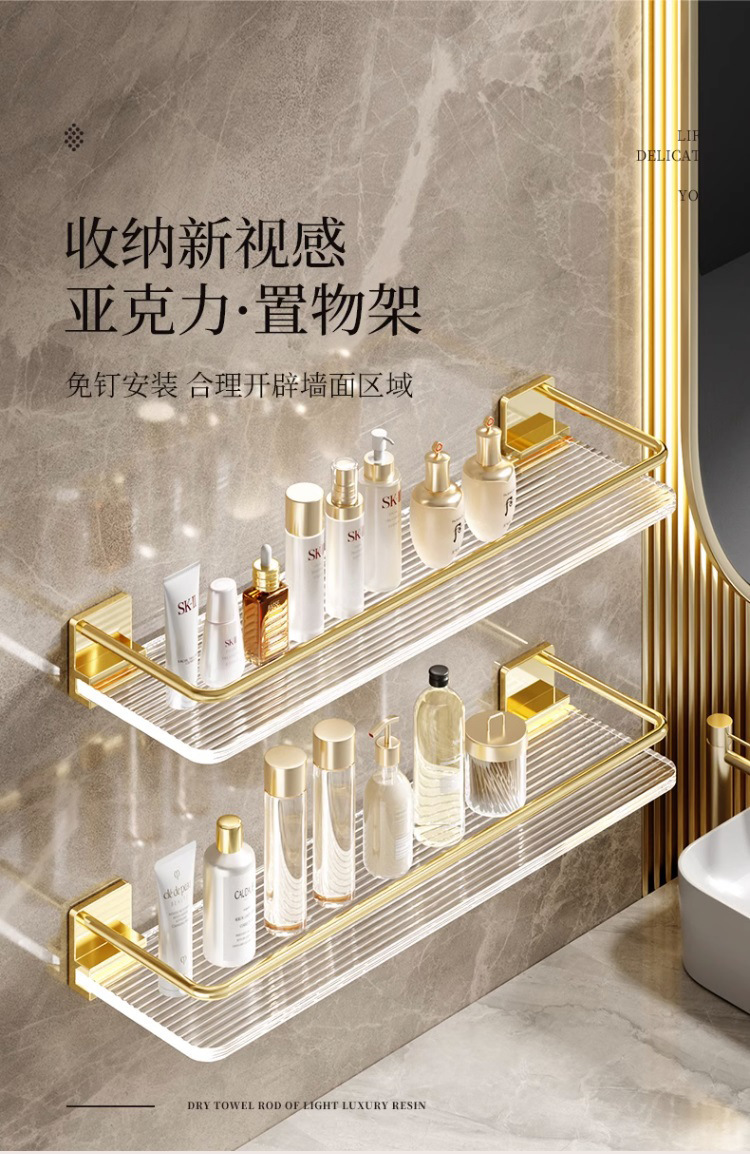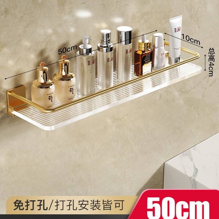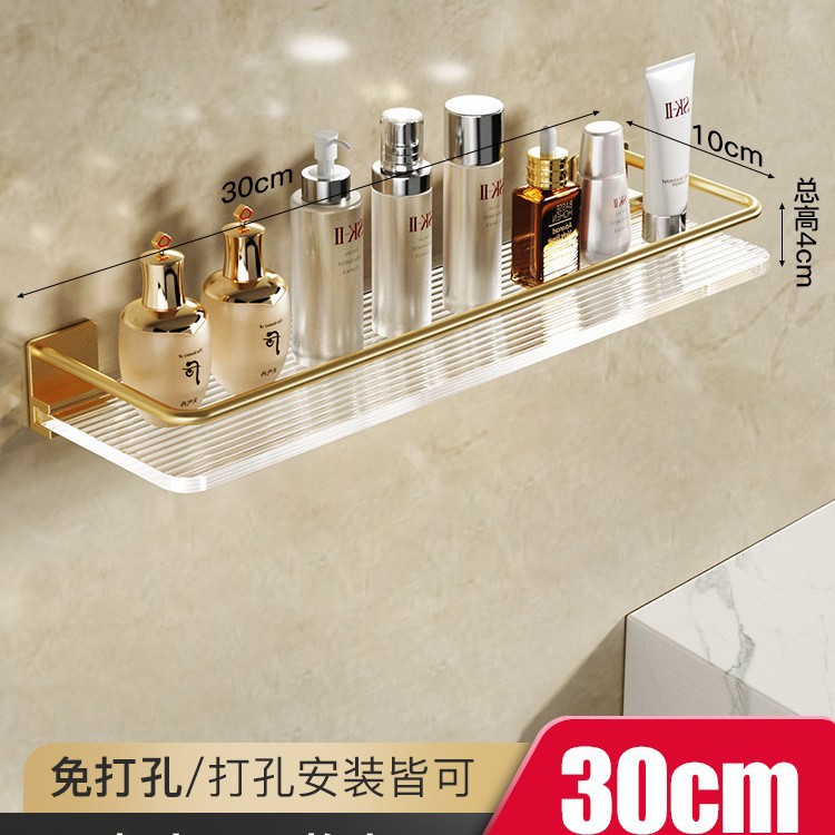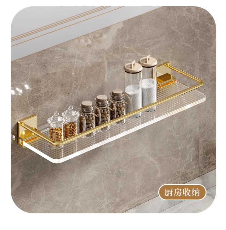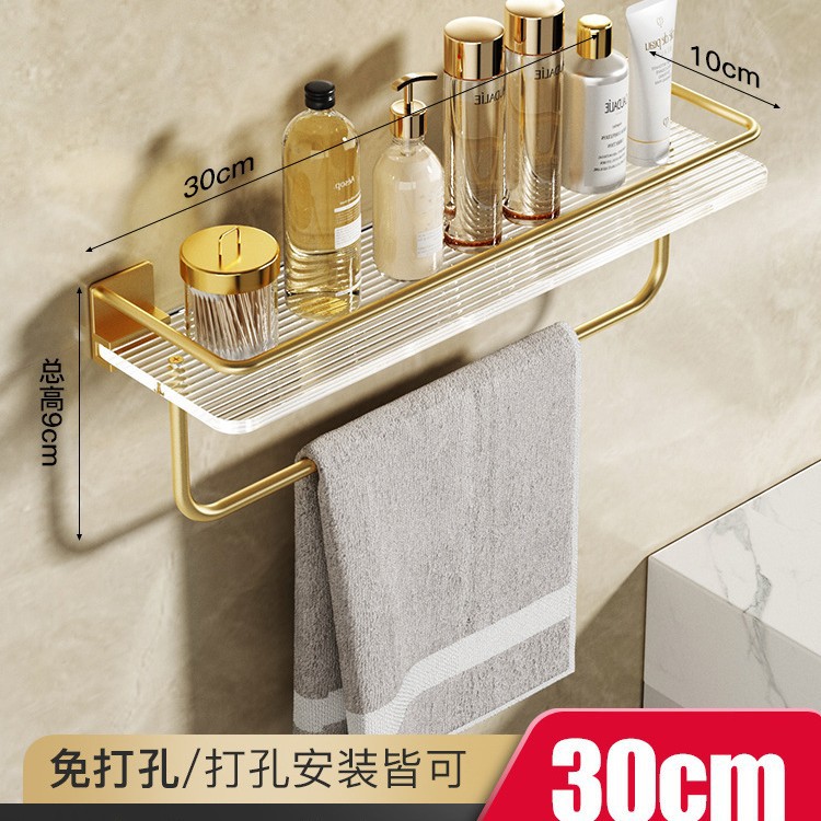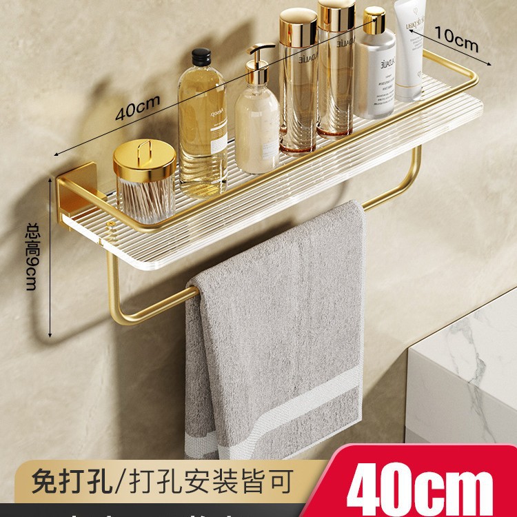 공간 알루미늄 벽에 장착 된 펀치 프리 라이트 럭셔리 골드 아크릴 욕실 보관 랙 욕실 수건 보관 랙