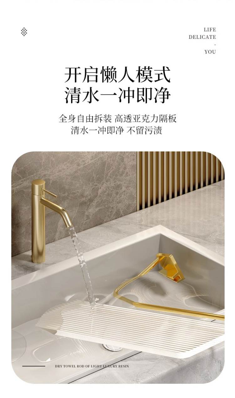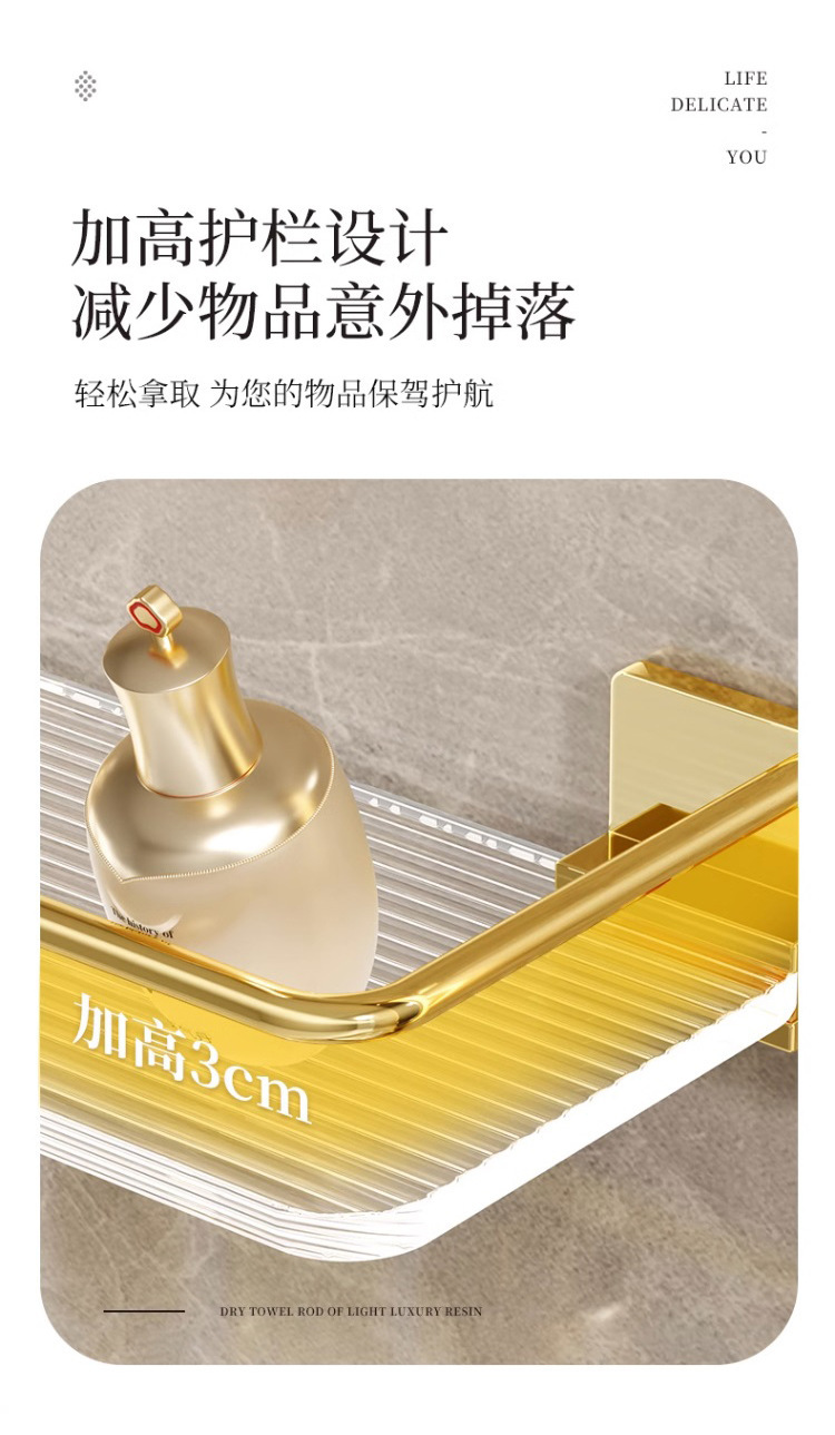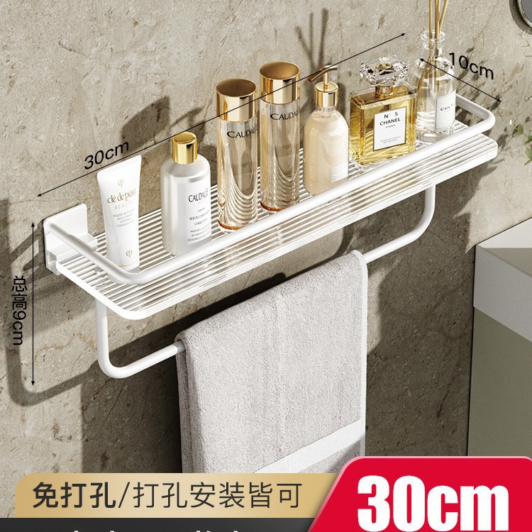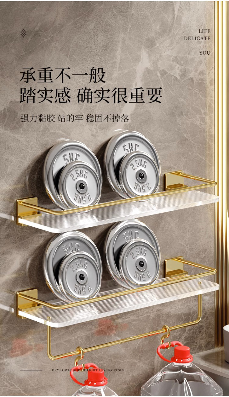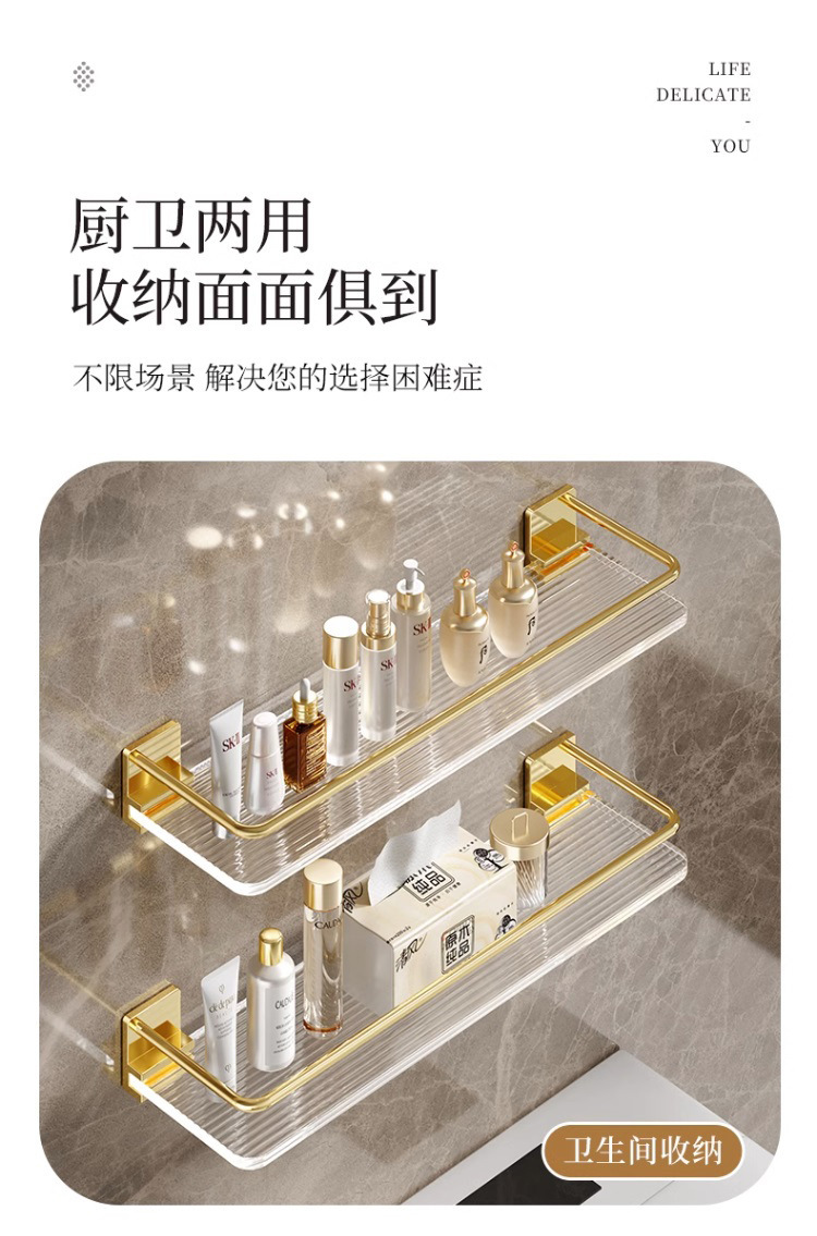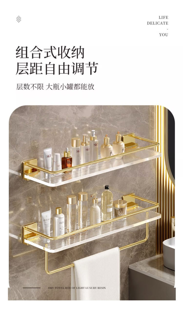 공간 알루미늄 벽에 장착 된 펀치 프리 라이트 럭셔리 골드 아크릴 욕실 보관 랙 욕실 수건 보관 랙