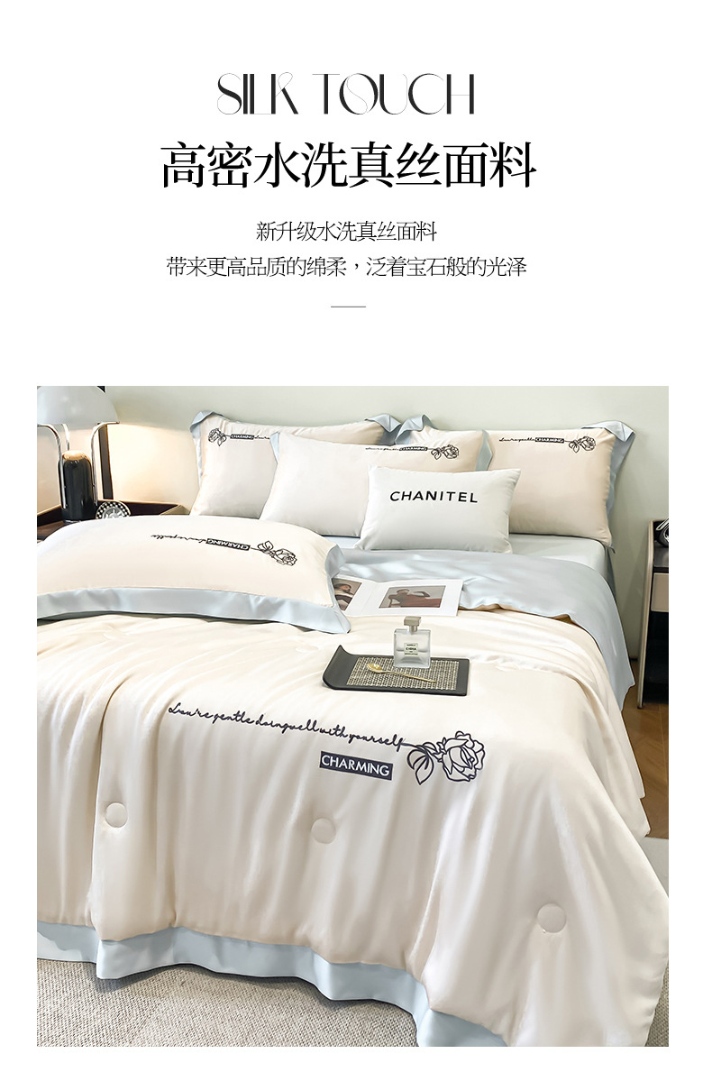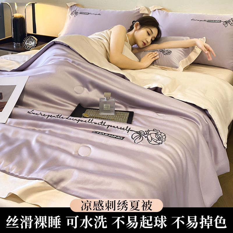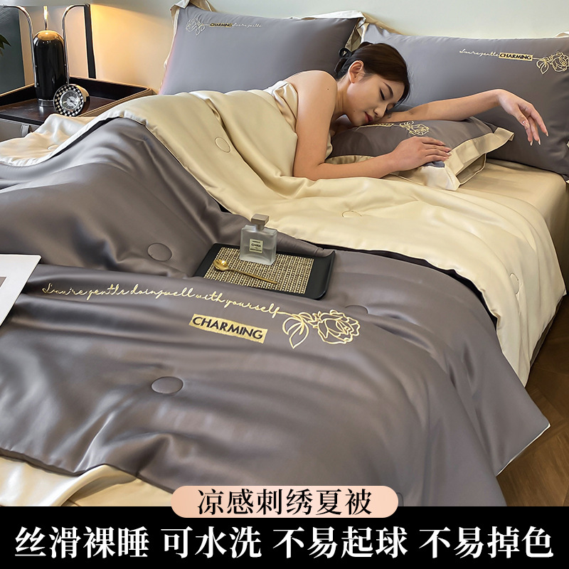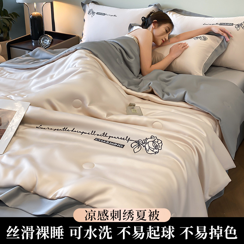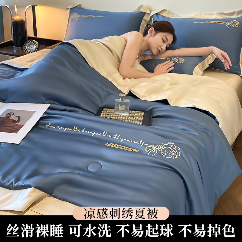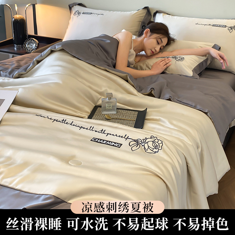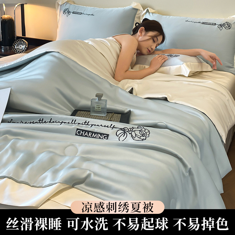 2025 새로운 국경 간 대외 무역 여름 얼음 실크 에어컨 이불 여름 시원한 이불 세탁기로 세탁 가능한 3 또는 4 피스 세트 도매