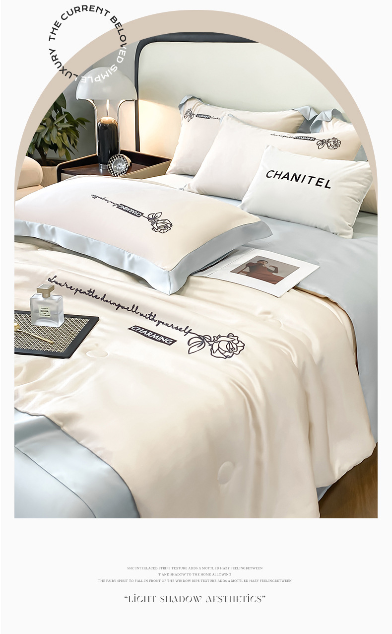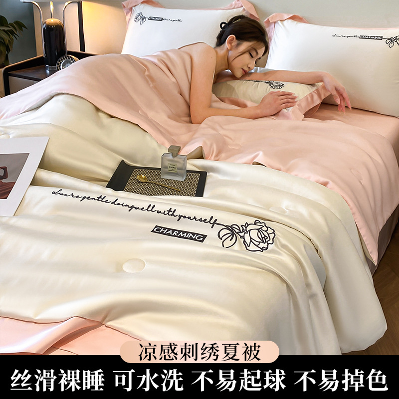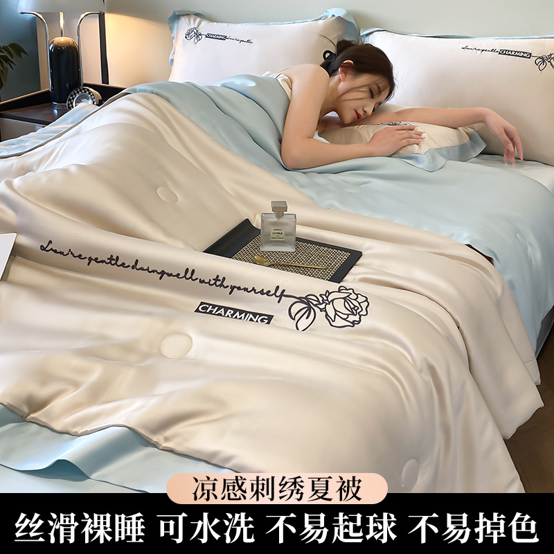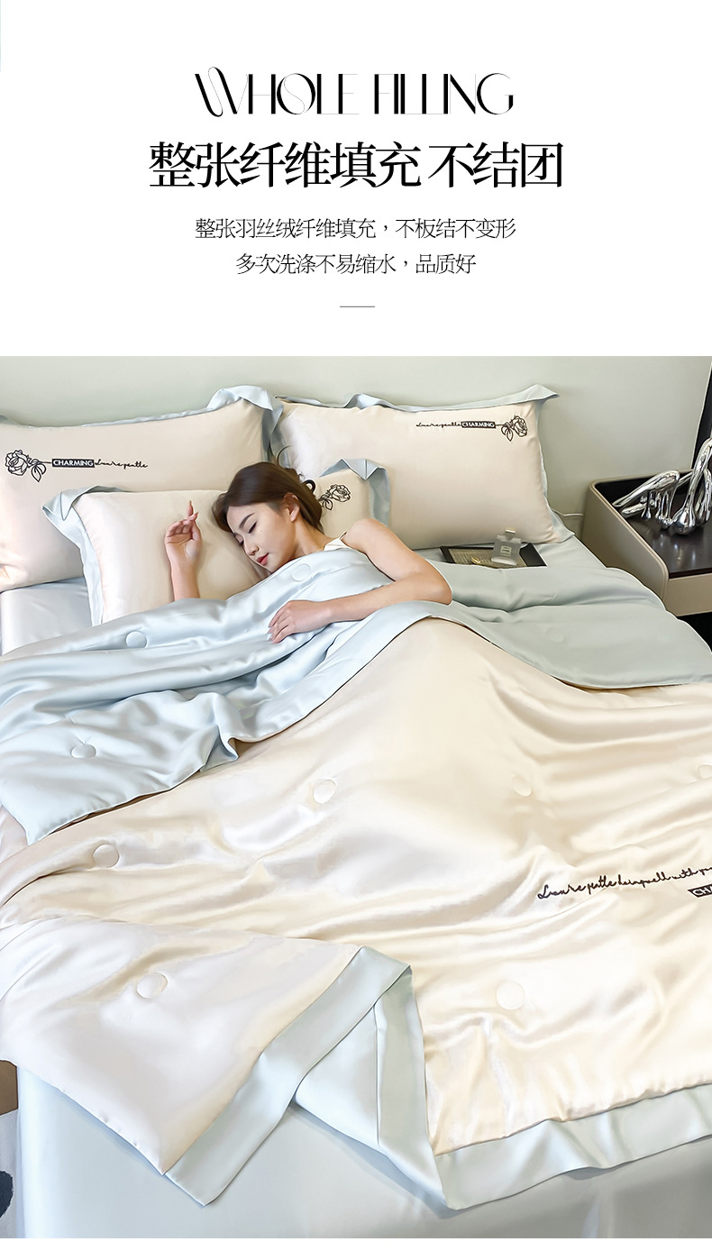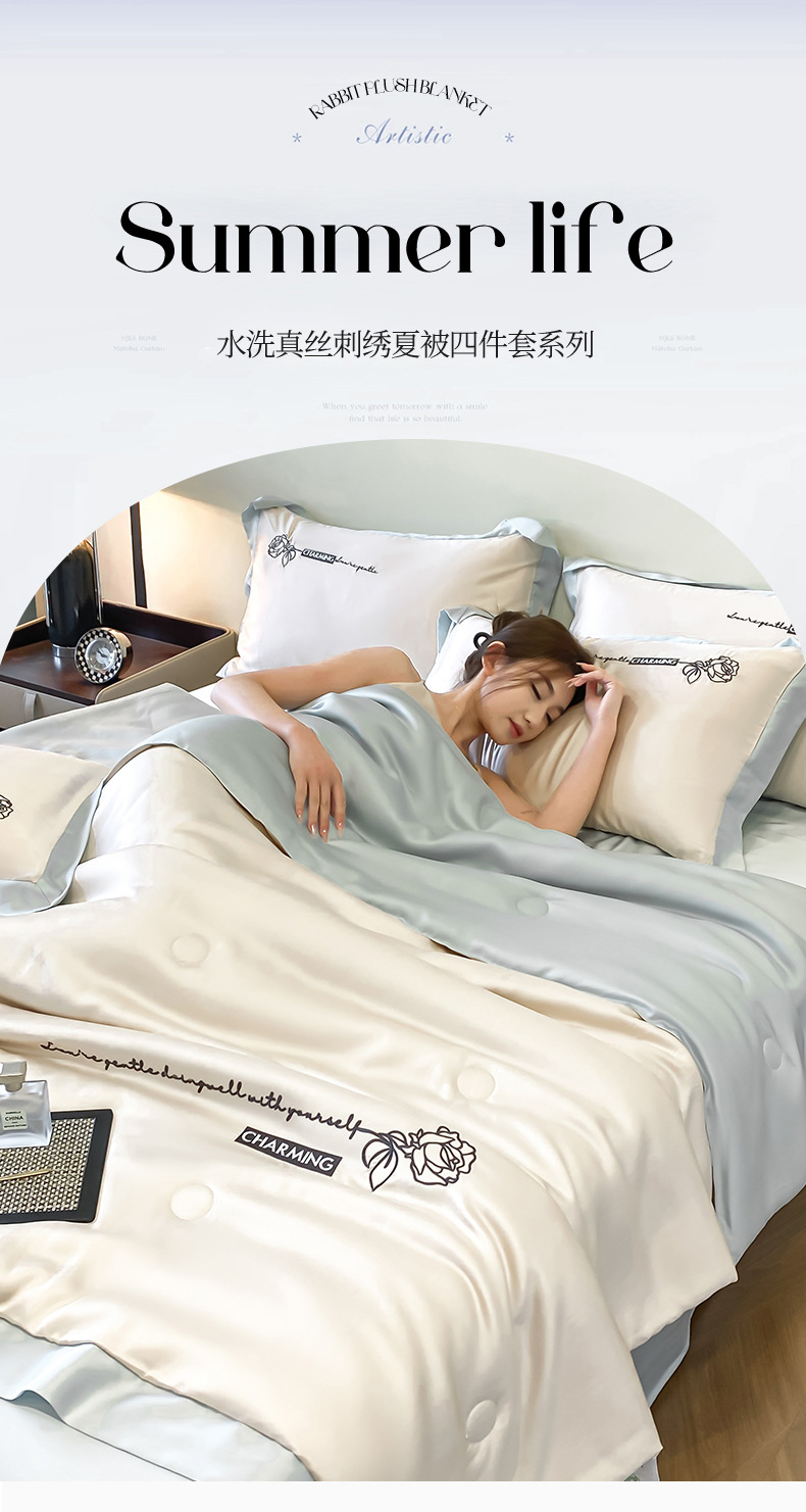2025 새로운 국경 간 대외 무역 여름 얼음 실크 에어컨 이불 여름 시원한 이불 세탁기로 세탁 가능한 3 또는 4 피스 세트 도매