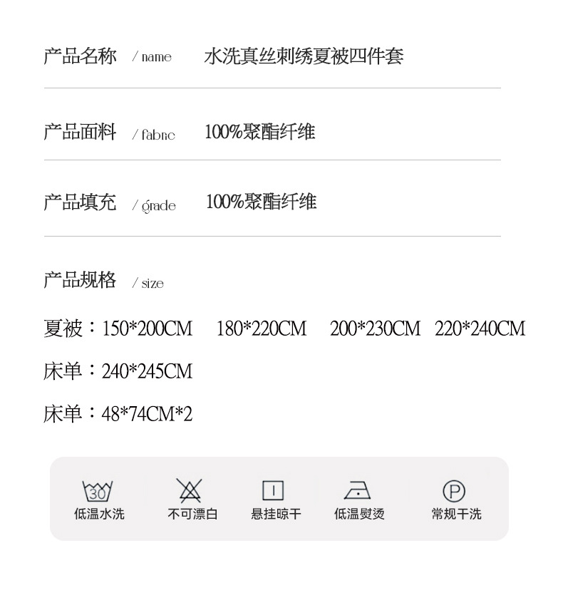 • 여름이불 4종세트 [150x200cm 여름이불 + 시트 240x245cm + 베갯잇 2개]