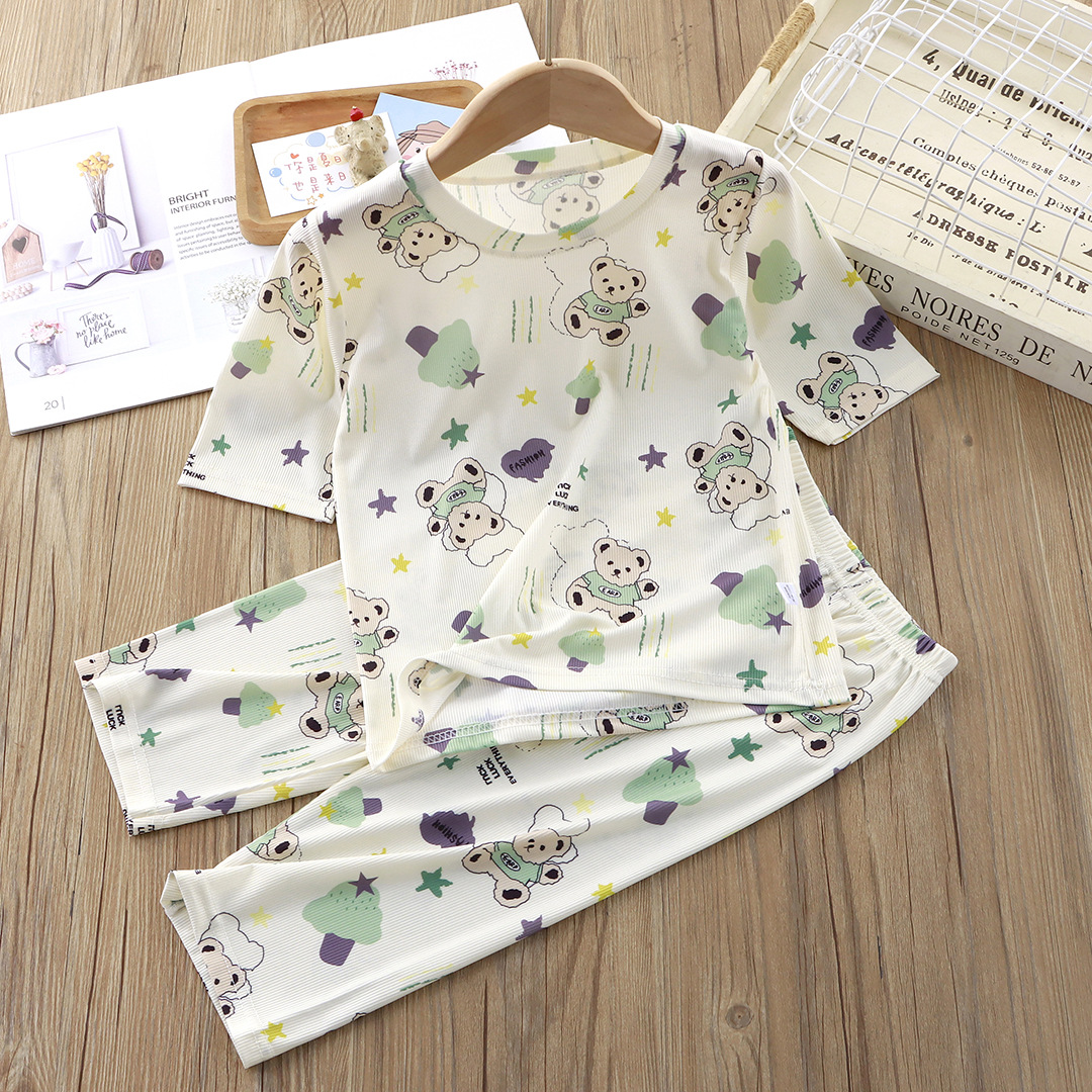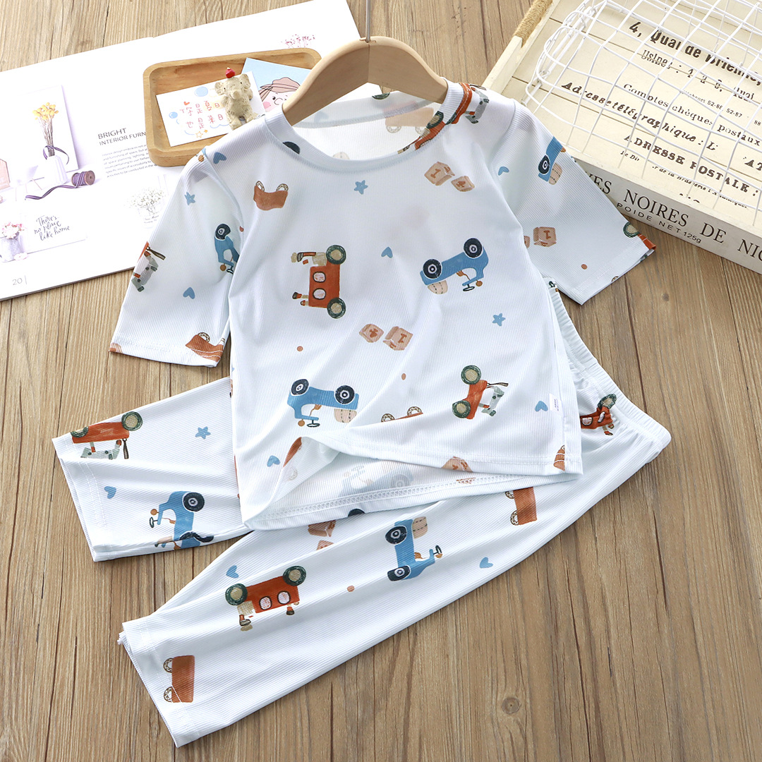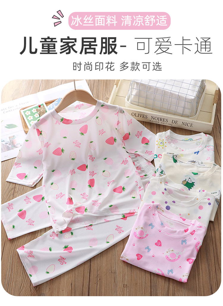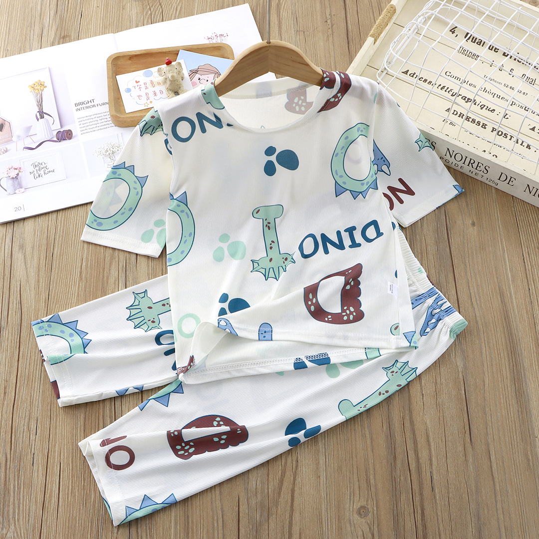 새로운 어린이 잠옷 여름 세트 만화 인쇄 소년 얇은 짧은 소매 소녀 홈 의류 아동복 도매스토어 가기