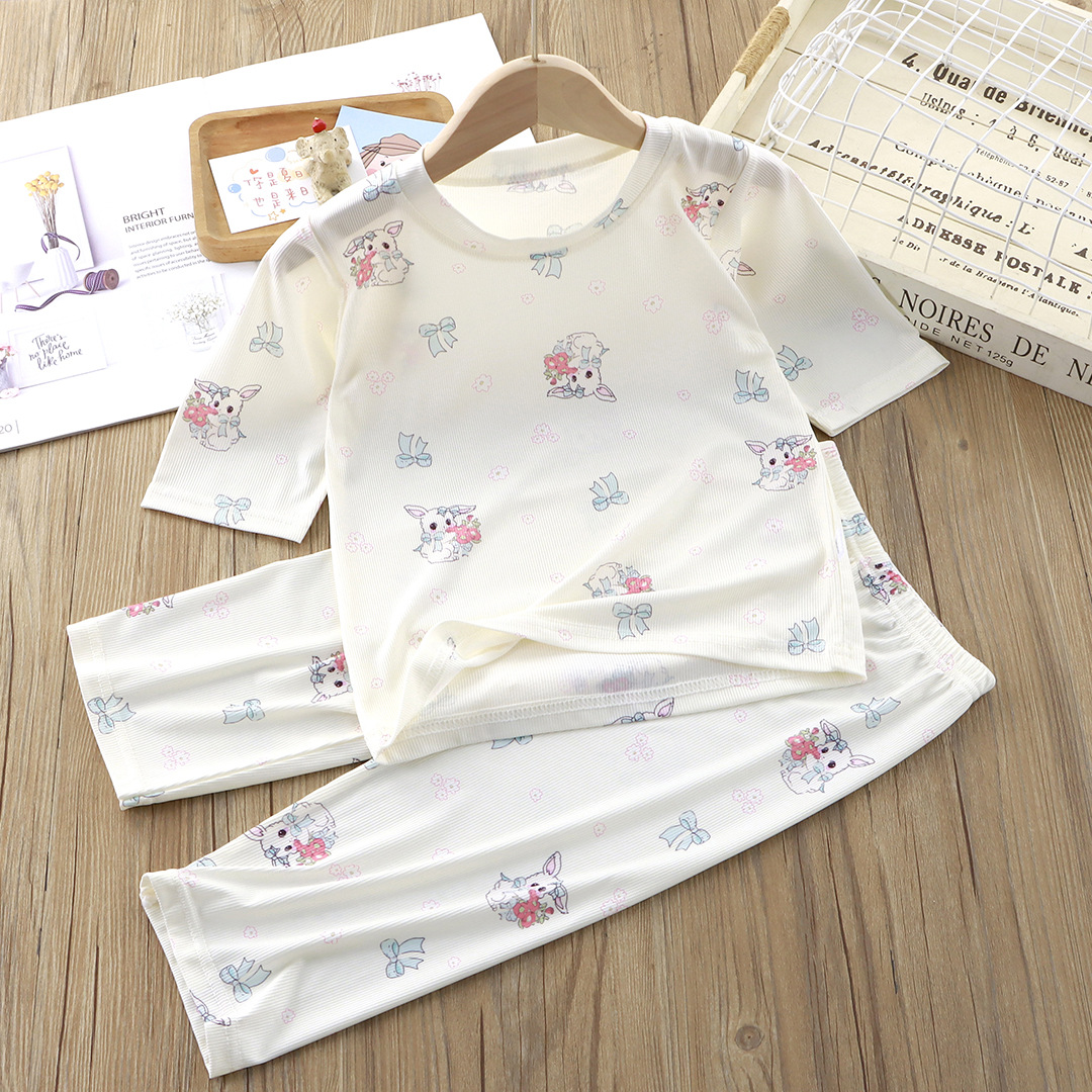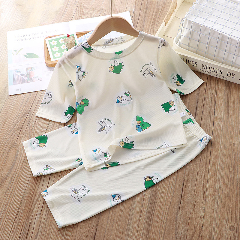 새로운 어린이 잠옷 여름 세트 만화 인쇄 소년 얇은 짧은 소매 소녀 홈 의류 아동복 도매