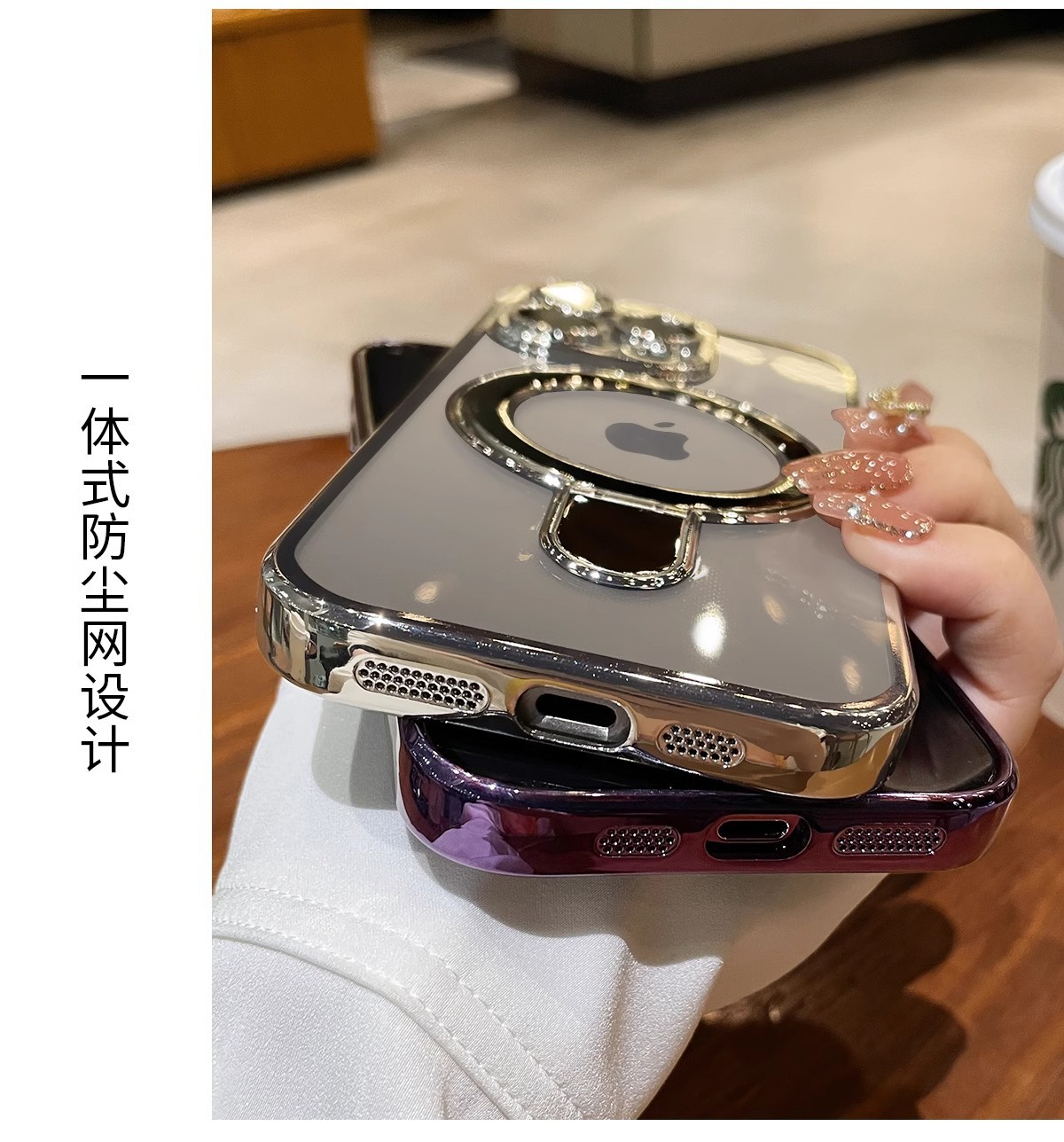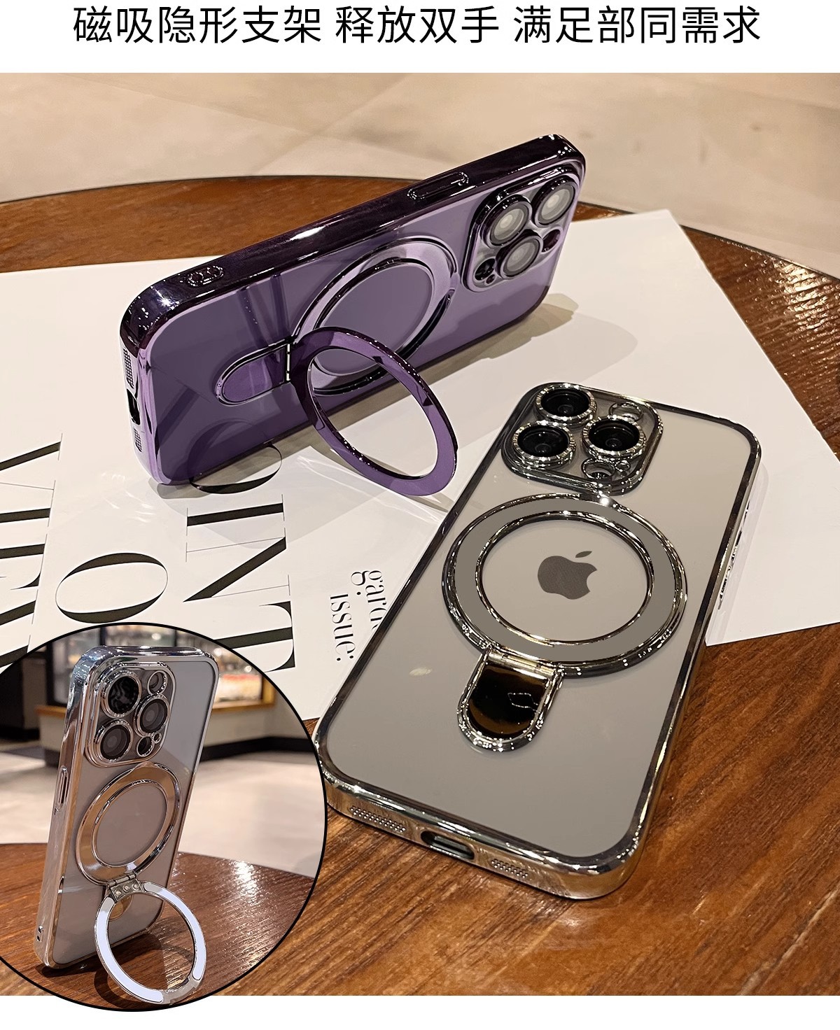 iphone17promax 휴대폰 케이스에 적합한 자기 지지대 홀더 투명 Apple 16E 낙하 방지 전기 도금 보호