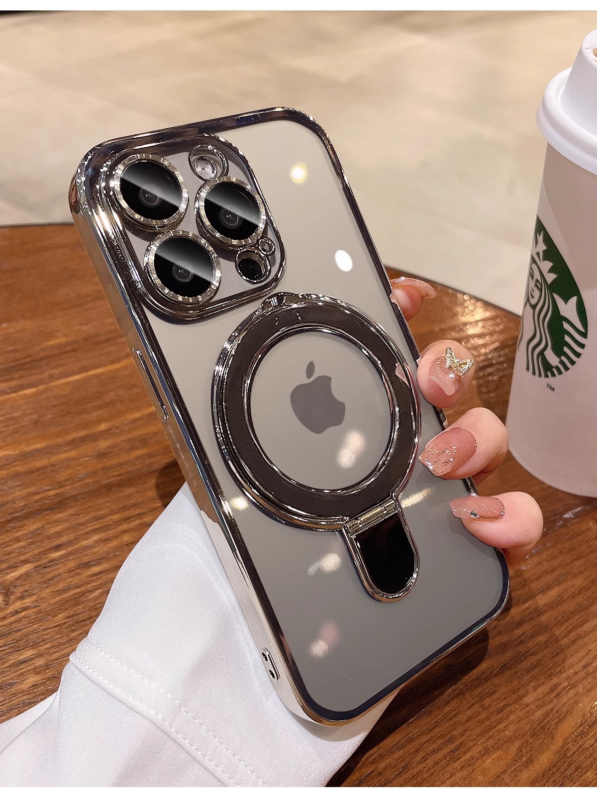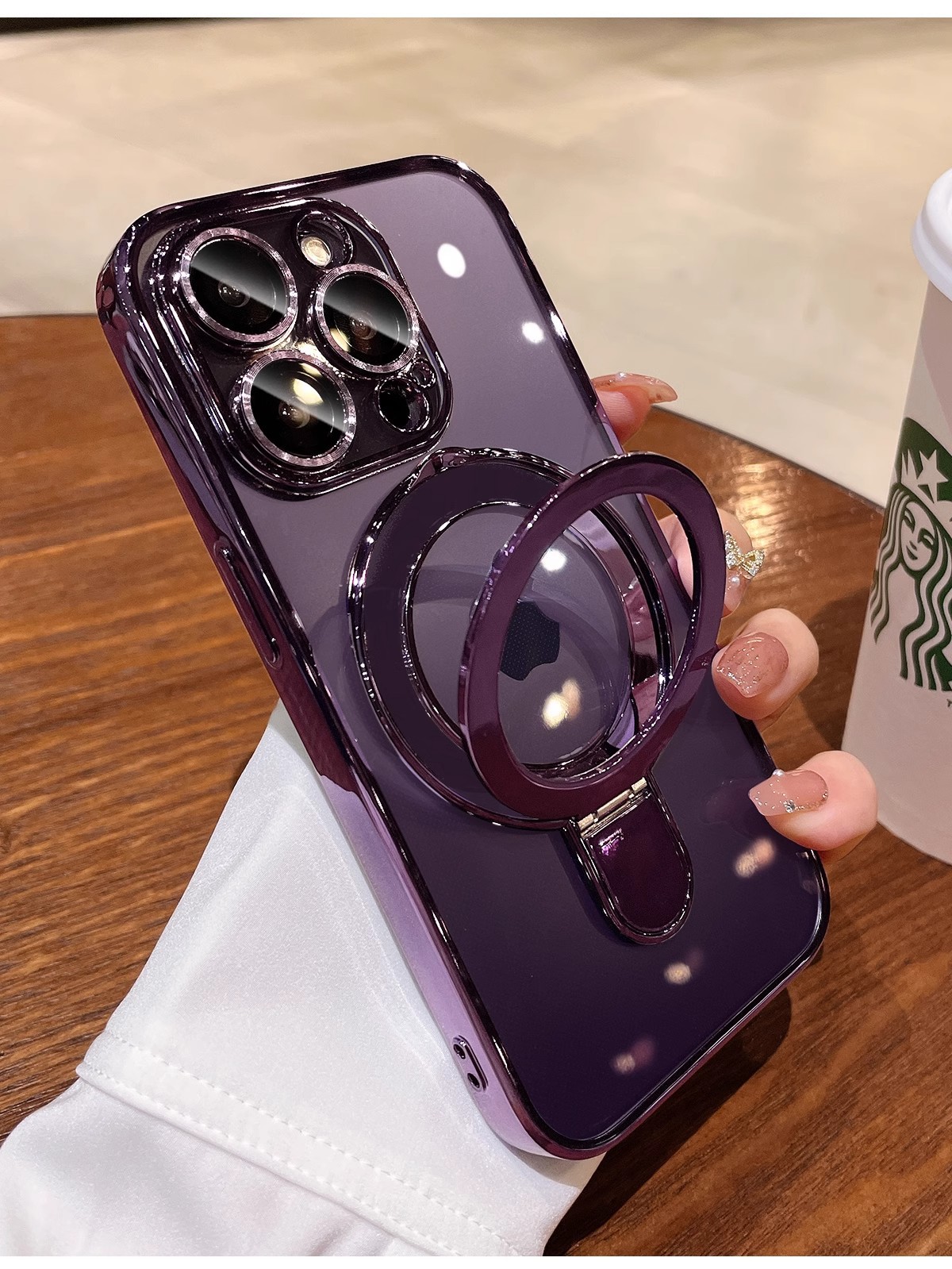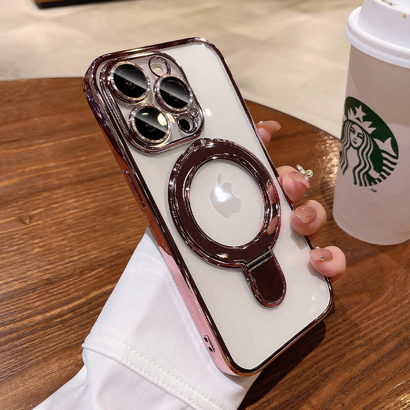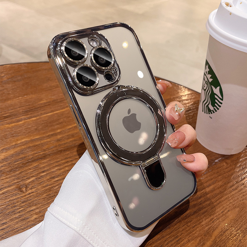iphone17promax 휴대폰 케이스에 적합한 자기 지지대 홀더 투명 Apple 16E 낙하 방지 전기 도금 보호스토어 가기