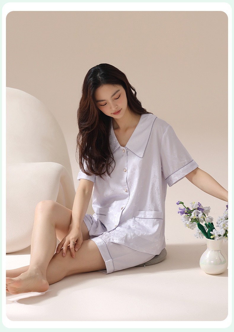 [아이스실크] 봄 · 여름 얼음 실크 잠옷 여성 얇은 시원한 반소매 인공적인 실크 잠옷 홈웨어 세트