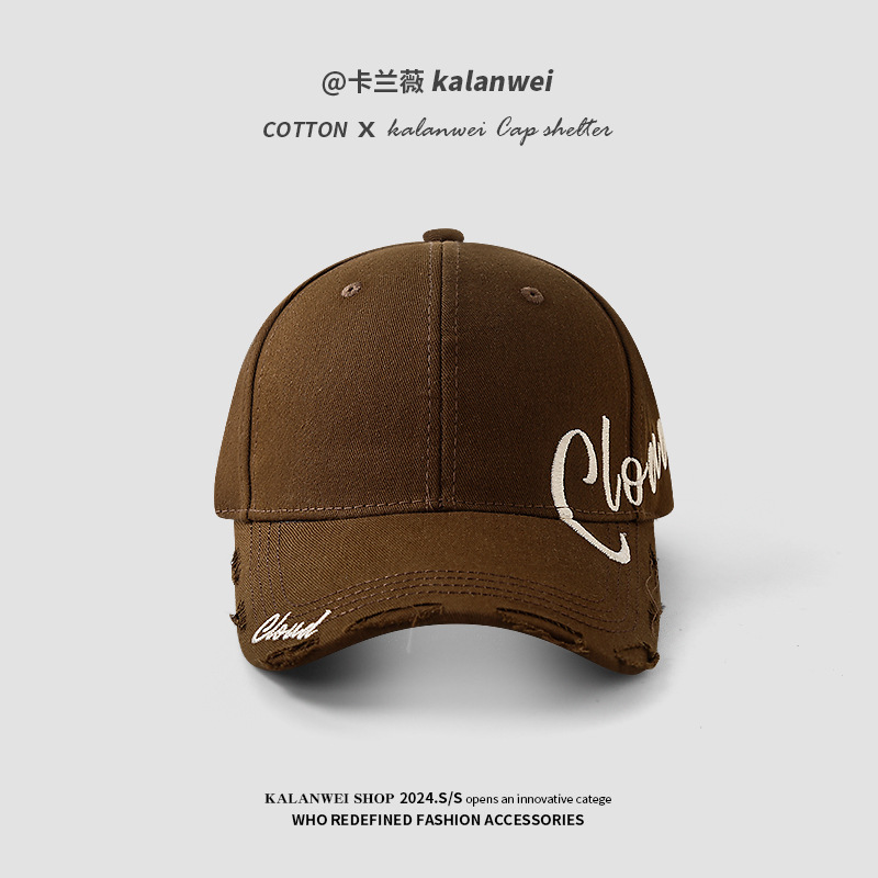 검은 찢어진 정점 모자 여성의 여름 문자 큰 머리 둘레 모자 야구 모자 태양 방지 한국식 모자 남성 패션 자수