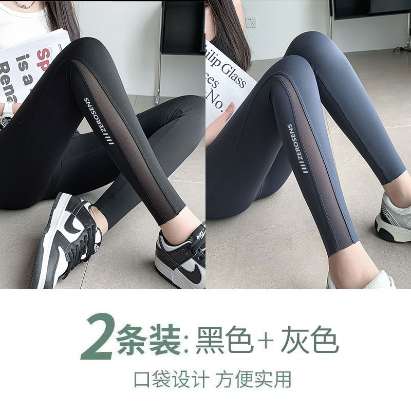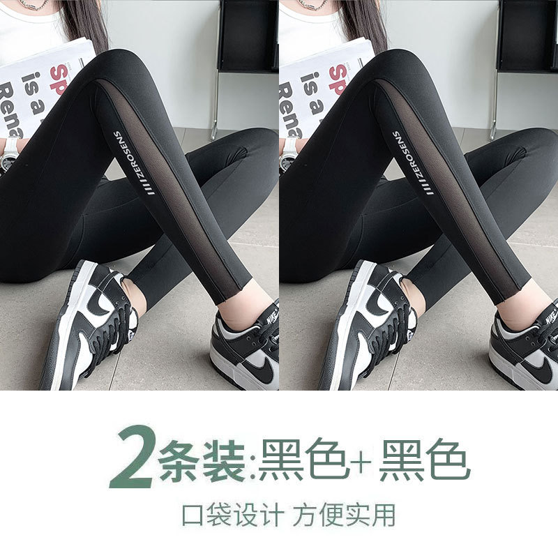 상어 팬츠 여성용 봄 가을 외출용 포켓 인기 팬츠 레깅스 긴바지 메쉬 배를 잡아주는 힙업 요가 팬츠 외출용 가능