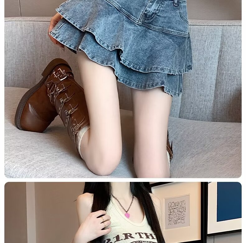 데님 스커트 여성용 케이크 스커트 A 라인 미니 스커트 바지 높은 허리 디자인 감각 틈새 칼집 핫 소녀 짧은 치마스토어 가기