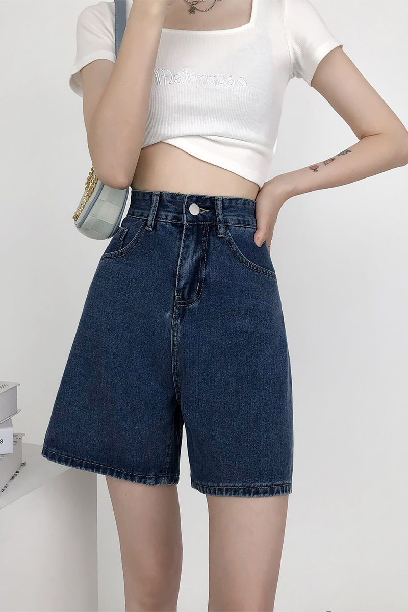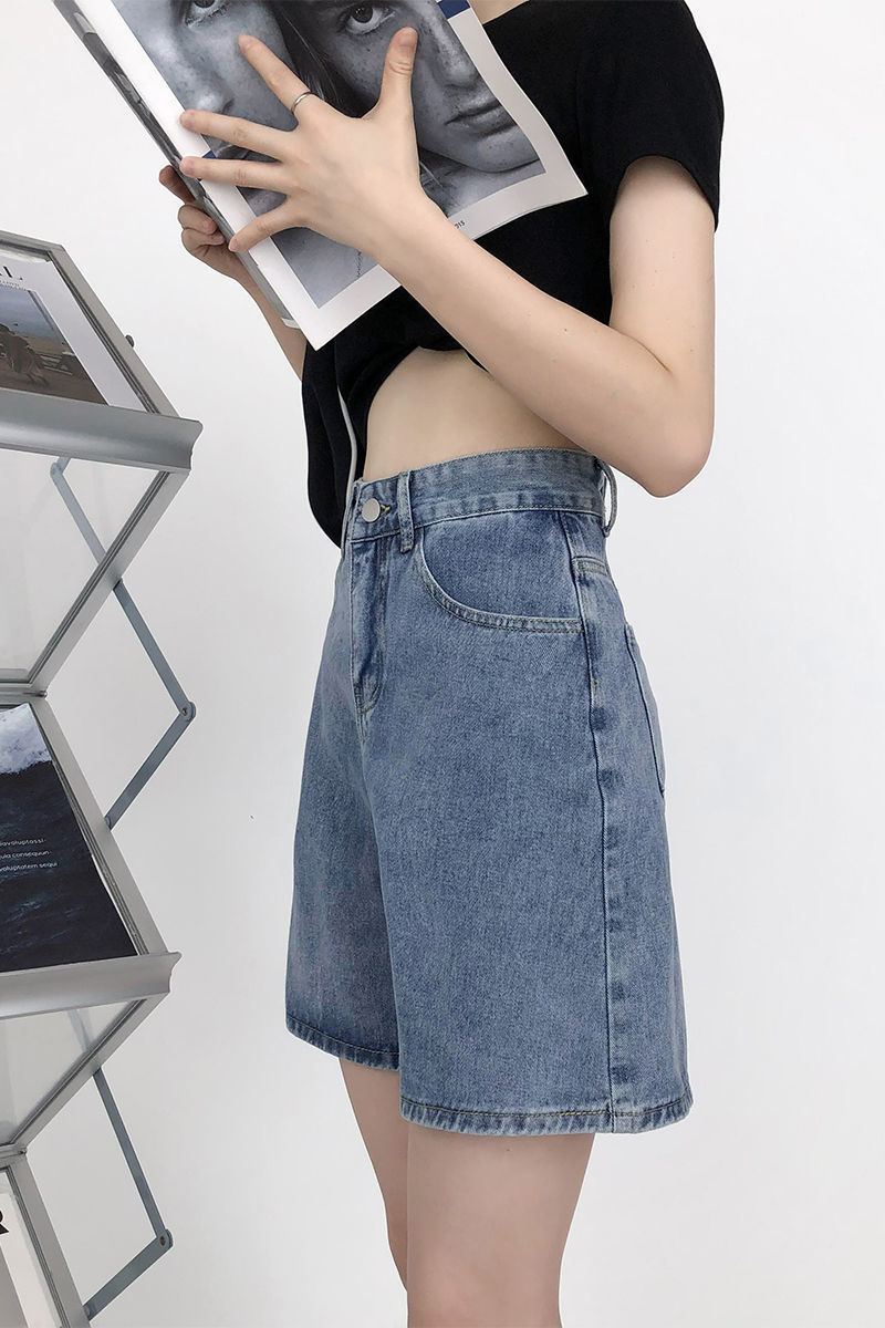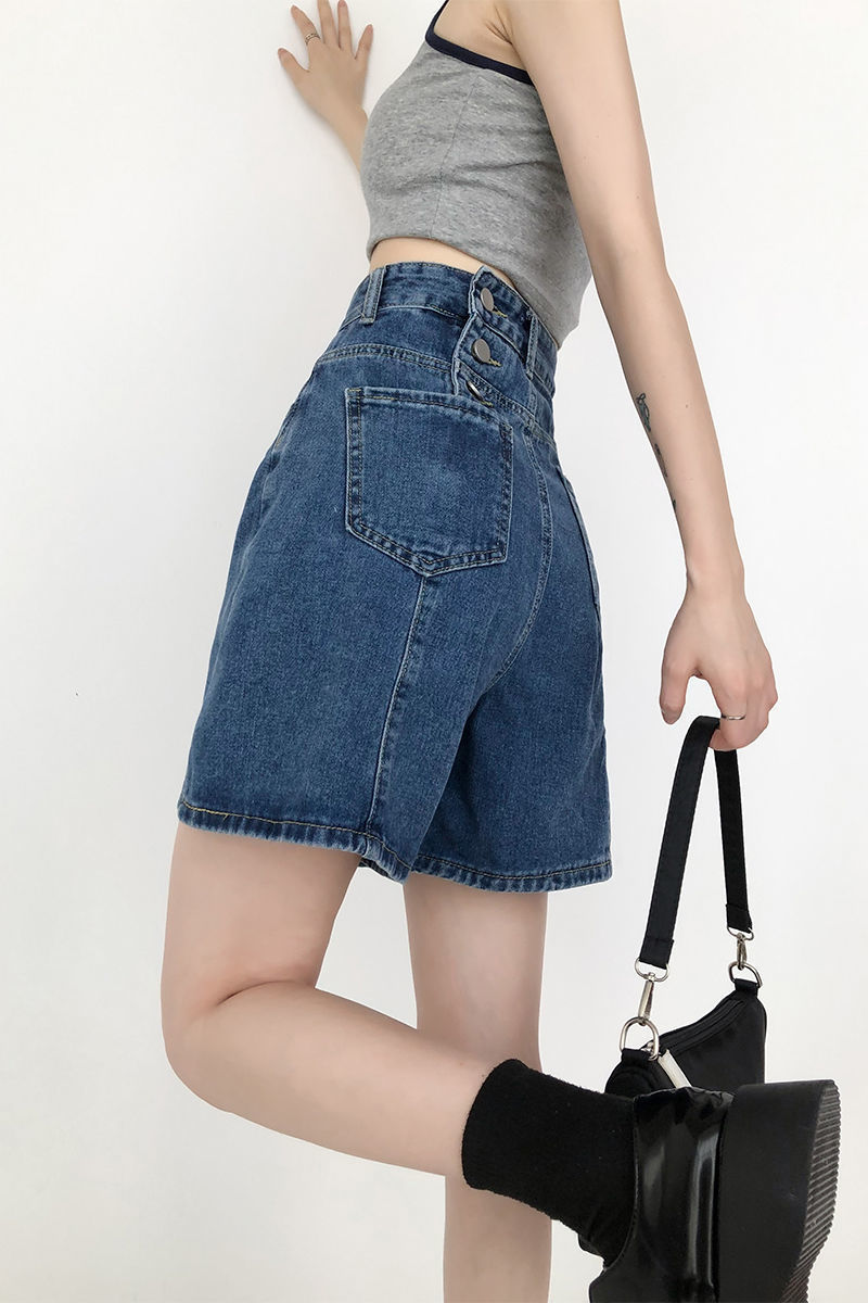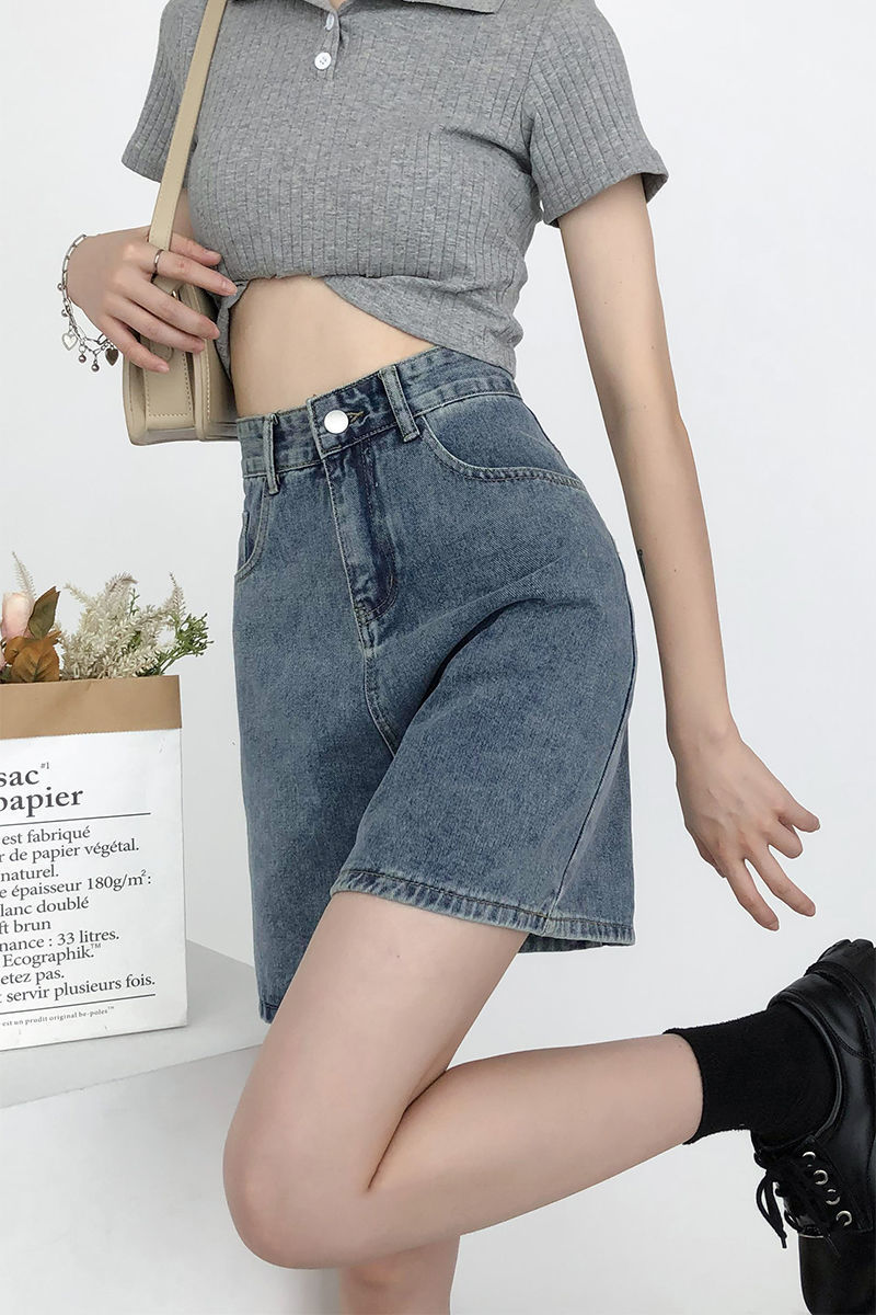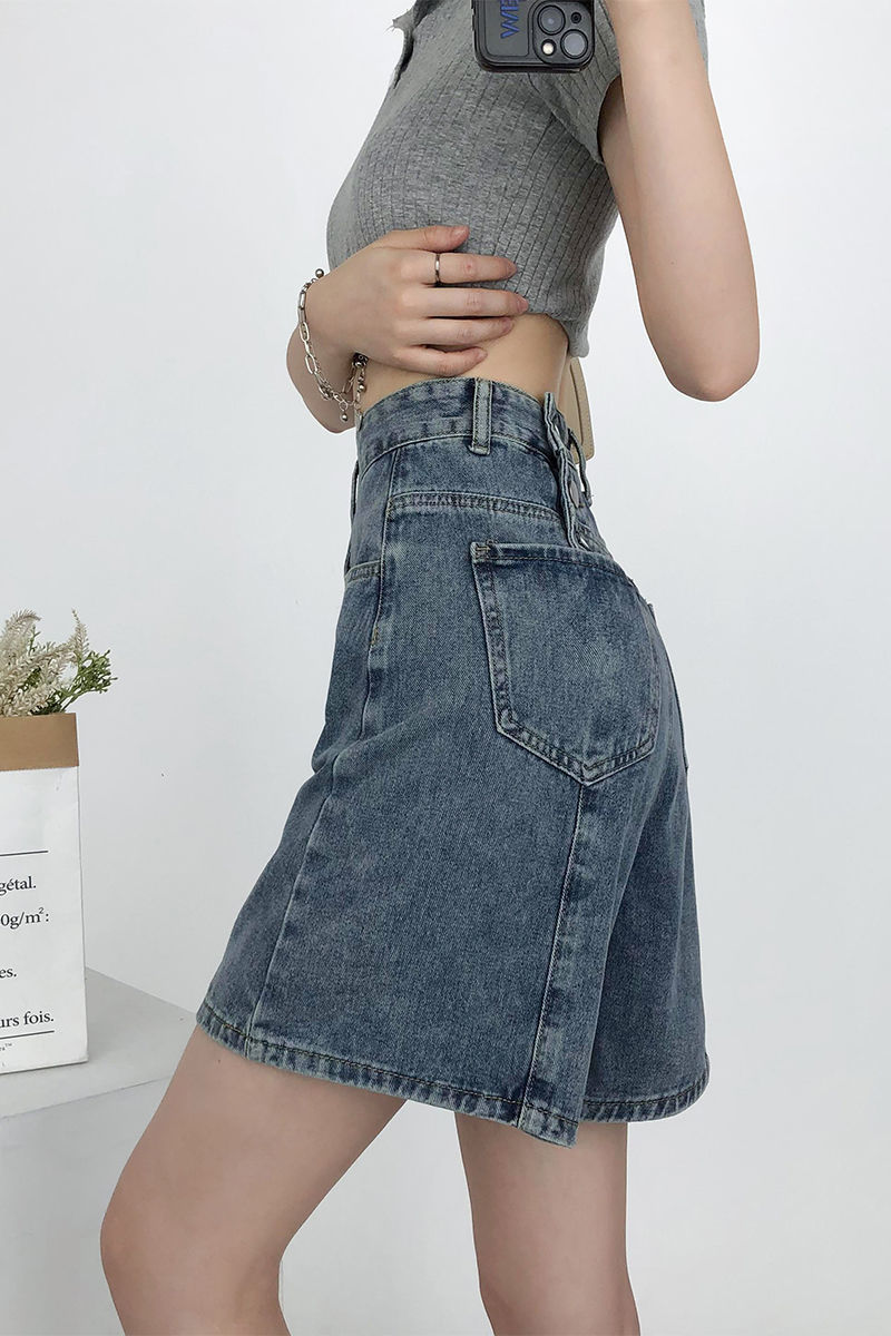 통통녀 플러스 사이즈 디자인 감각 틈새 데님 반바지 여성 여름 배를 덮는 슬리밍 높은 허리 배 모양의 바지스토어 가기