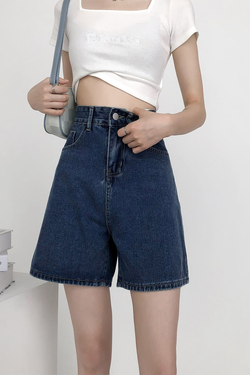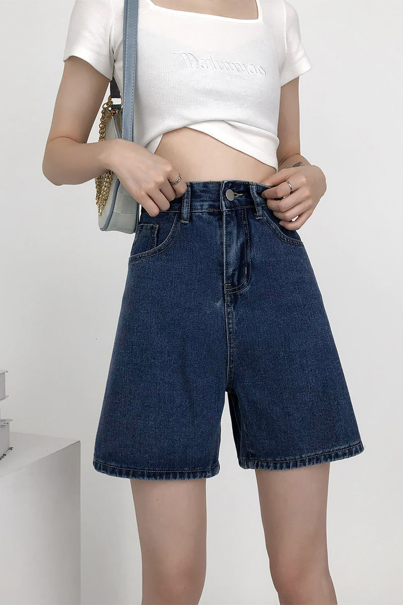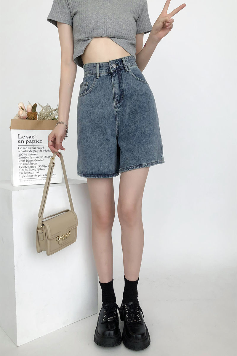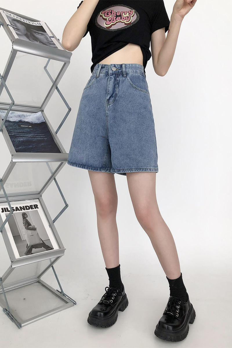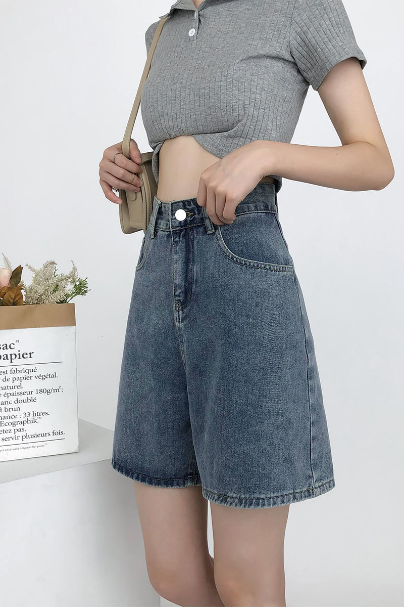 통통녀 플러스 사이즈 디자인 감각 틈새 데님 반바지 여성 여름 배를 덮는 슬리밍 높은 허리 배 모양의 바지스토어 가기