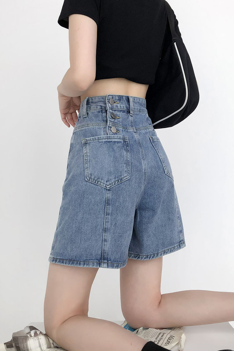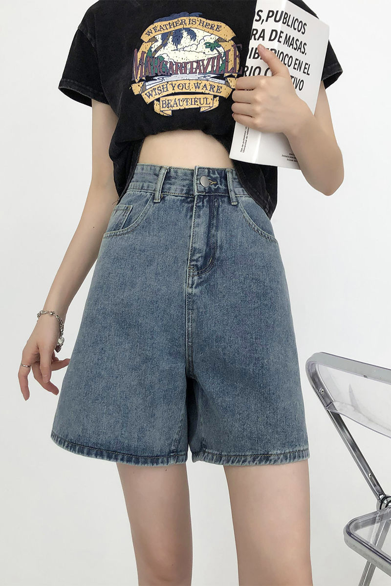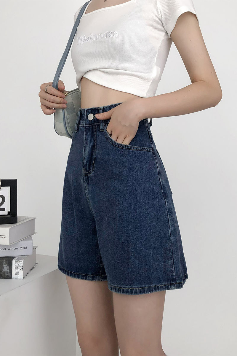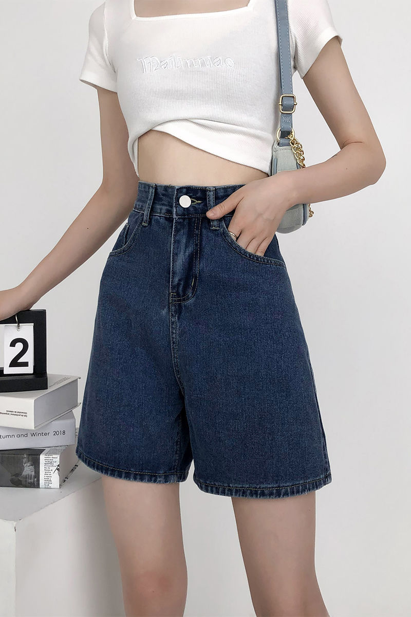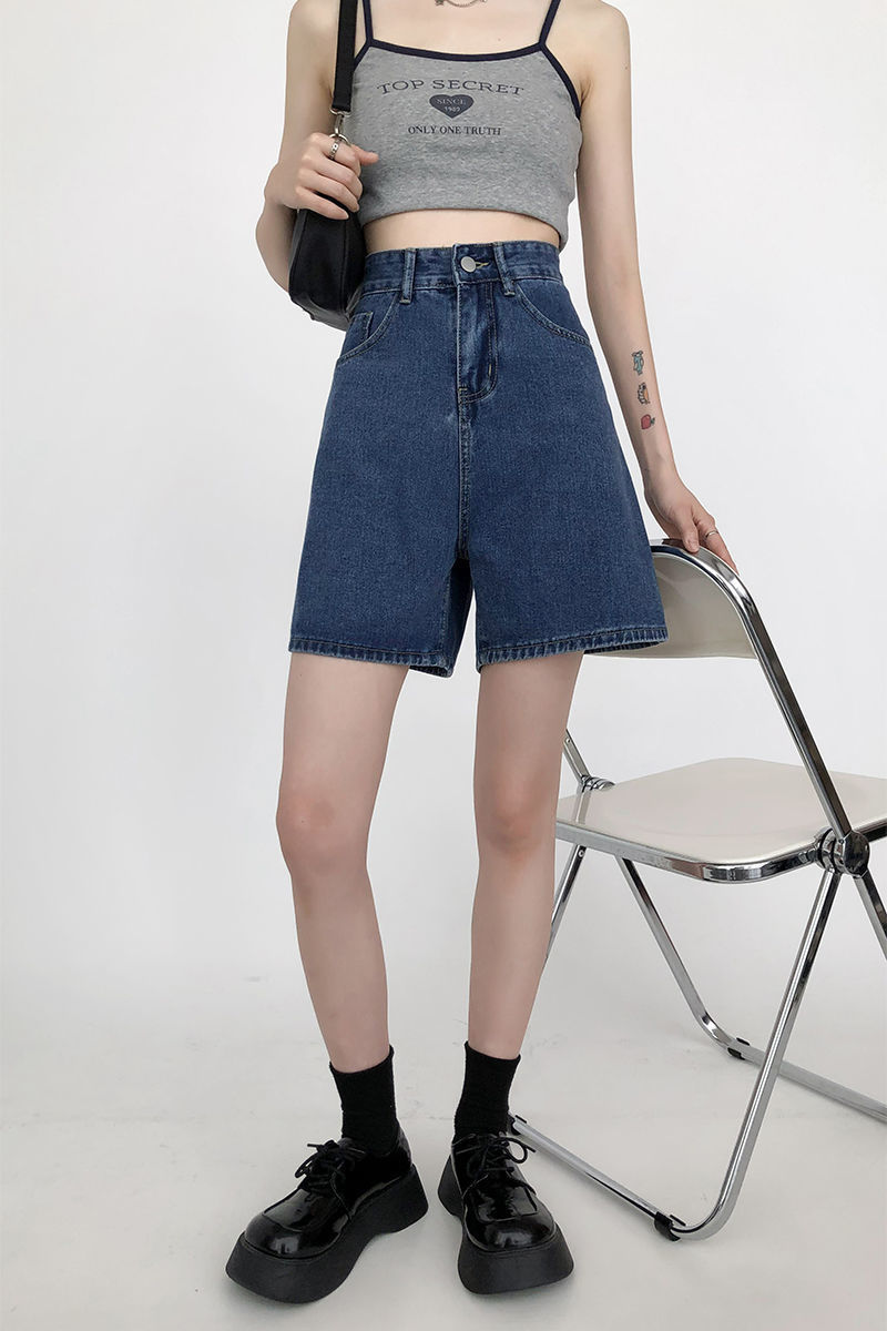 통통녀 플러스 사이즈 디자인 감각 틈새 데님 반바지 여성 여름 배를 덮는 슬리밍 높은 허리 배 모양의 바지스토어 가기