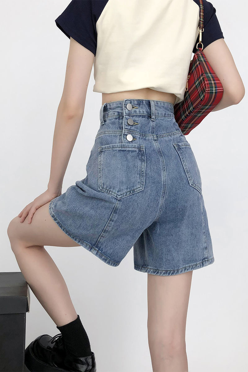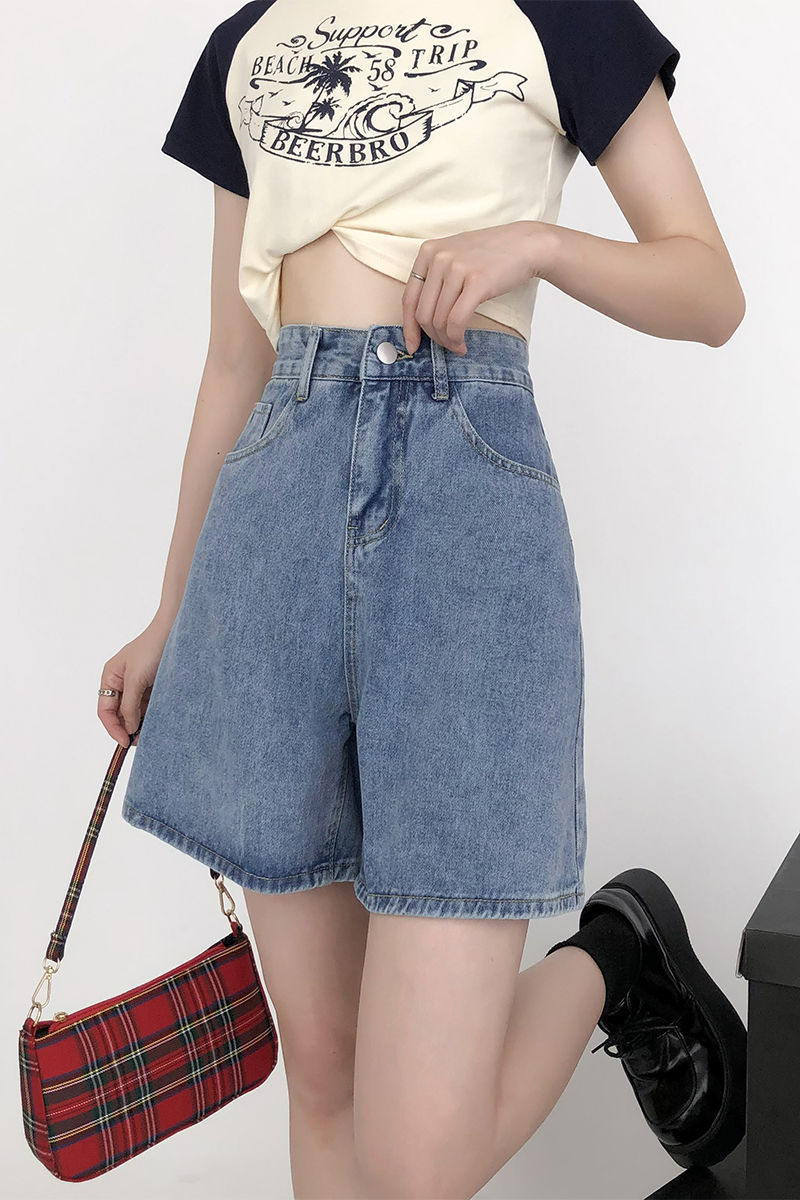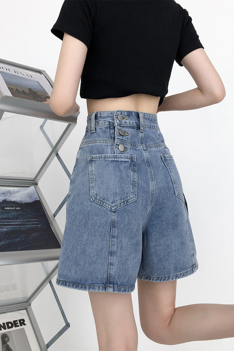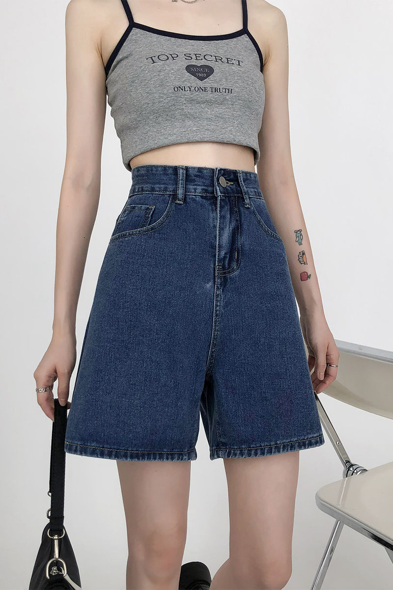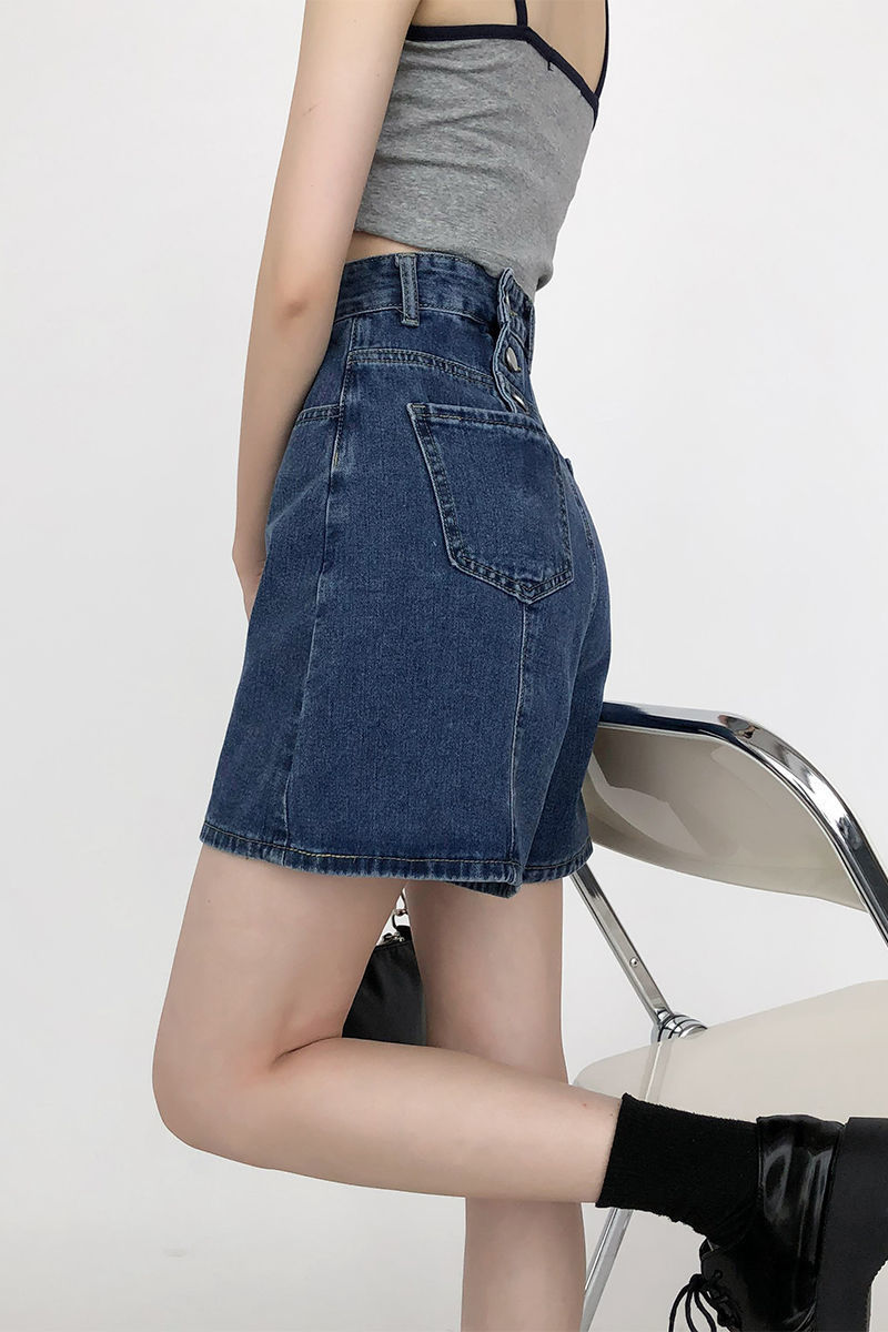 통통녀 플러스 사이즈 디자인 감각 틈새 데님 반바지 여성 여름 배를 덮는 슬리밍 높은 허리 배 모양의 바지스토어 가기