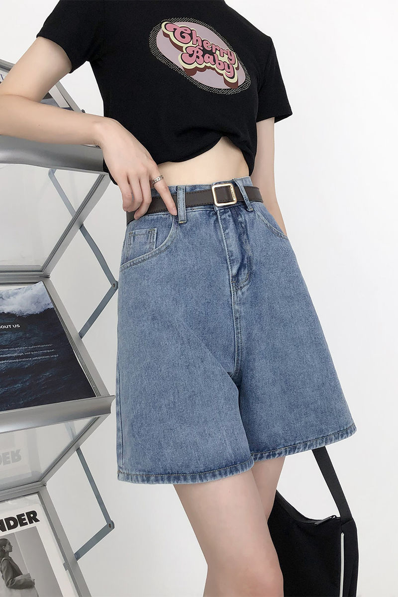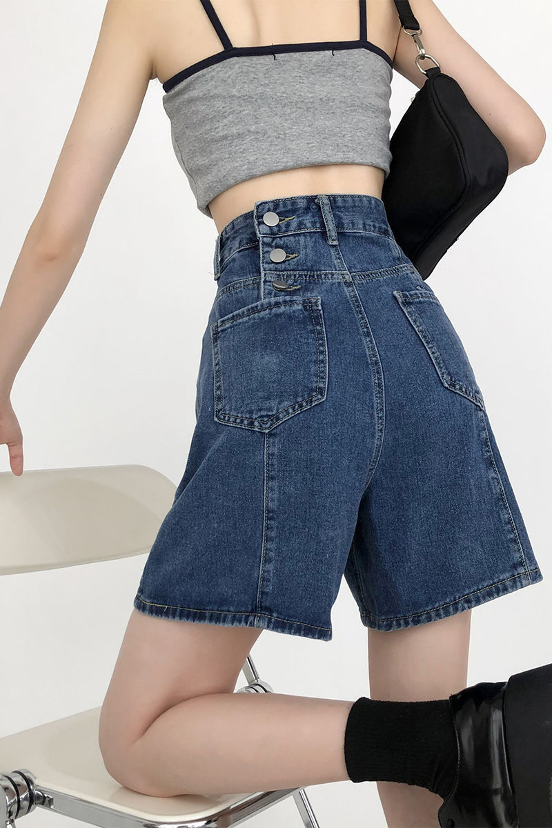 통통녀 플러스 사이즈 디자인 감각 틈새 데님 반바지 여성 여름 배를 덮는 슬리밍 높은 허리 배 모양의 바지