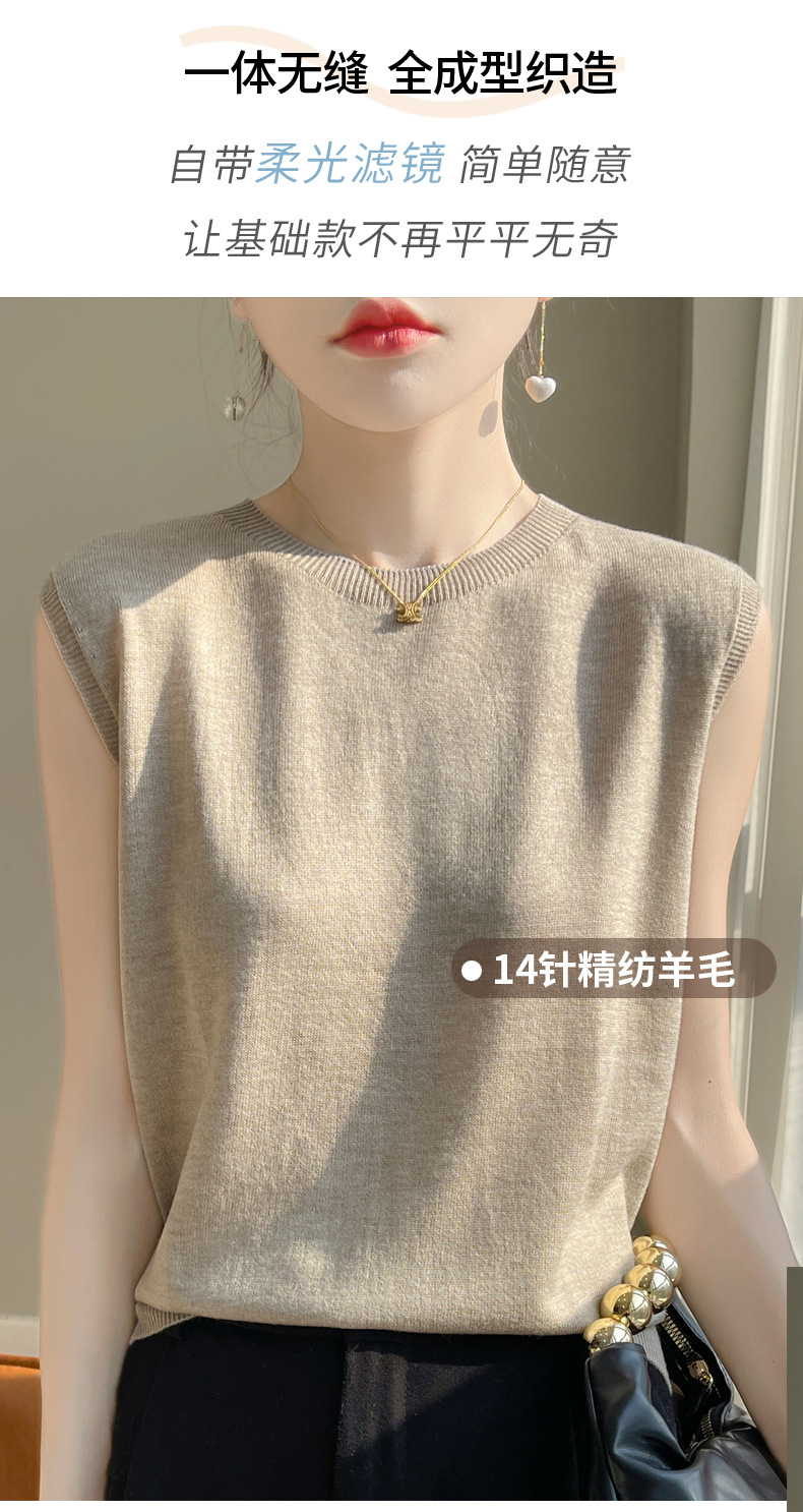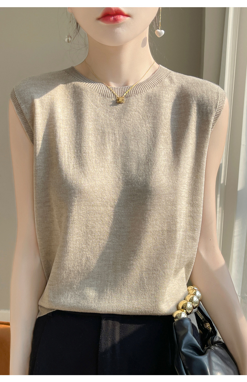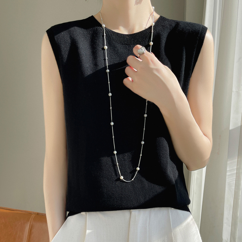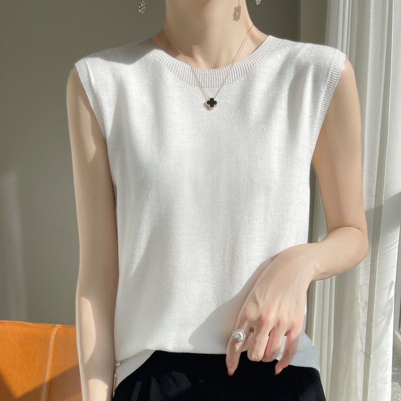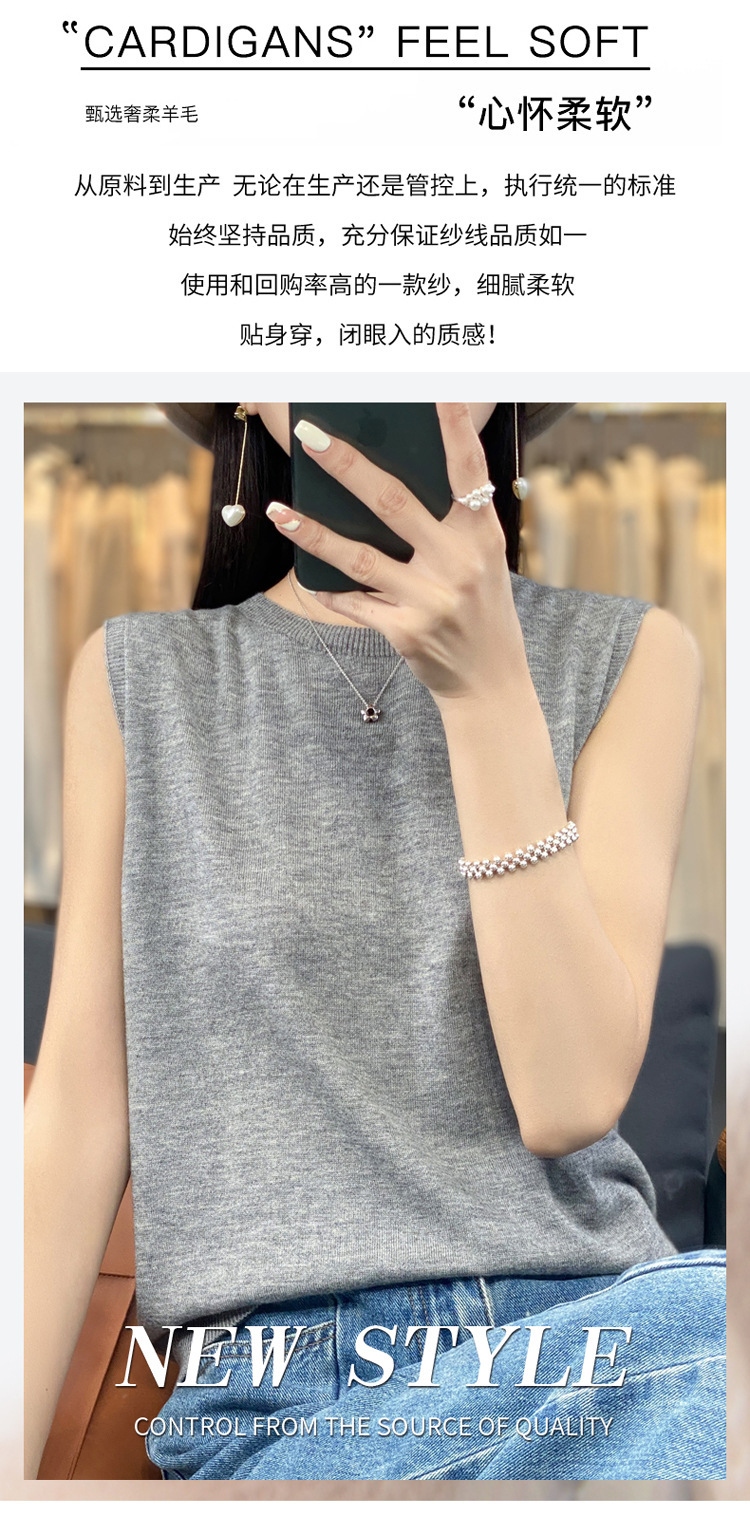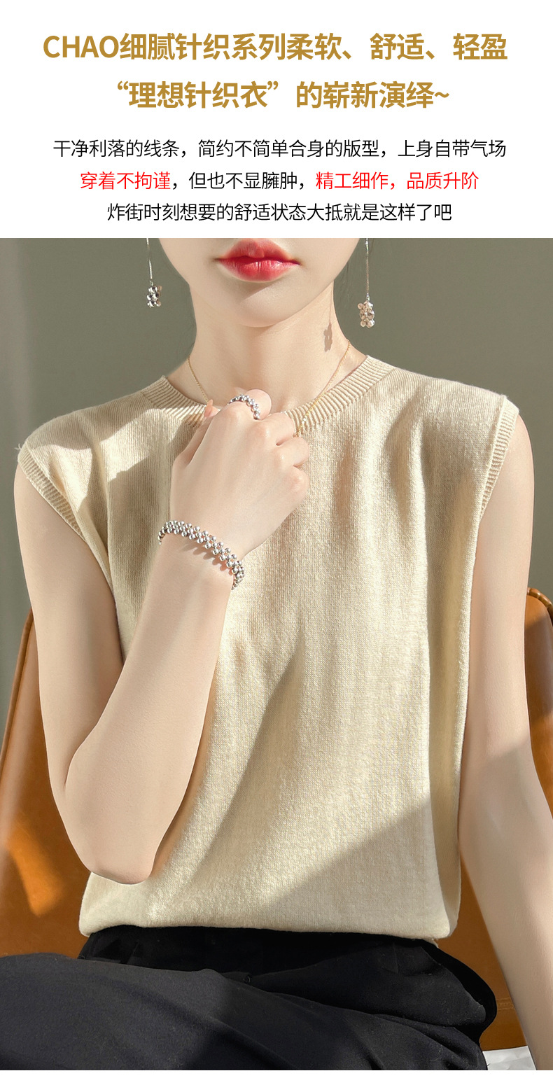 퍼스트 라인 레디 투웨어 워스트 울 라운드 넥 조끼 여성 언더 셔츠 봄과 여름 새로운 캐주얼 민소매 니트 탑스토어 가기