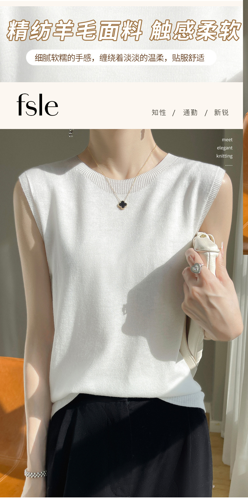 퍼스트 라인 레디 투웨어 워스트 울 라운드 넥 조끼 여성 언더 셔츠 봄과 여름 새로운 캐주얼 민소매 니트 탑