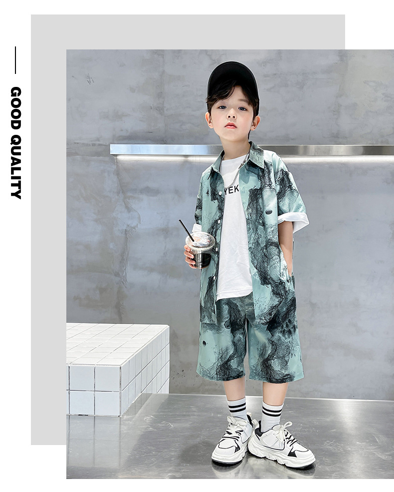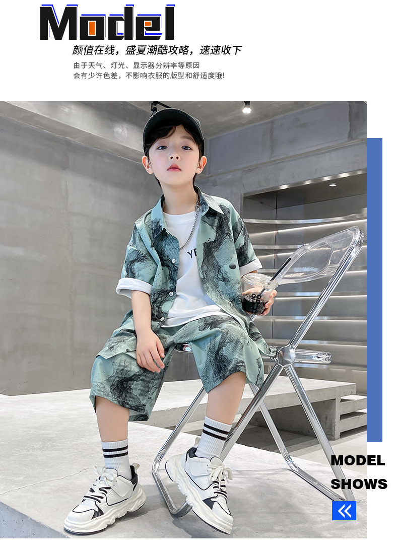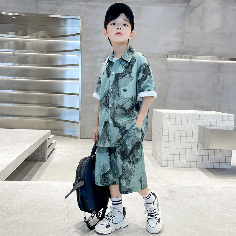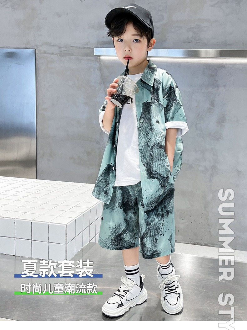 소년 국립 패션 세트 여름 새로운 2024 중형 및 대형 아동복 반팔 셔츠 반바지 투피스 여름 의류스토어 가기