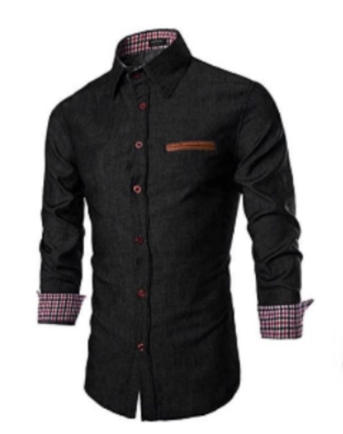 대외 무역 봄과 가을 인기있는 남성 캐주얼 셔츠 포켓 패치 워크 코튼 슬림 핏 긴팔 셔츠 데님 셔츠 남성