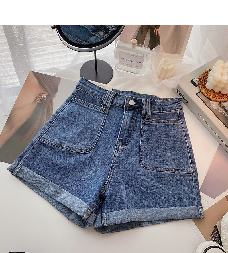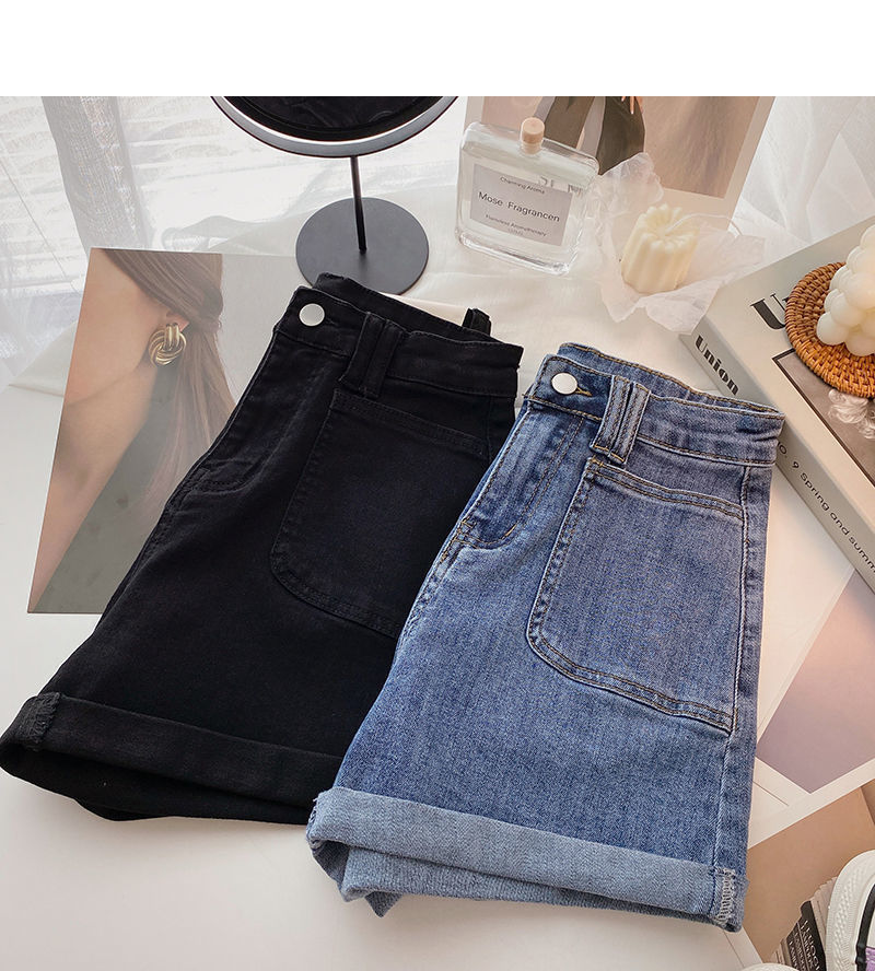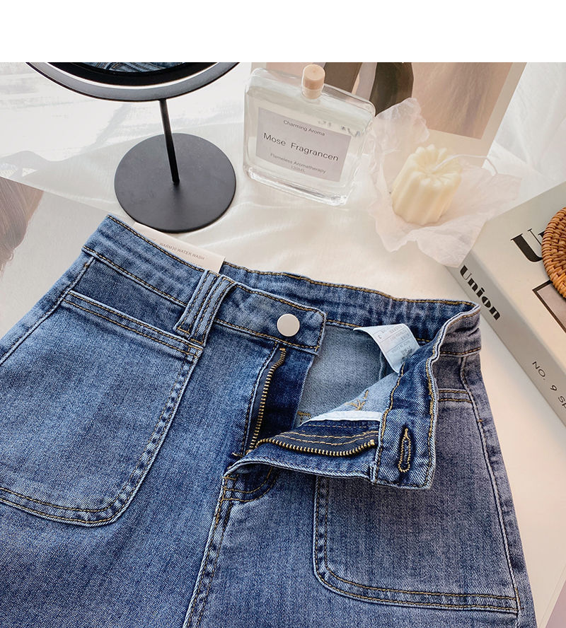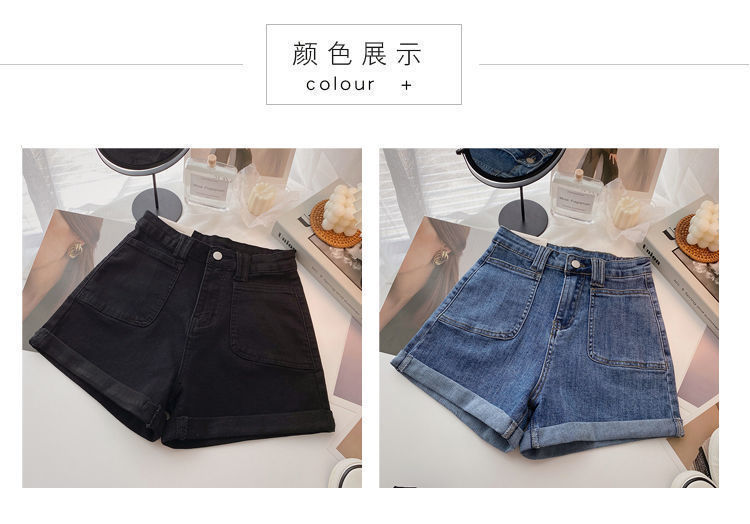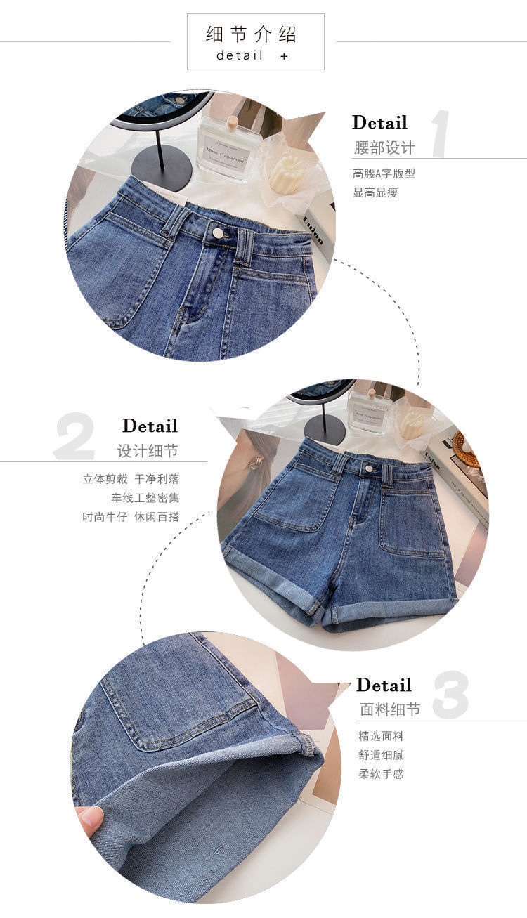여성 한국식 하이 웨이스트 와이드 레그 바지, 데님 핫팬츠, 2020 여름 새로운 틈새 디자인 슬리밍스토어 가기