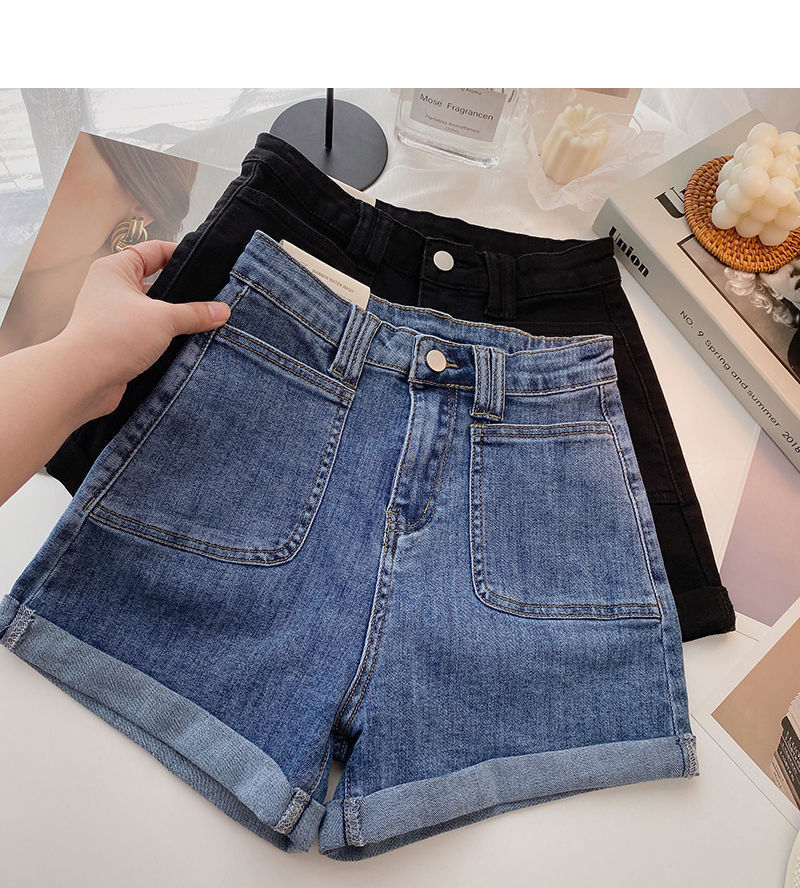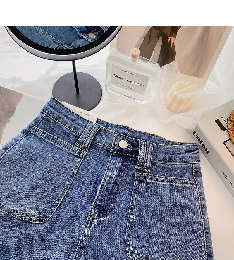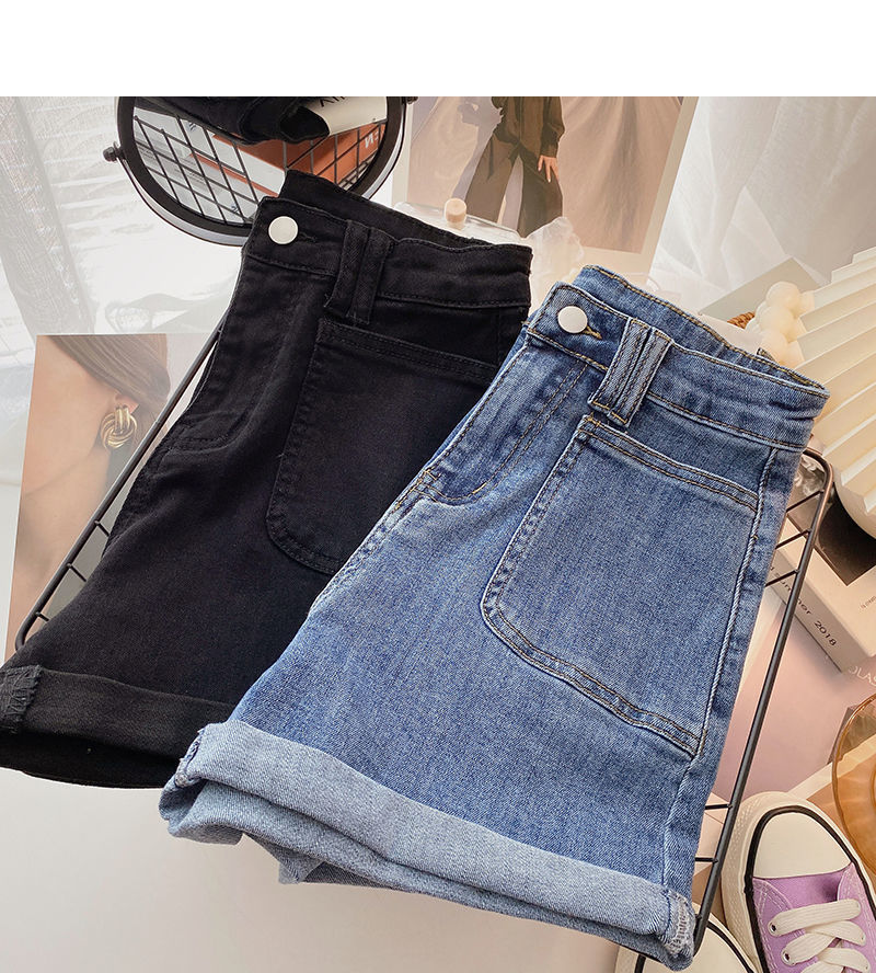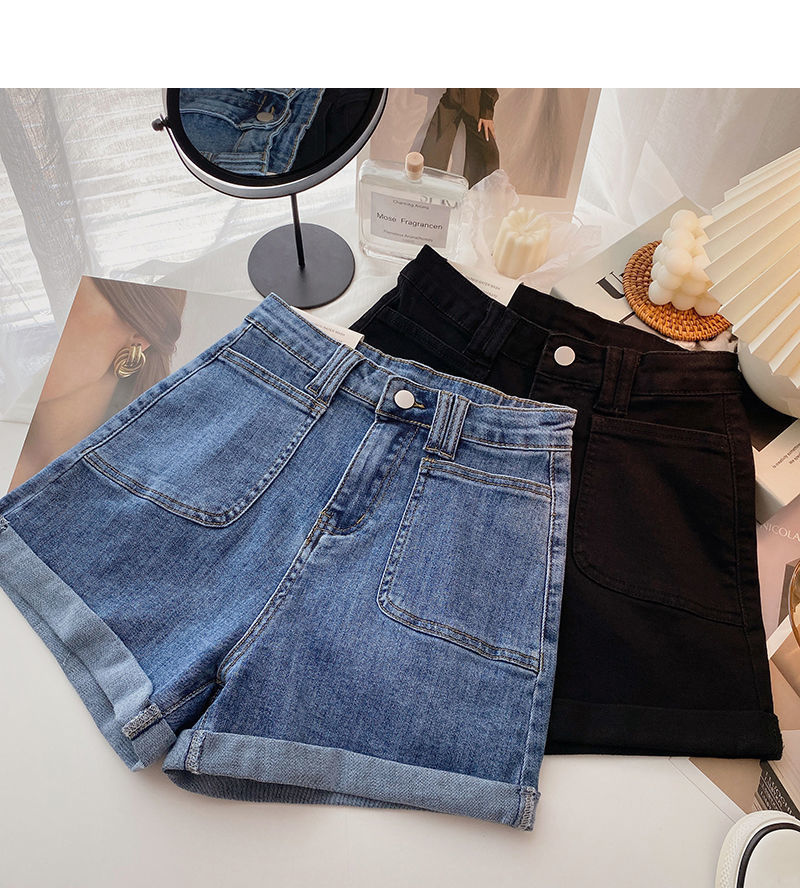 여성 한국식 하이 웨이스트 와이드 레그 바지, 데님 핫팬츠, 2020 여름 새로운 틈새 디자인 슬리밍스토어 가기