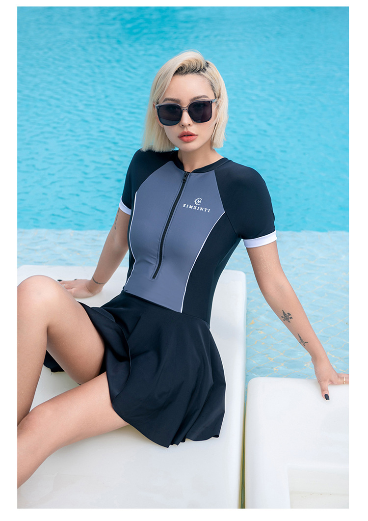Sanya 봄과 여름 새로운 수영복 복서 원피스 경쟁 레저 수영복 보수적 인 배꼽 커버 가슴 패드로 슬리밍 플러스 사이즈스토어 가기