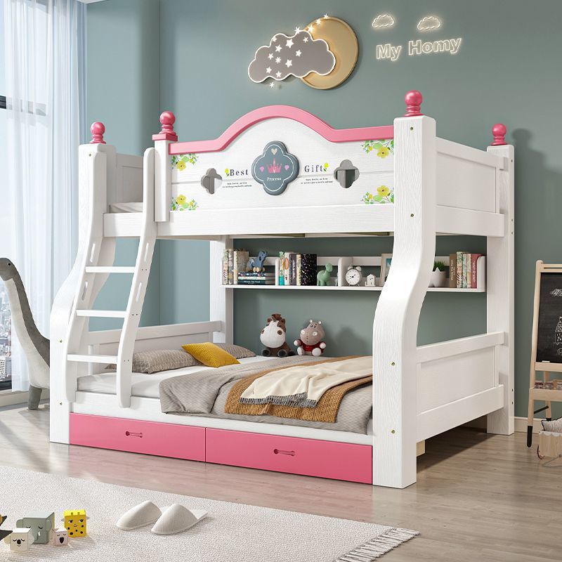• 사다리수납장 벚꽃핑크 [더블서랍+책장+매트리스] 설치
