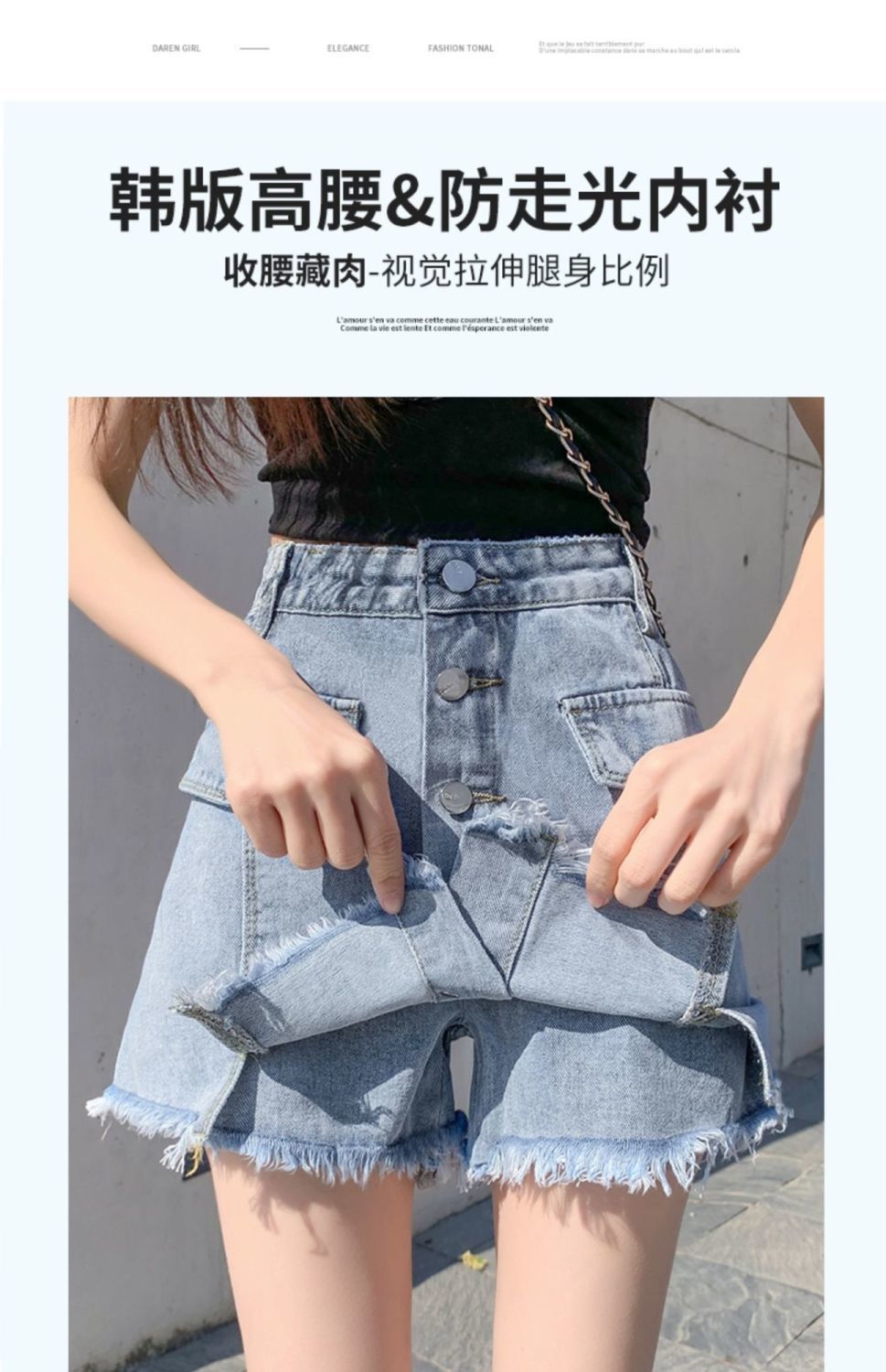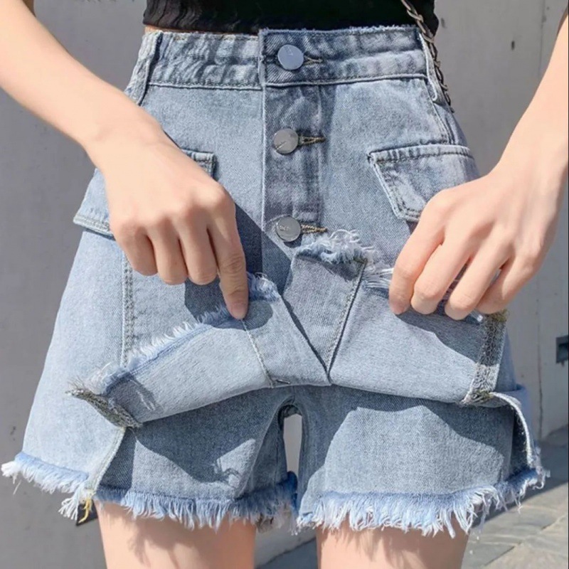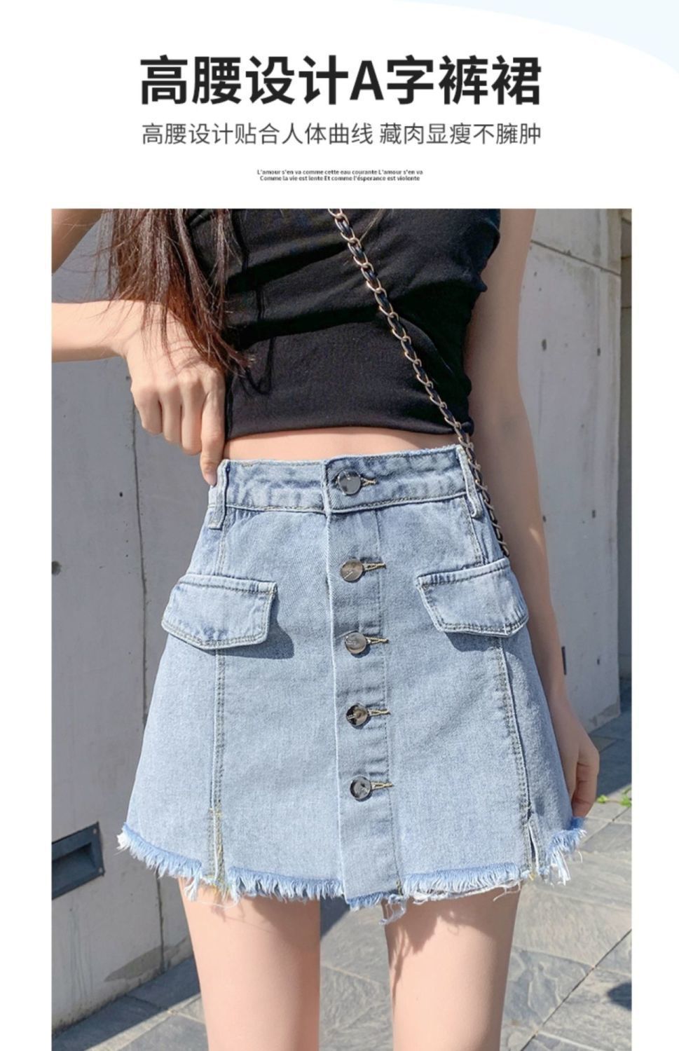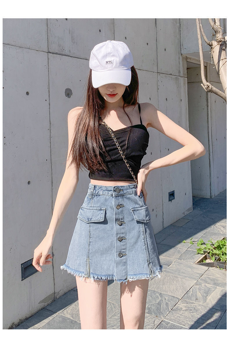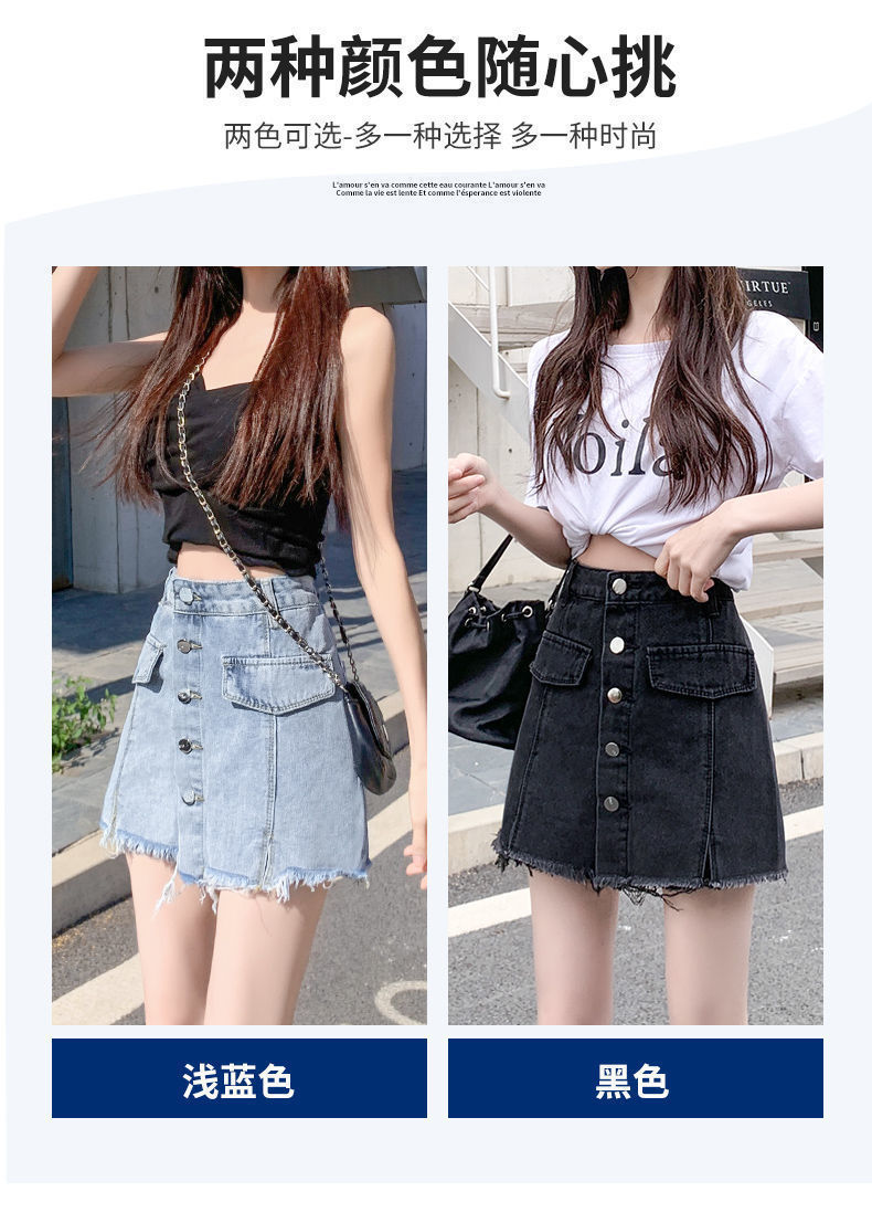 2023 여름 새로운 높은 허리 슬리밍 뜨거운 소녀 데님 짧은 치마 여성의 가짜 투피스 대형 스커트스토어 가기