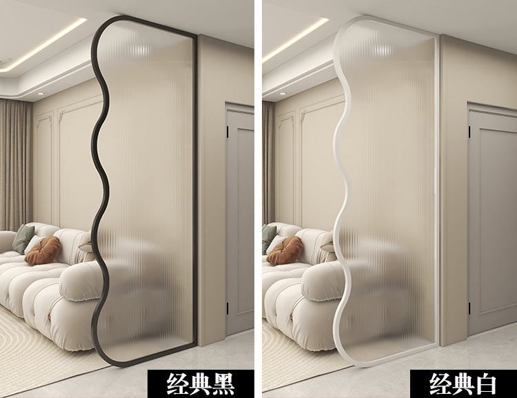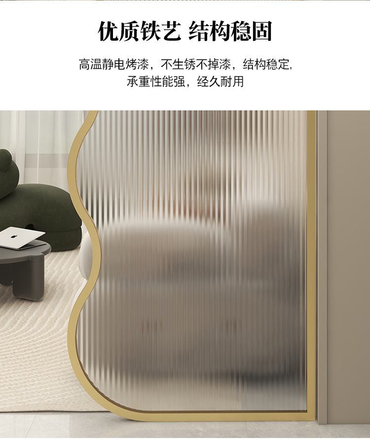 현대적인 미니멀리스트 입구 거실 장식 크림 스타일 철 칸막이 벽을 덮는 특수 모양의 창홍 유리 스크린