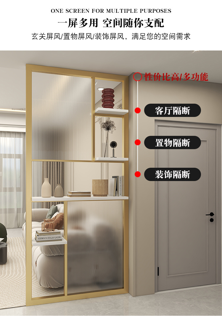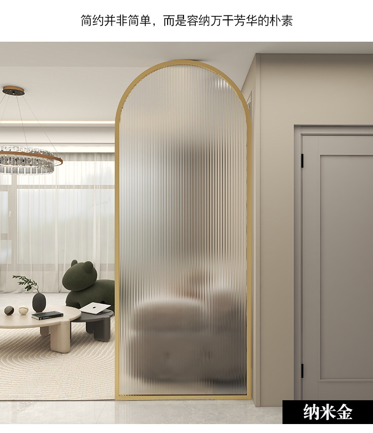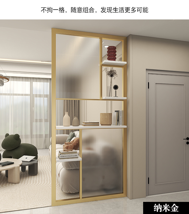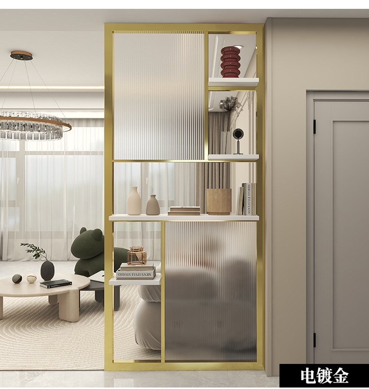 현대적인 미니멀리스트 입구 거실 장식 크림 스타일 철 칸막이 벽을 덮는 특수 모양의 창홍 유리 스크린스토어 가기