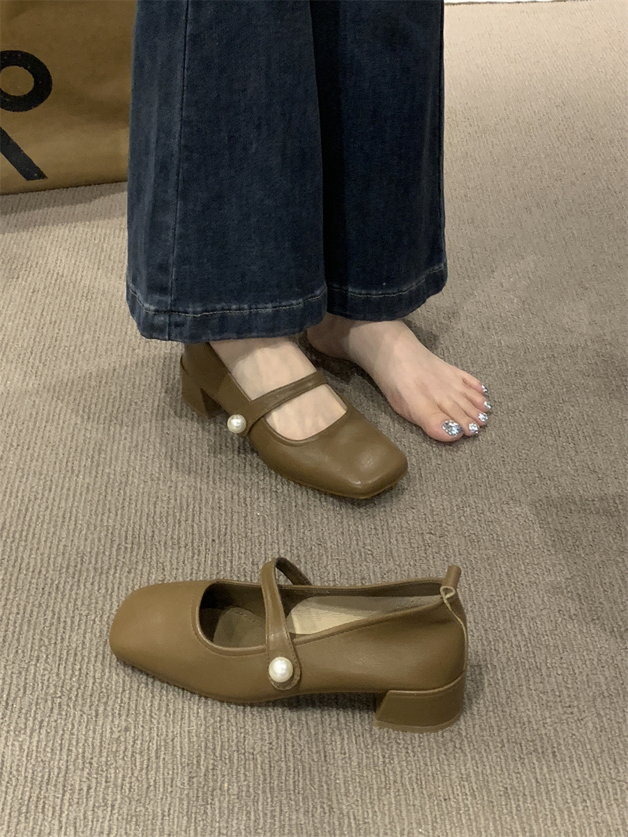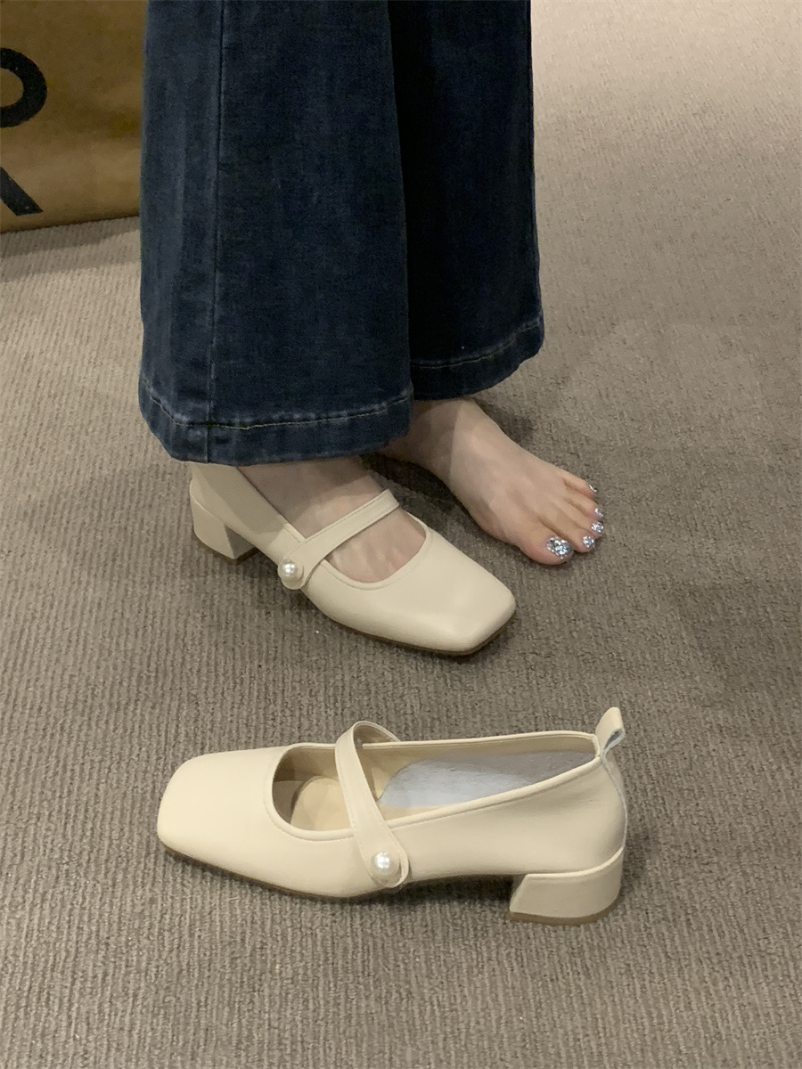 사각 발가락 메리 제인 신발 2024 봄과 가을 새로운 청키 한 발 뒤꿈치 원스트랩 프랑스 스타일 원피스 우아한 싱글 레이어 신발스토어 가기