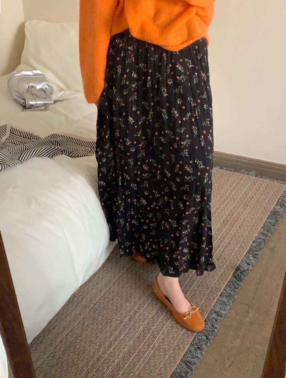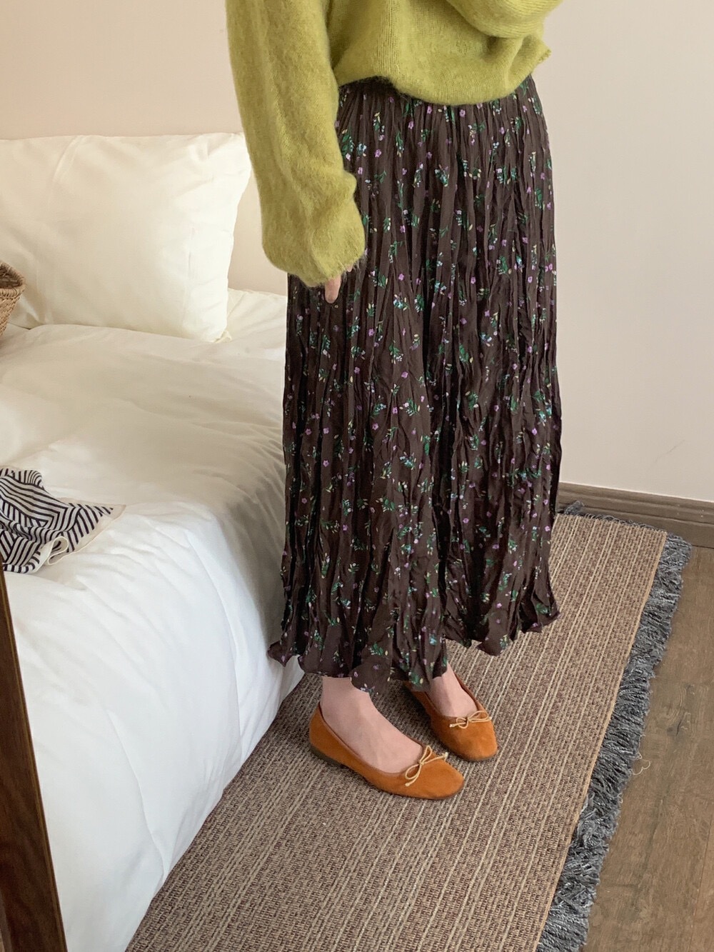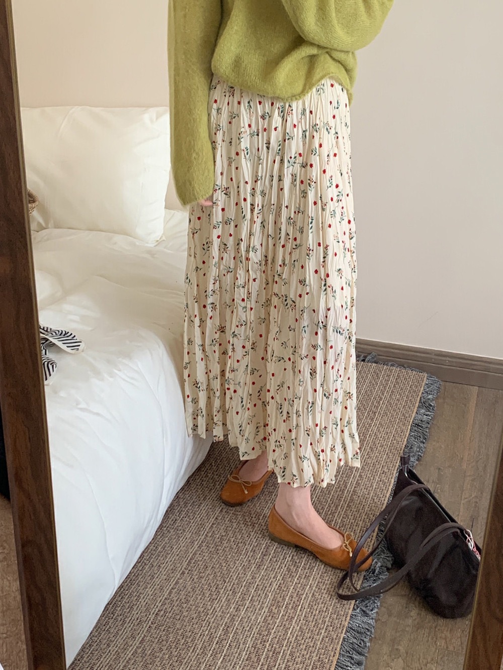 봄과 가을 2024 주름 치마 여성을위한 새로운 주름 작은 꽃 슬리밍 다목적 A 라인 중간 길이 스커트 여름