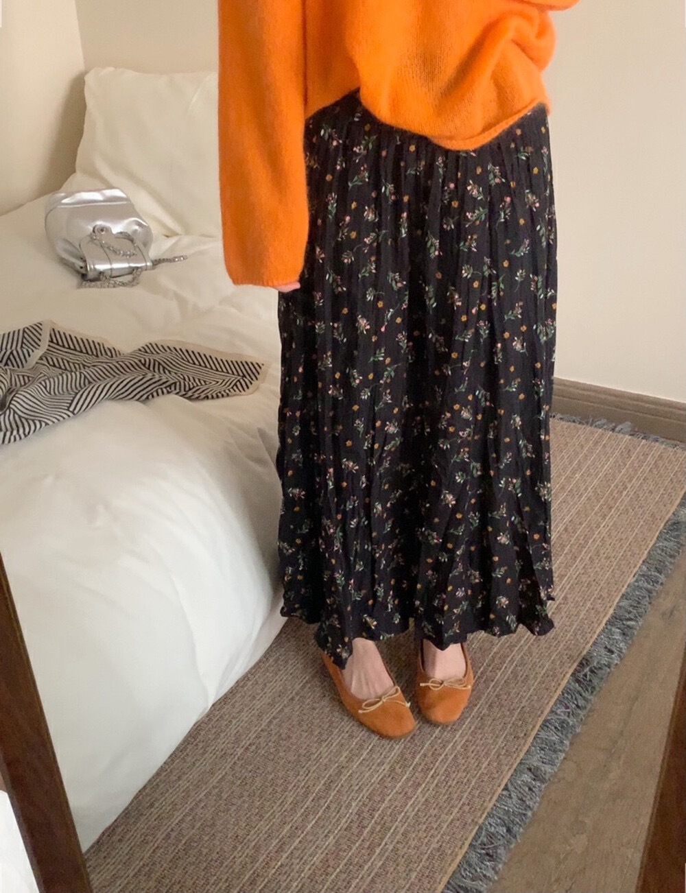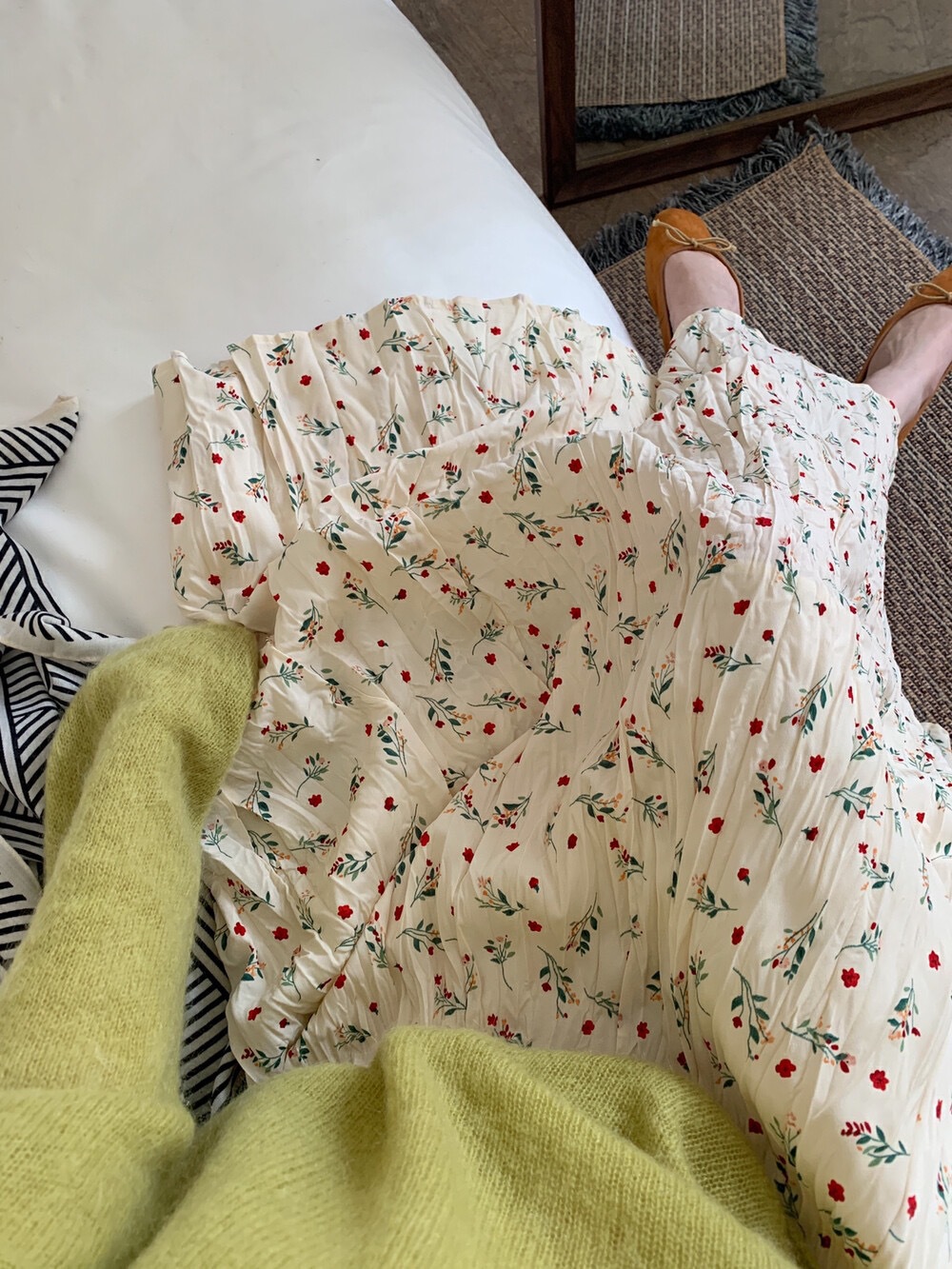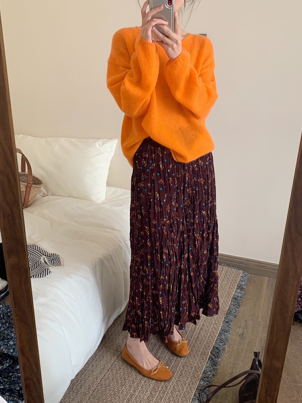 봄과 가을 2024 주름 치마 여성을위한 새로운 주름 작은 꽃 슬리밍 다목적 A 라인 중간 길이 스커트 여름