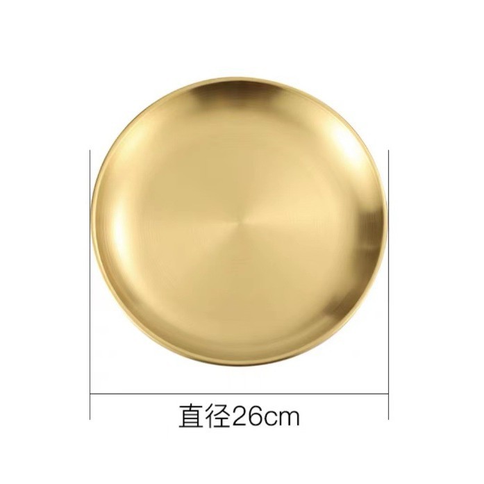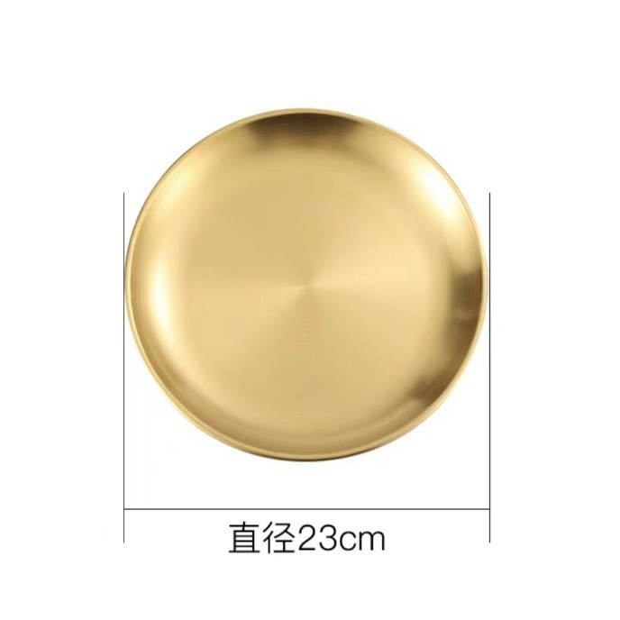 한국식 스테인레스 스틸 두꺼운 디스크 골든 카페 트레이 과일 플레이트 케이크 플레이트 뼈 접시 요리 판 얕은 접시