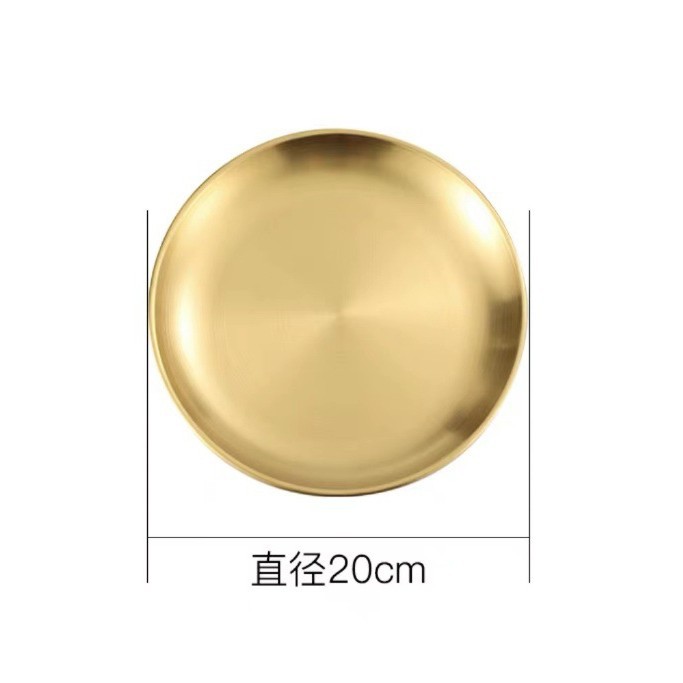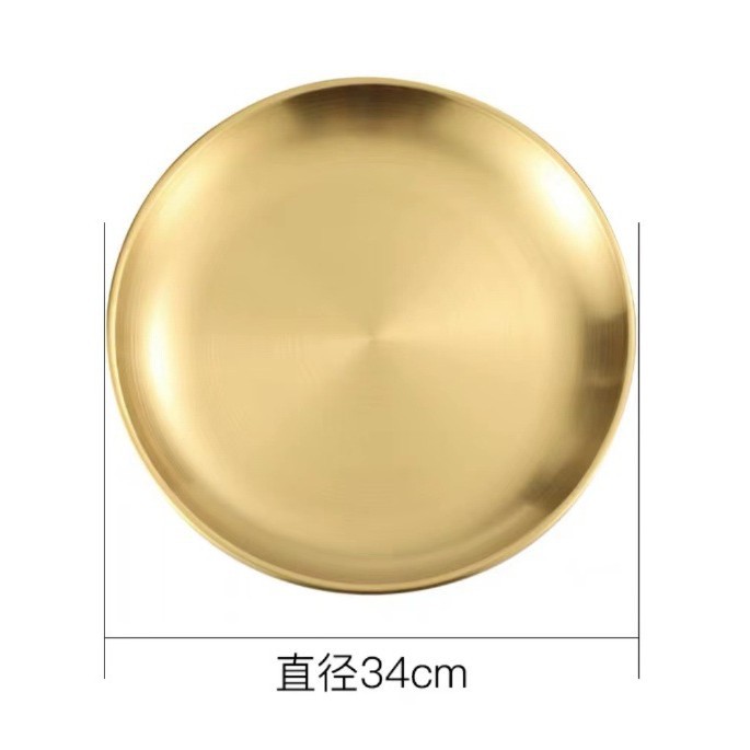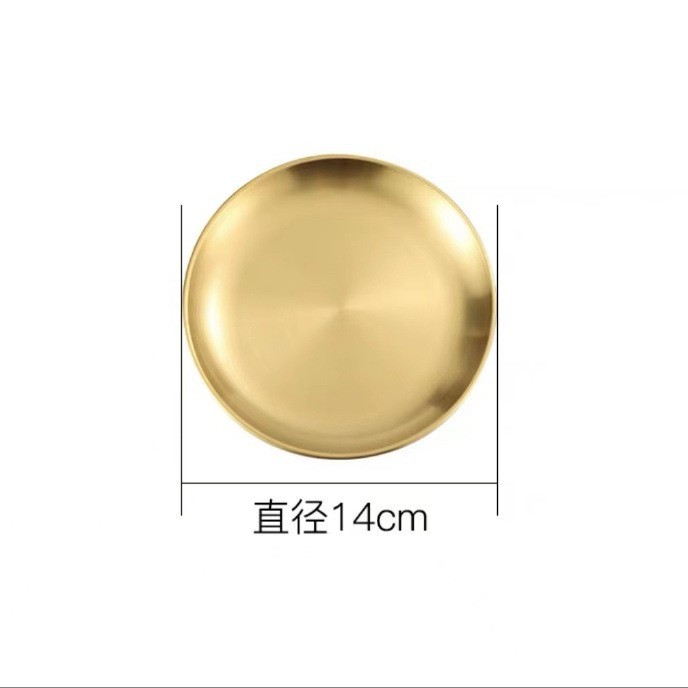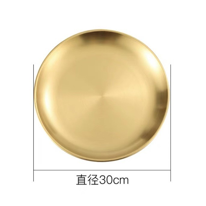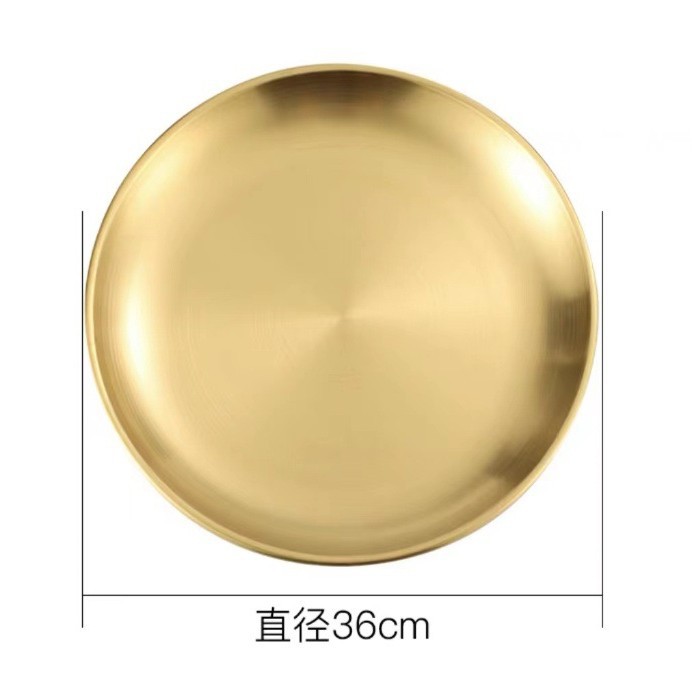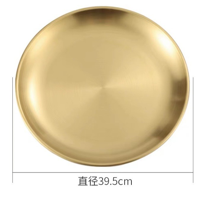 한국식 스테인레스 스틸 두꺼운 디스크 골든 카페 트레이 과일 플레이트 케이크 플레이트 뼈 접시 요리 판 얕은 접시스토어 가기