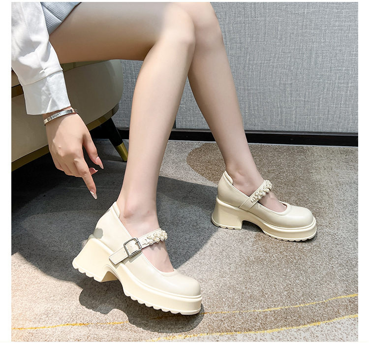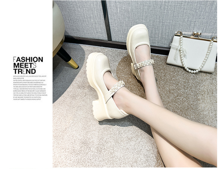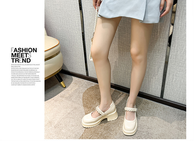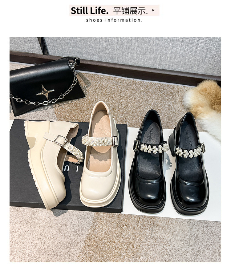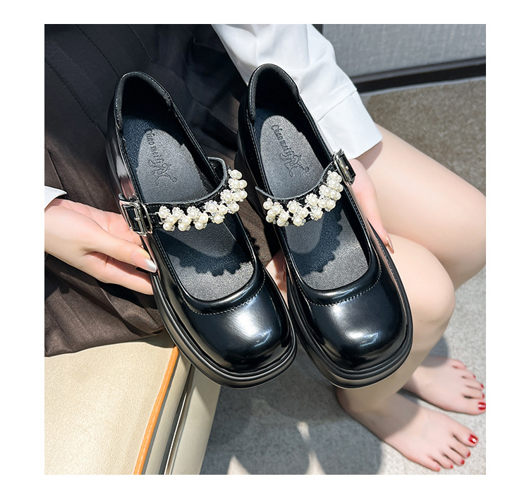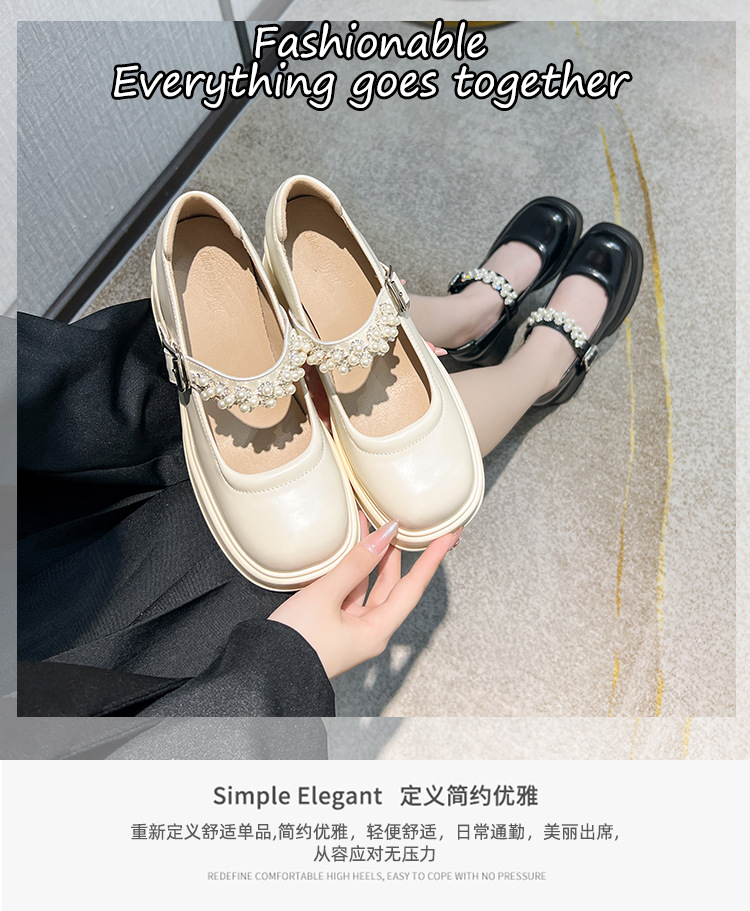2025 여성을위한 새로운 진주 체인 버클 증가 메리 제인 신발 3233 작은 사이즈 여성 신발 짧은 작은 가죽 신발스토어 가기
