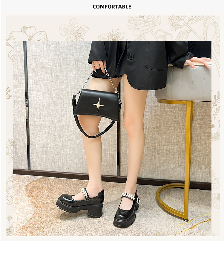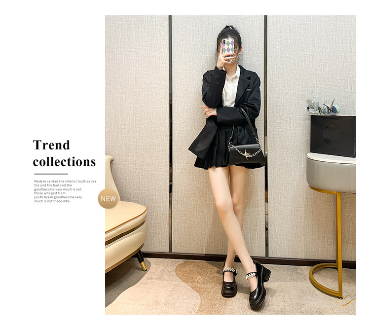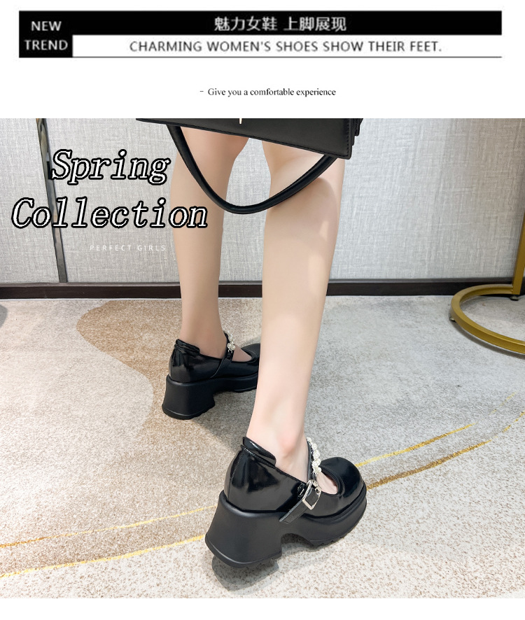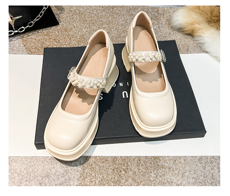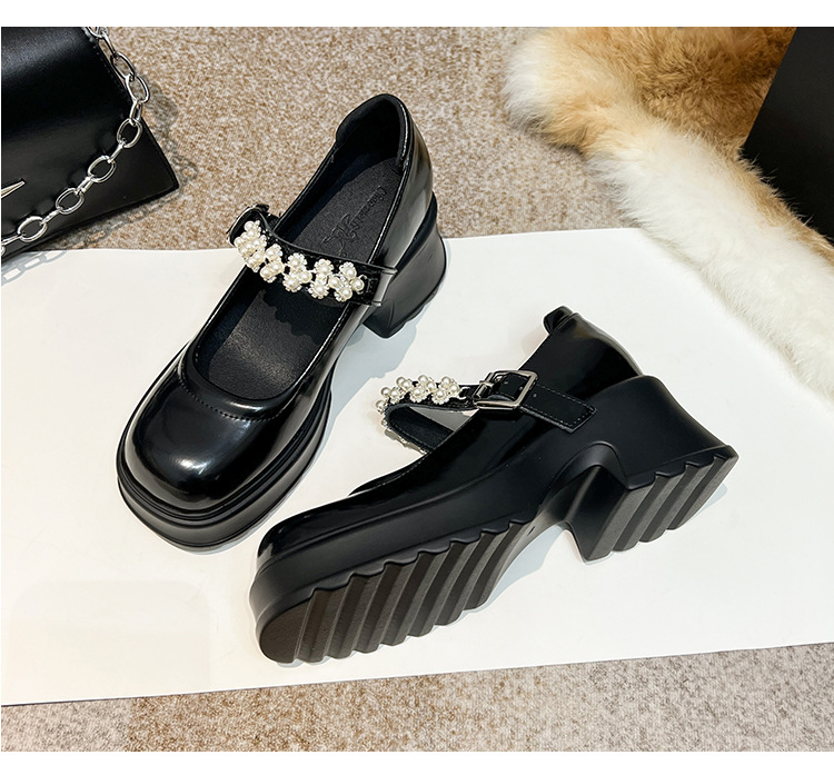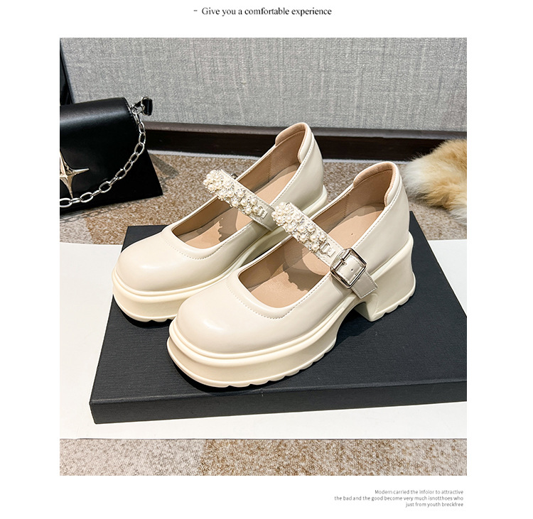2025 여성을위한 새로운 진주 체인 버클 증가 메리 제인 신발 3233 작은 사이즈 여성 신발 짧은 작은 가죽 신발스토어 가기