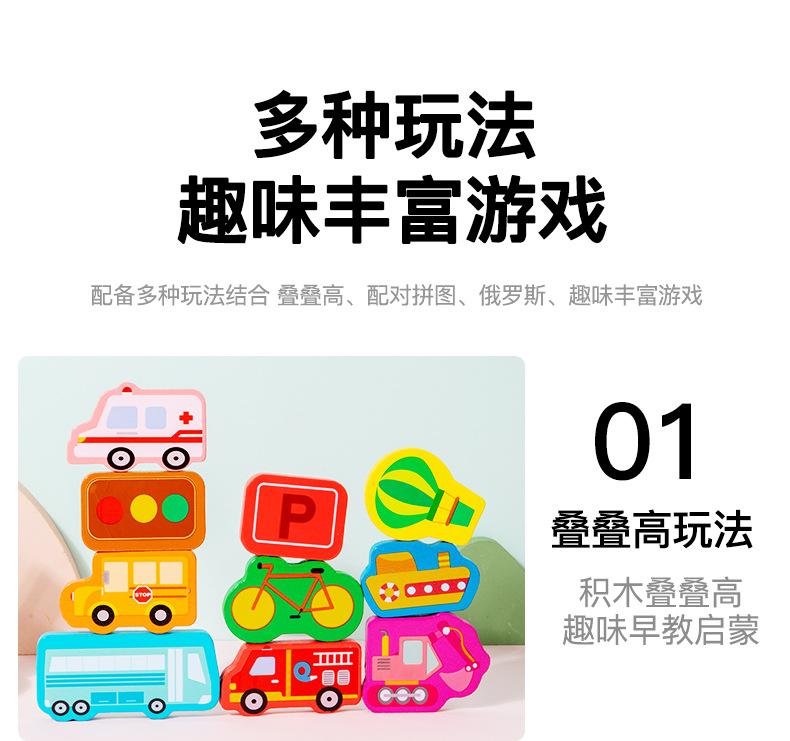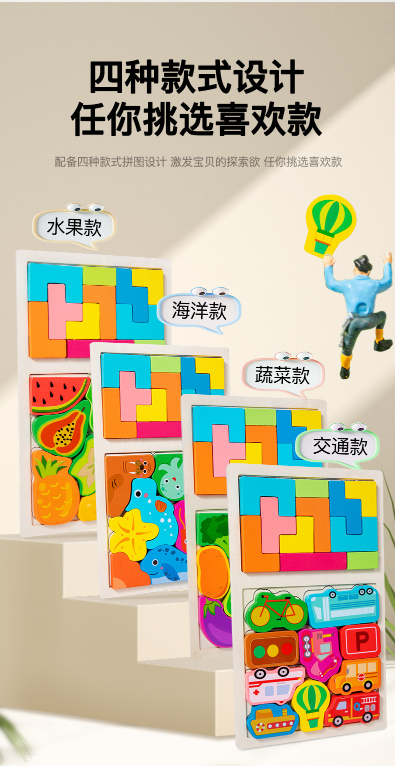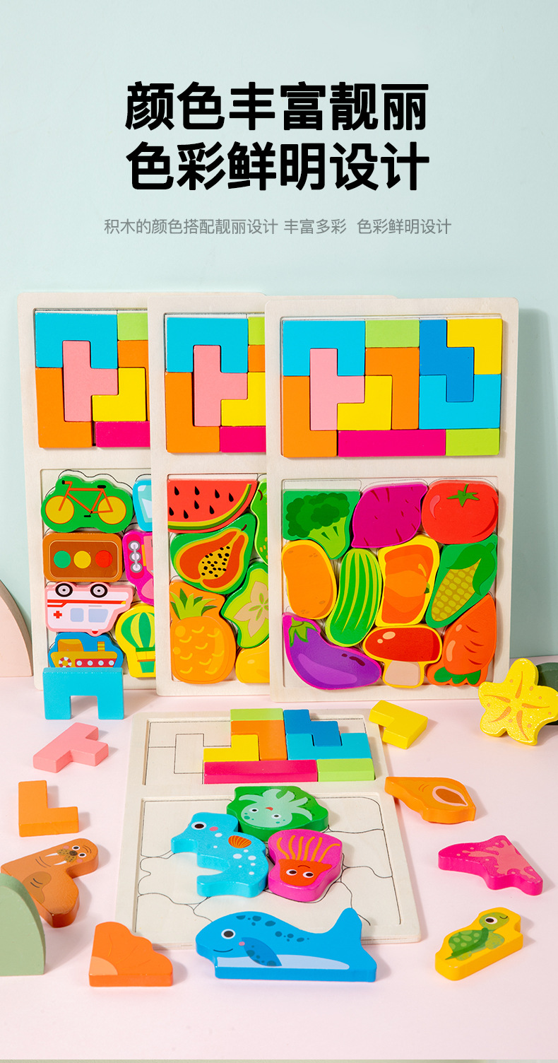 과일 교통 해양 교육용 블록 퍼즐 3-6세 남녀 어린이 장난감 입체 퍼즐 사고력 향상