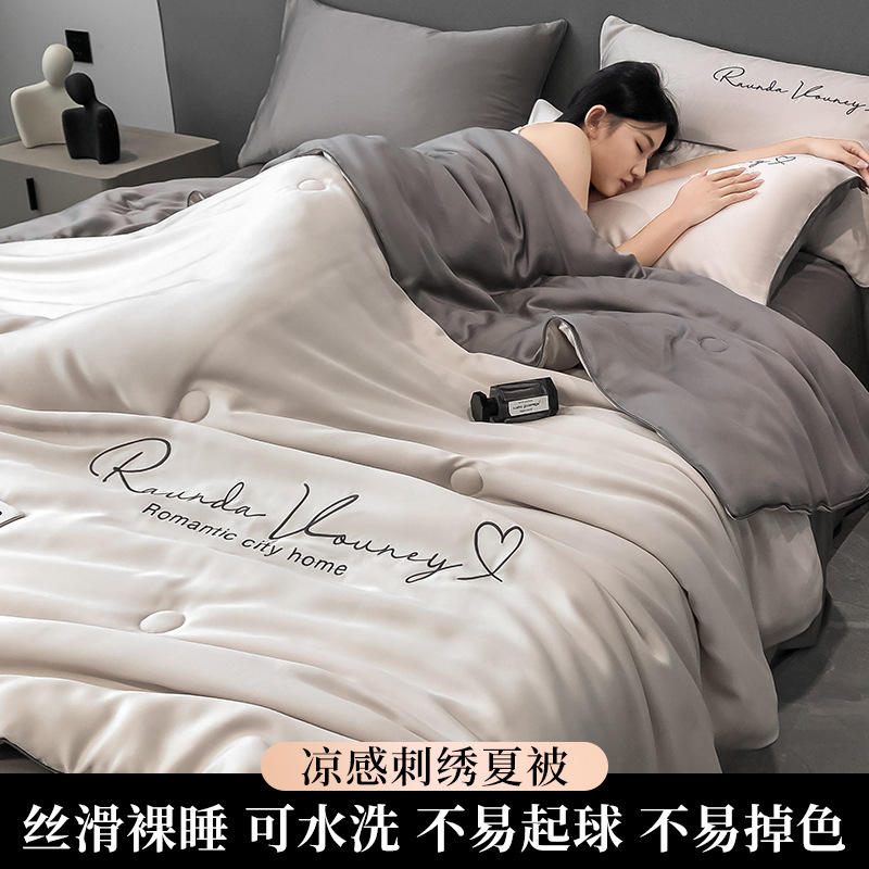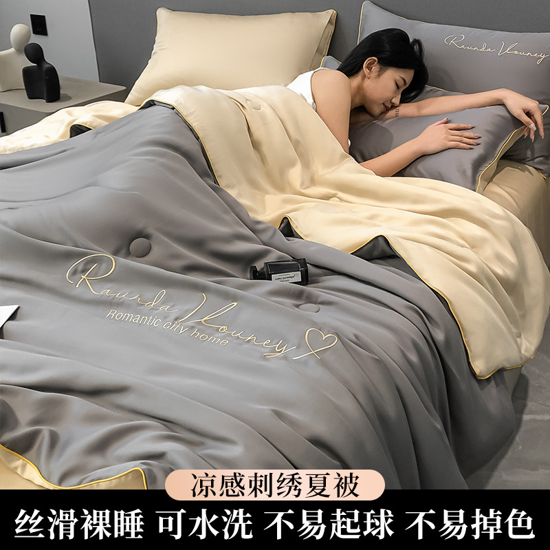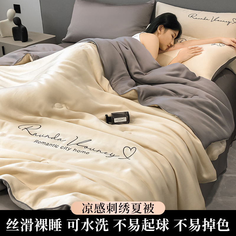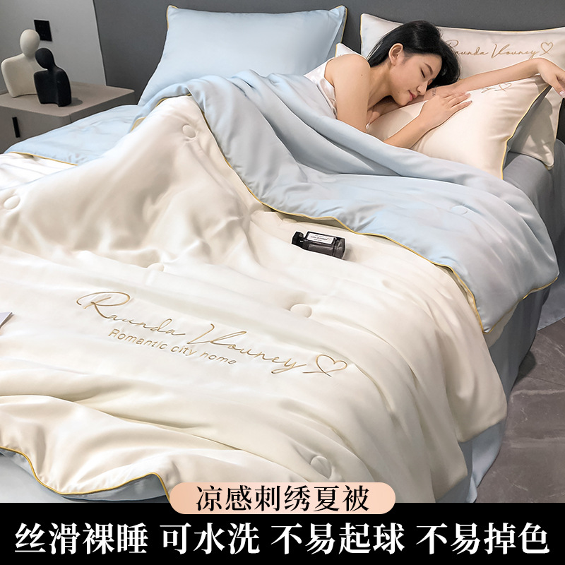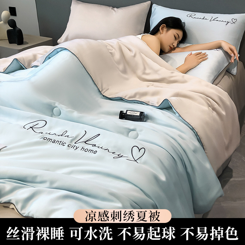 2025 새로운 여름 얼음 실크 여름 멋진 이불 에어컨 이불 싱글 얇은 이불 여름 이불 기계 세탁 가능