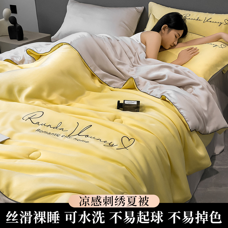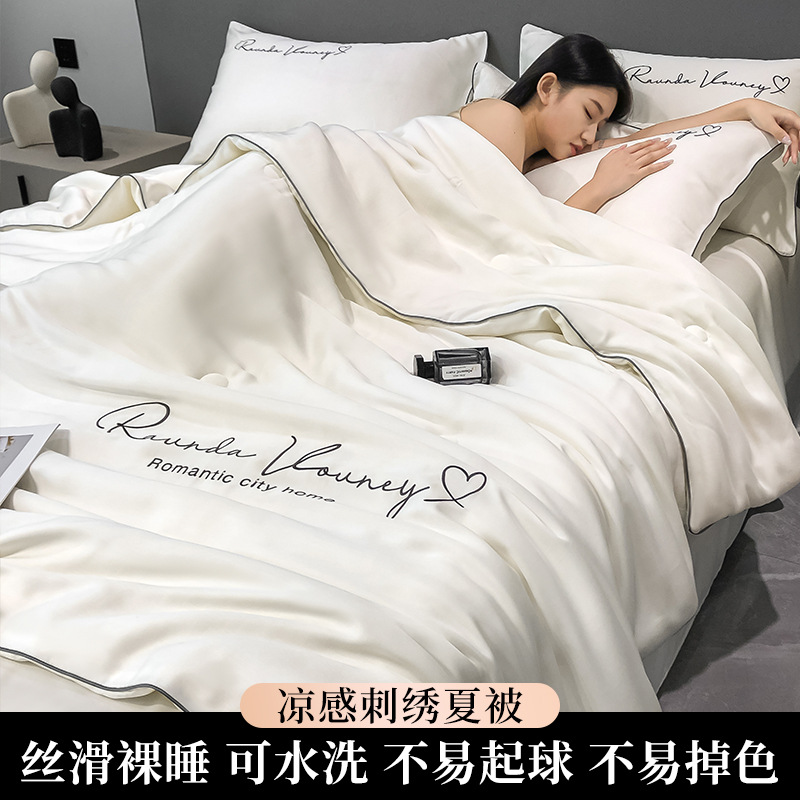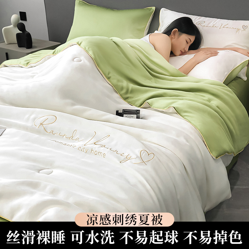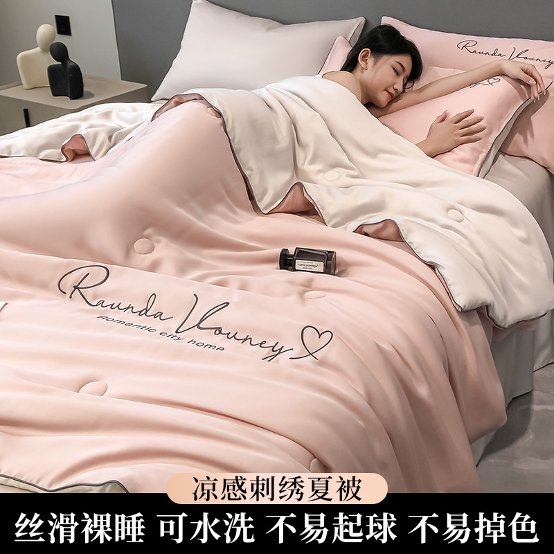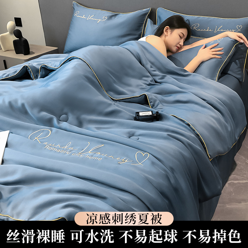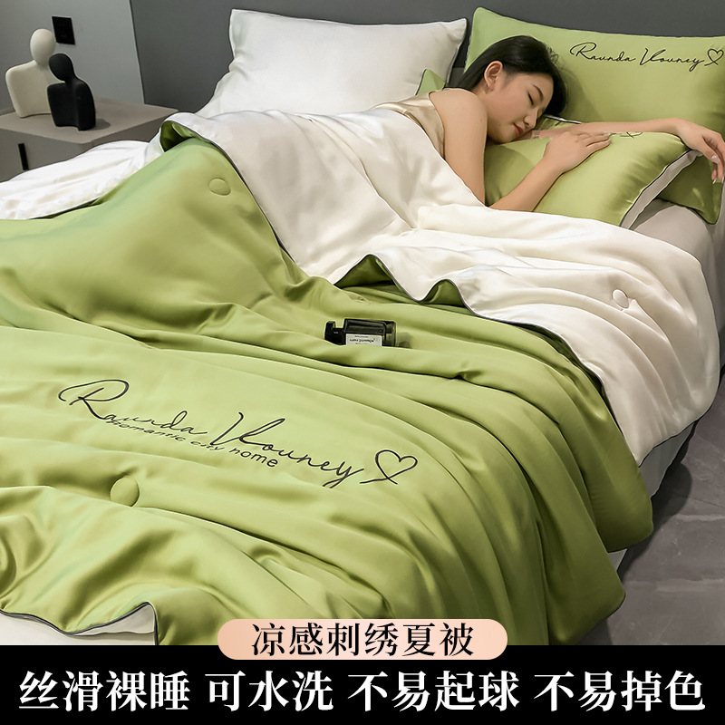 2025 새로운 여름 얼음 실크 여름 멋진 이불 에어컨 이불 싱글 얇은 이불 여름 이불 기계 세탁 가능