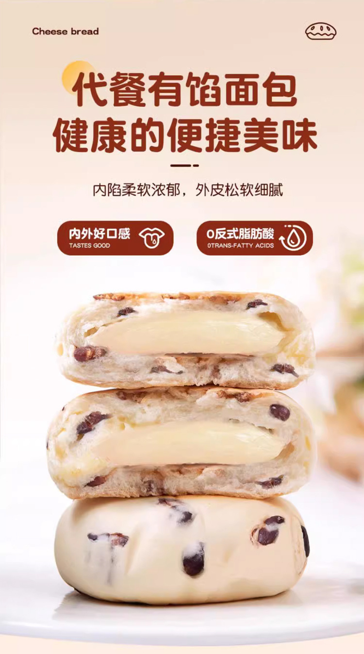 레드 콩 치즈 가방 치즈 샌드위치 빵 풀 박스 아침 초콜릿 식사 교체 페이스트리 스낵 레저 식품 스낵