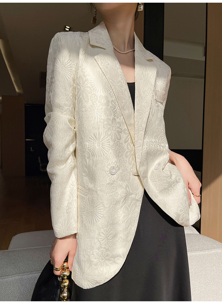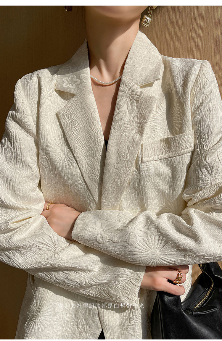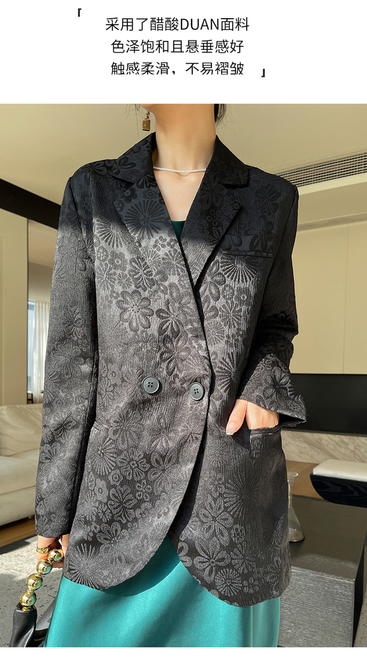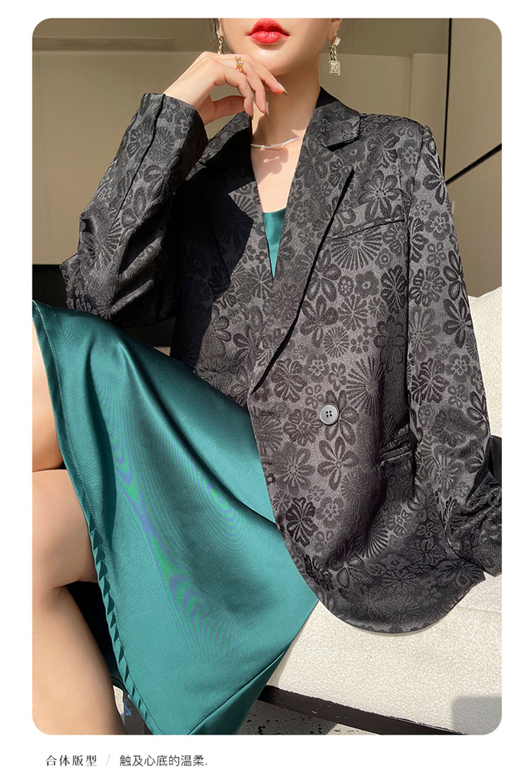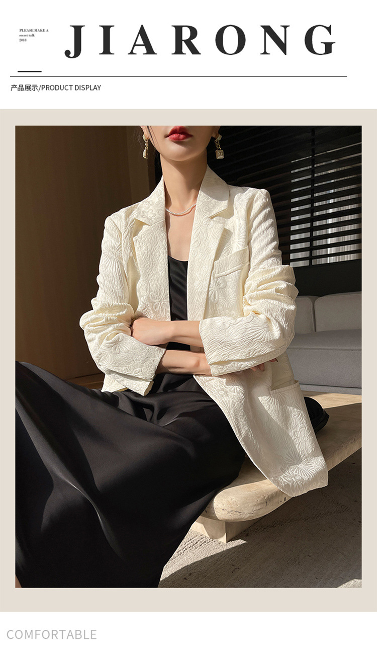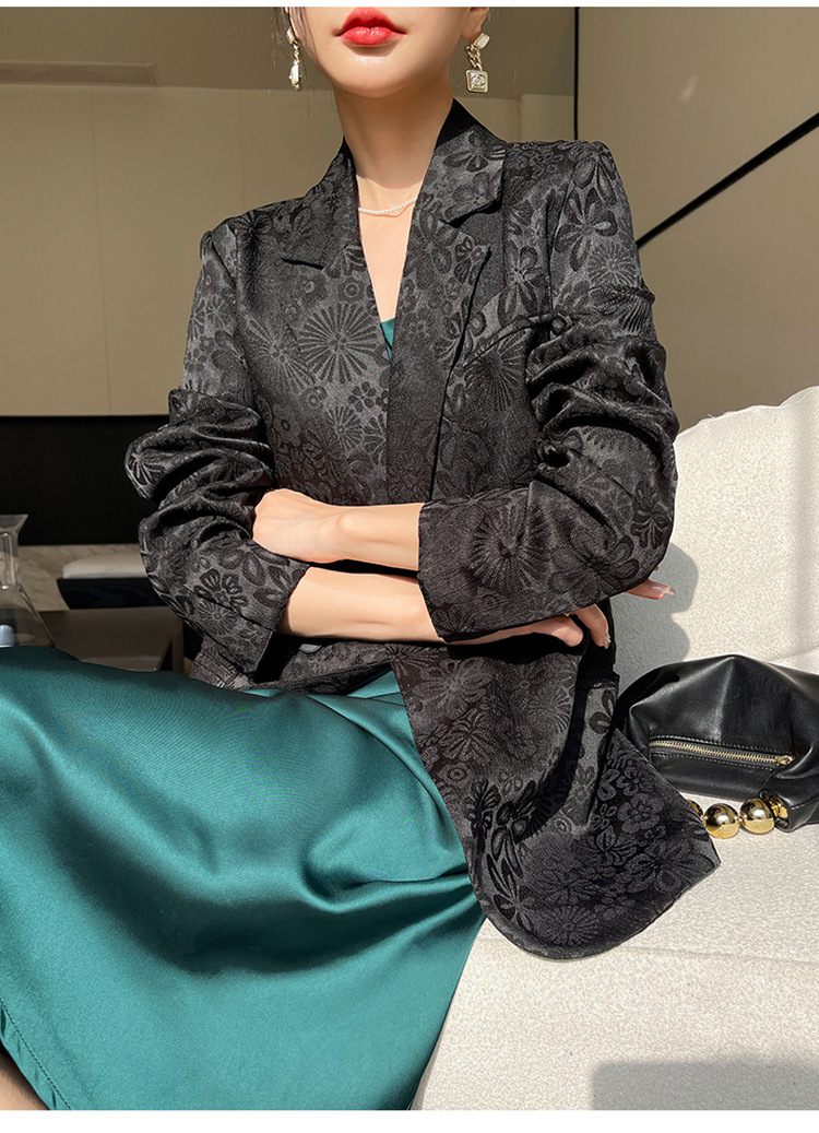 봄 중국 스타일의 세트 재킷 여성의 새로운 느슨한 기질 통근 다용도 높은 감각 단색 자카드 세트스토어 가기