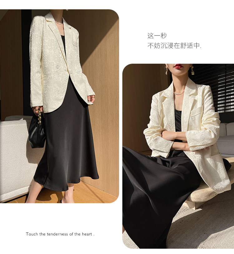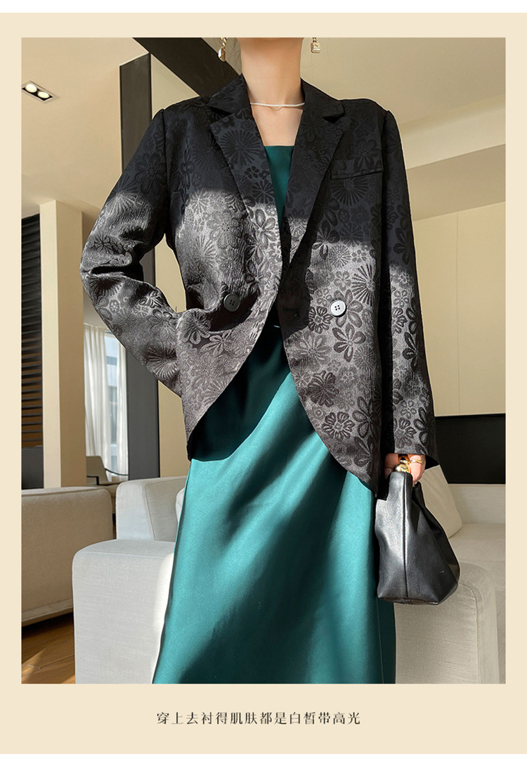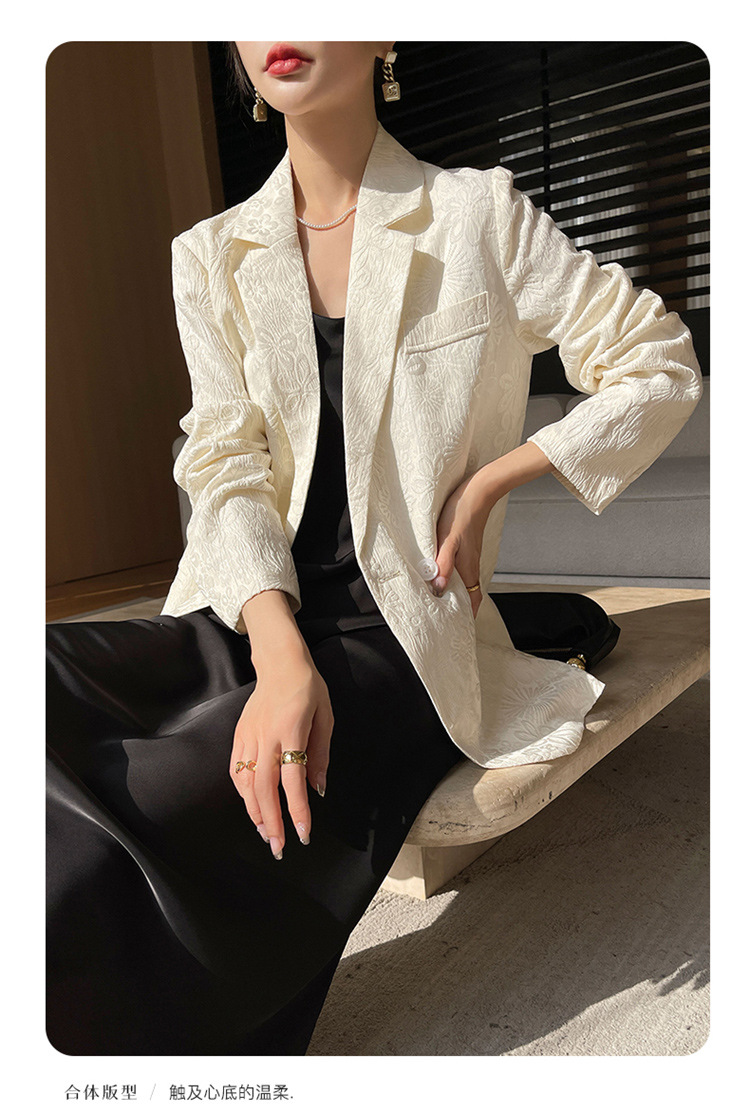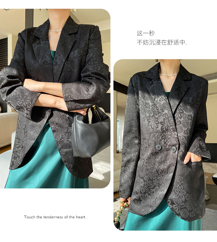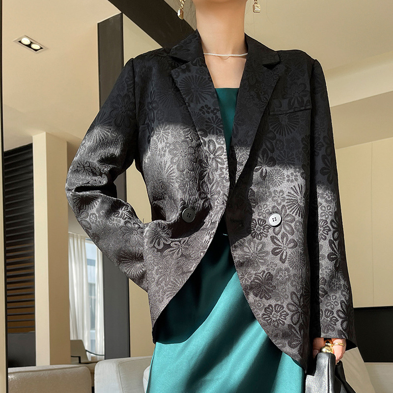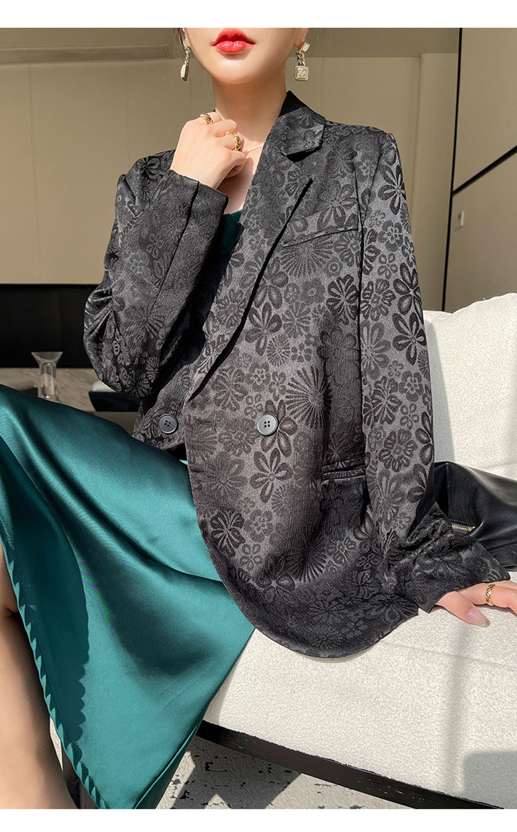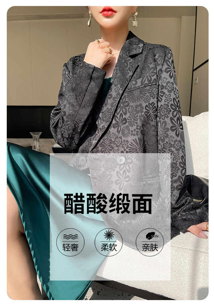봄 중국 스타일의 세트 재킷 여성의 새로운 느슨한 기질 통근 다용도 높은 감각 단색 자카드 세트스토어 가기