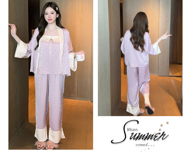 잠옷 여성의 여름 아이스 실크 얇은 중국 스타일 슬링 잠옷 3 피스 세트 봄 및 가을 고급 홈 웨어 가슴 패드스토어 가기