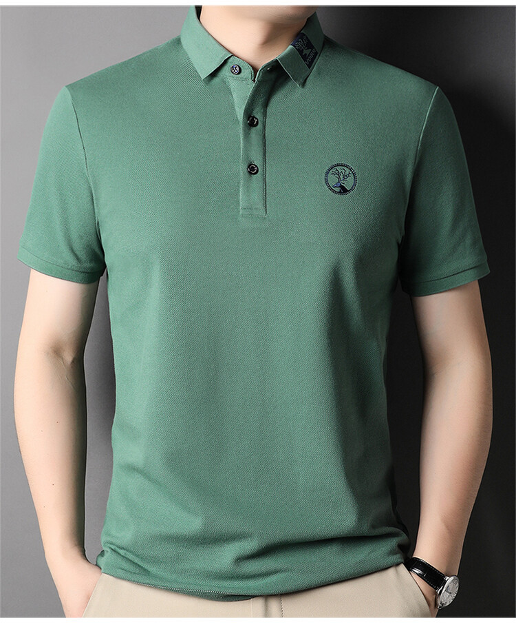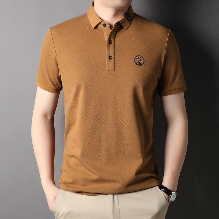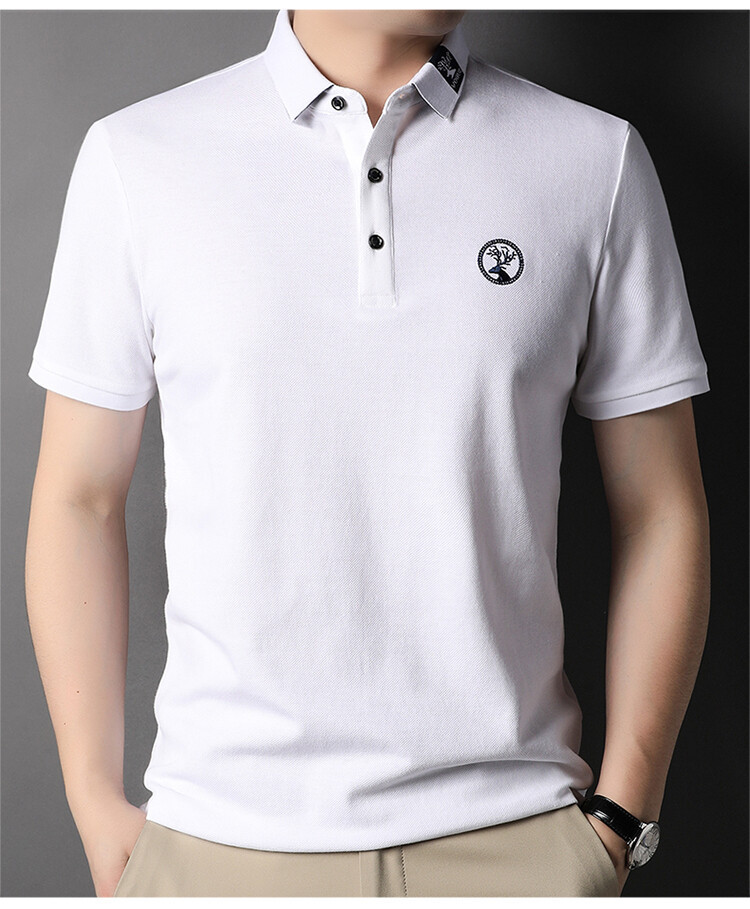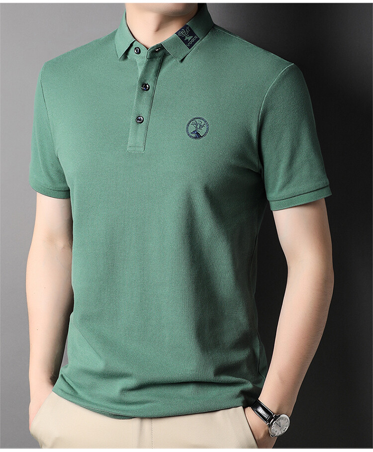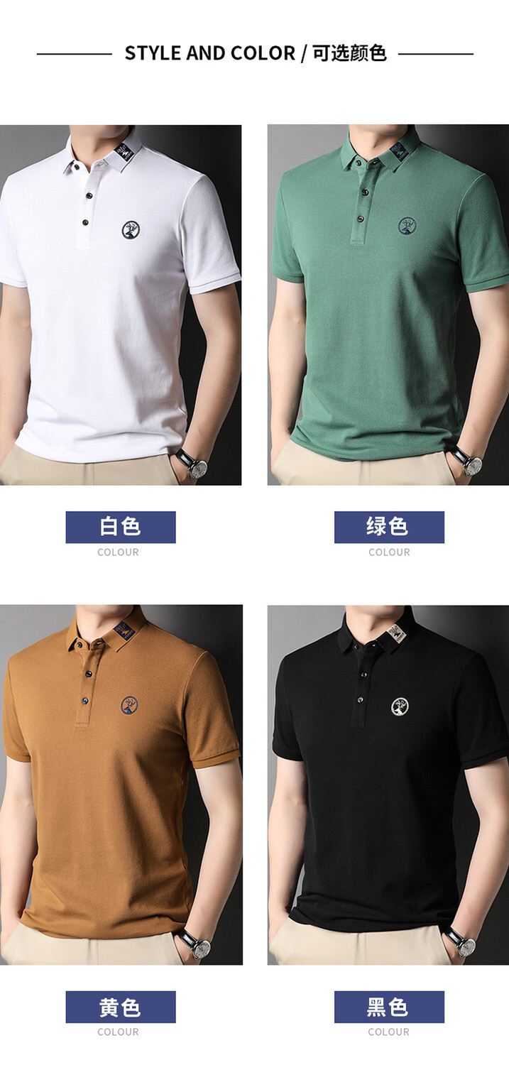 여름 2024 남성 하이 엔드 반팔 머서리 면화 POLO 자수 옷깃 탑 비즈니스 캐주얼 청소년 잘 생긴 티셔츠