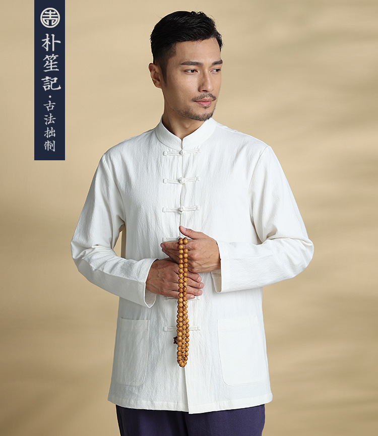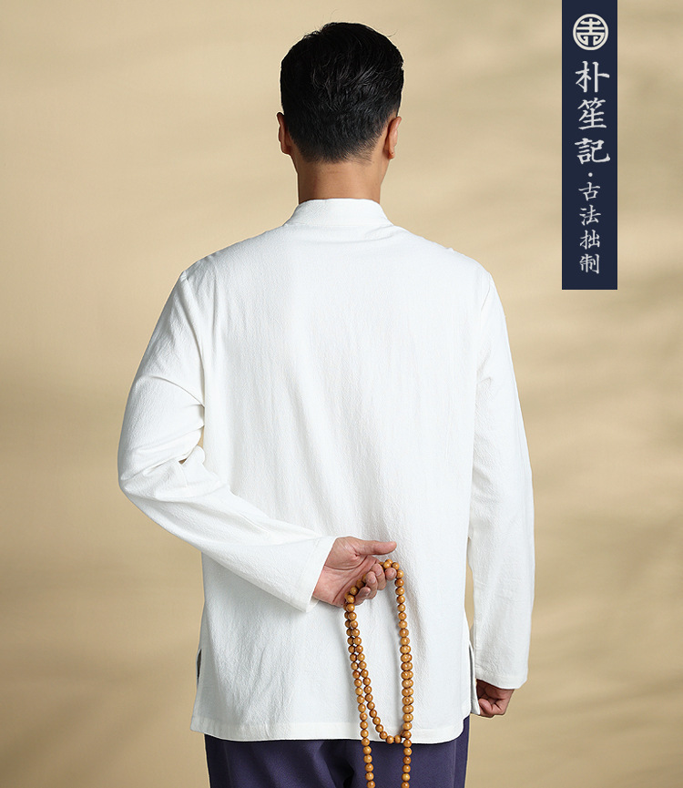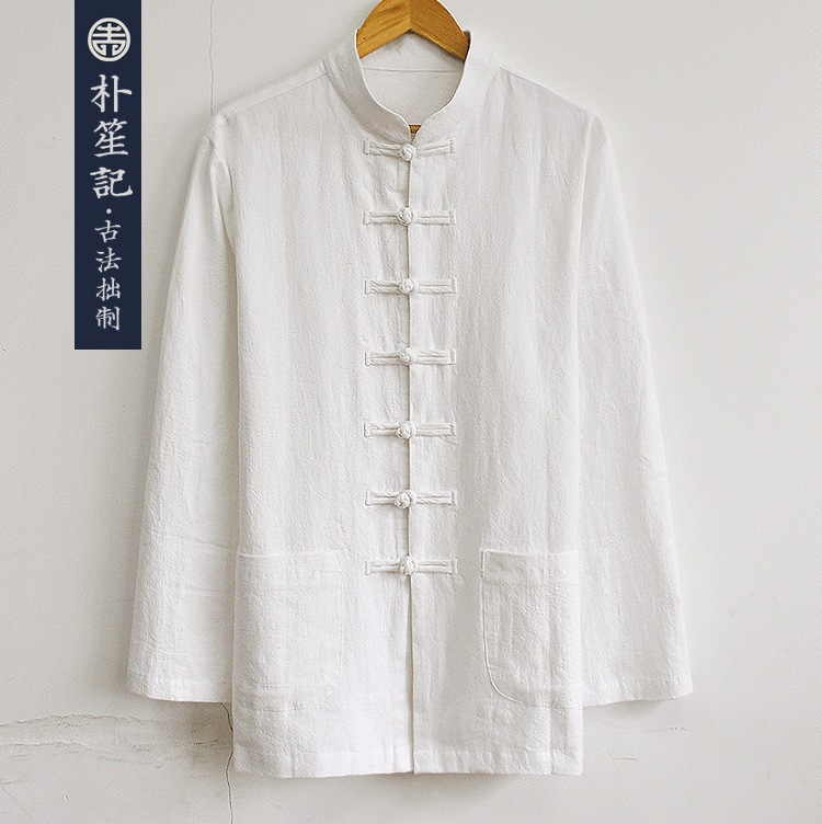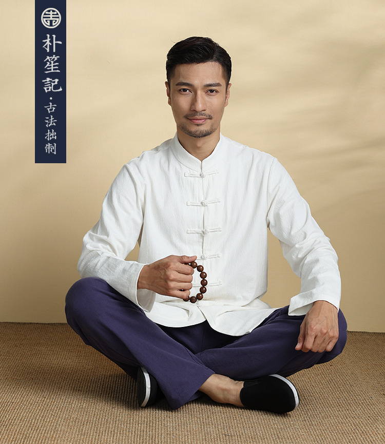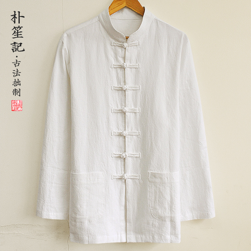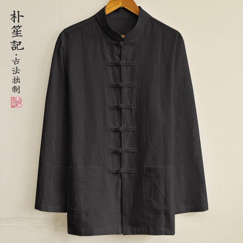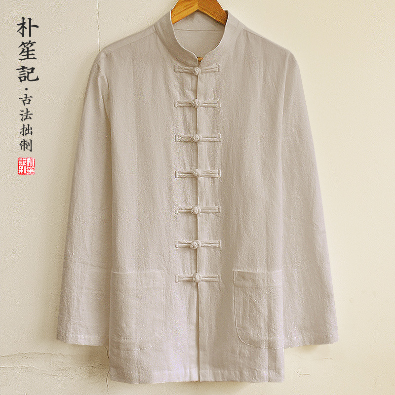 박의 오리지널 린넨 셔츠 남성 중국 스타일 봄과 가을 탕 세트 최고 복고풍 예술 스타일 느슨한 플러스 사이즈 남성 의류스토어 가기