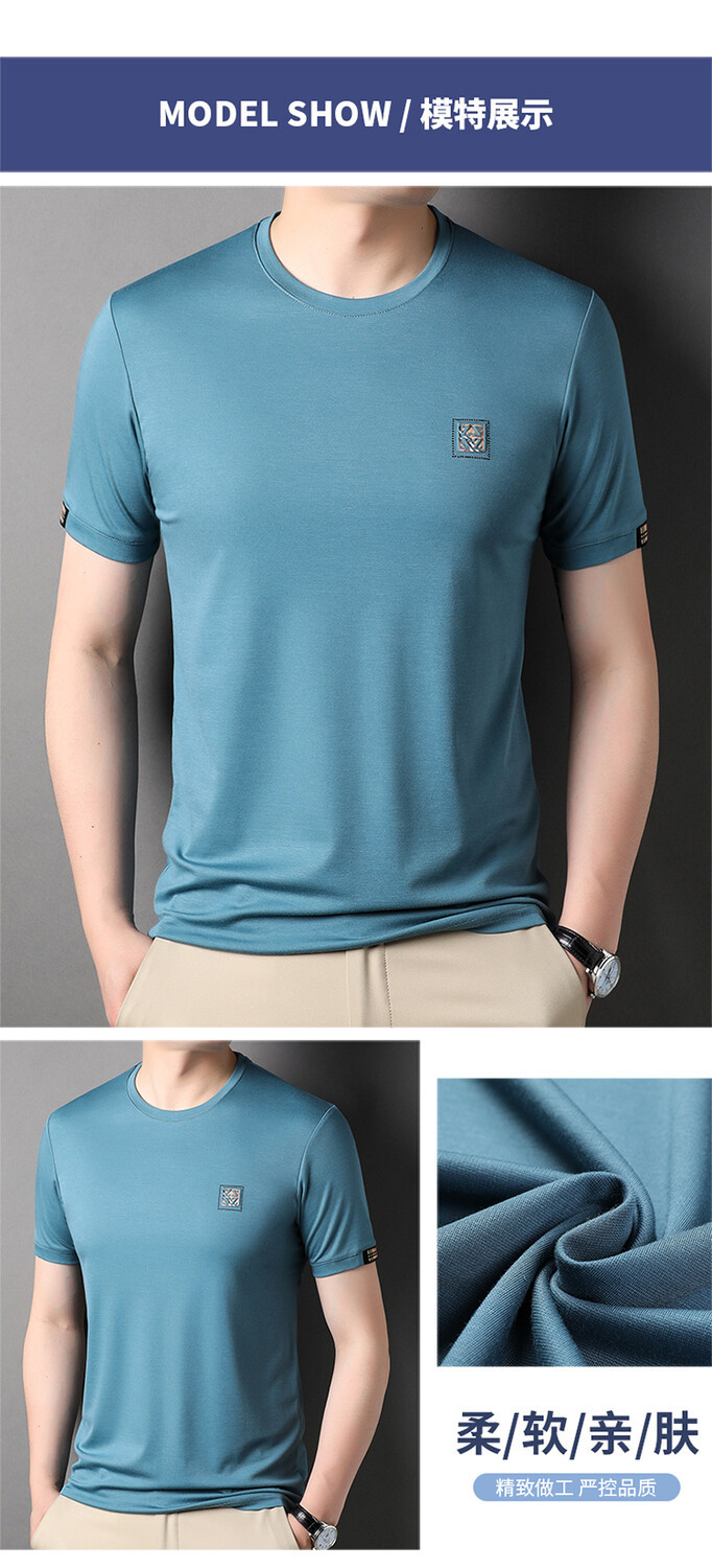 여름 얇은 둥근 목면 모조 다이아몬드 짧은 소매 티셔츠 남성 청소년 느슨한 캐주얼 탑 옷 트렌디 한 반소매 트렌디 한 남성