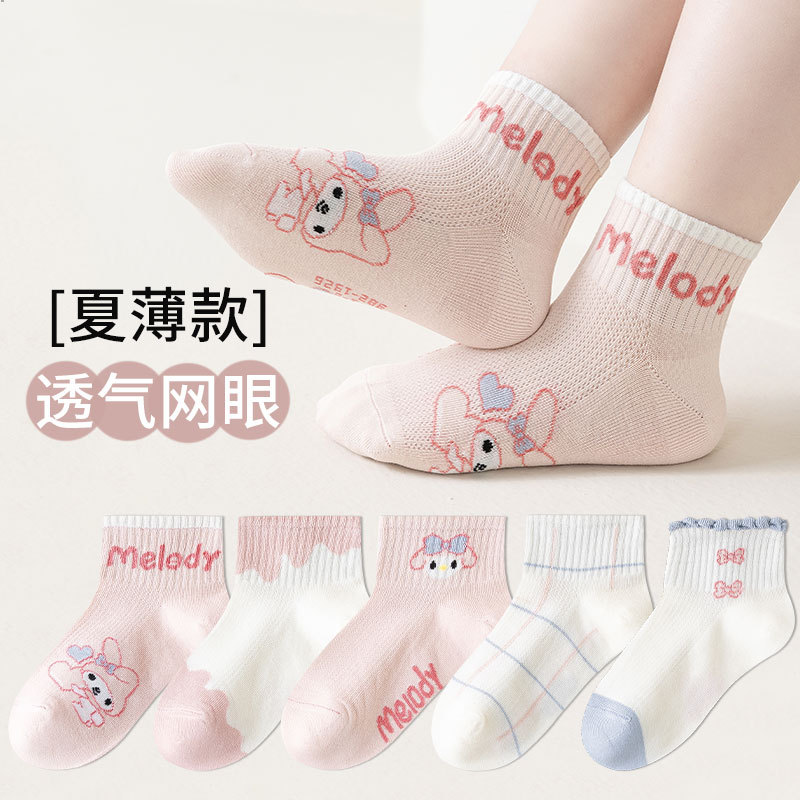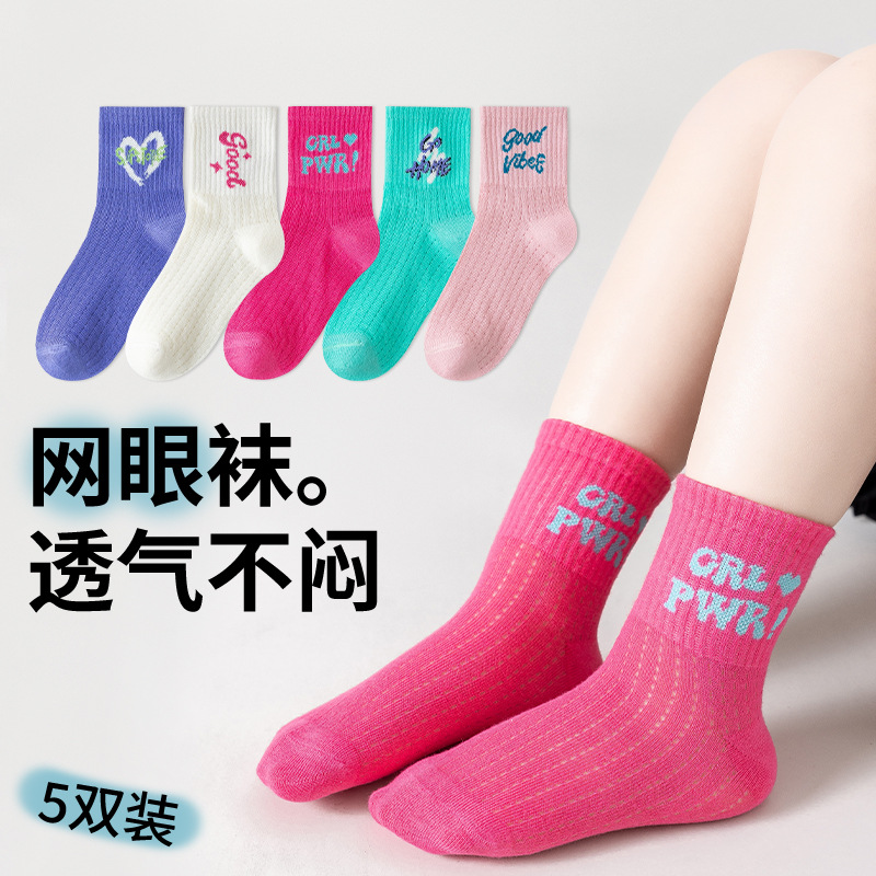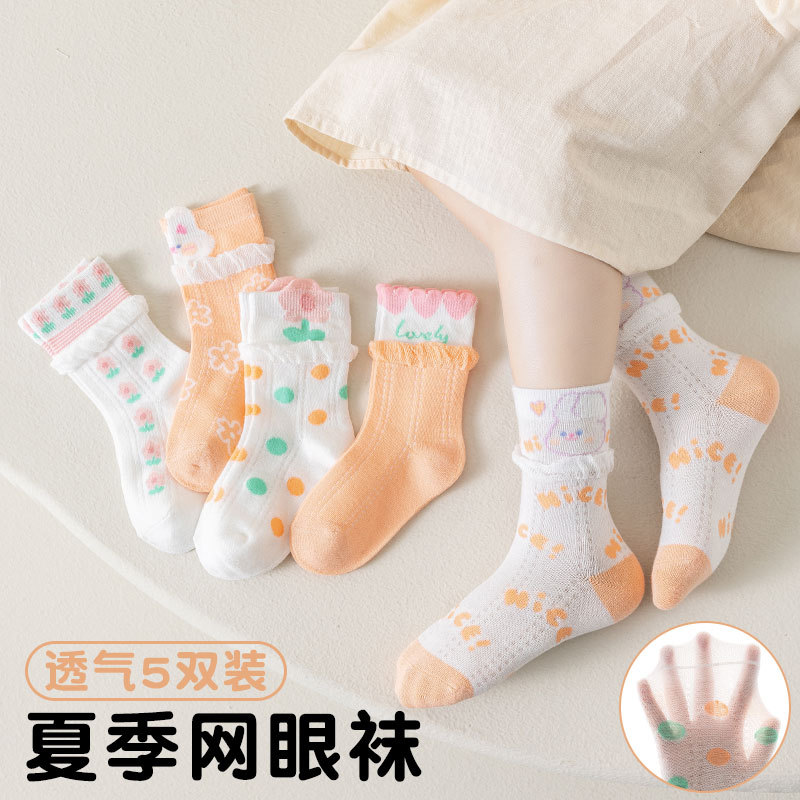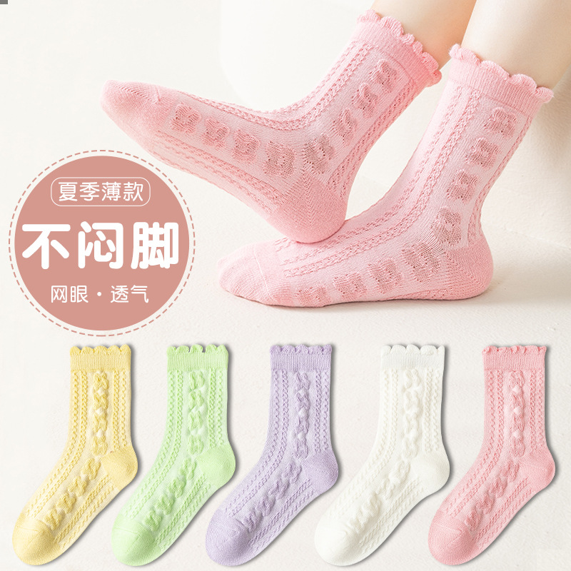어린이 양말 여름 새 소녀 레이스 공주 양말 올 매치 캔디 컬러 중반 송아지 메쉬 면 양말 여성 아기 양말