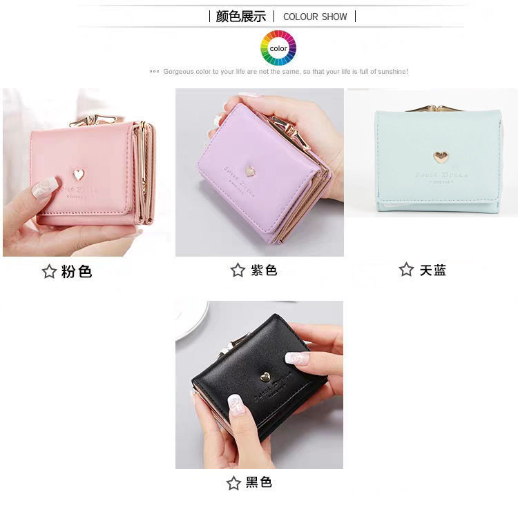 새로운 지갑 여성 짧은 동전 지갑 한국 스타일 여성 학생의 미니 귀여운 접기 작은 지갑 유행 멀티 카드 가방