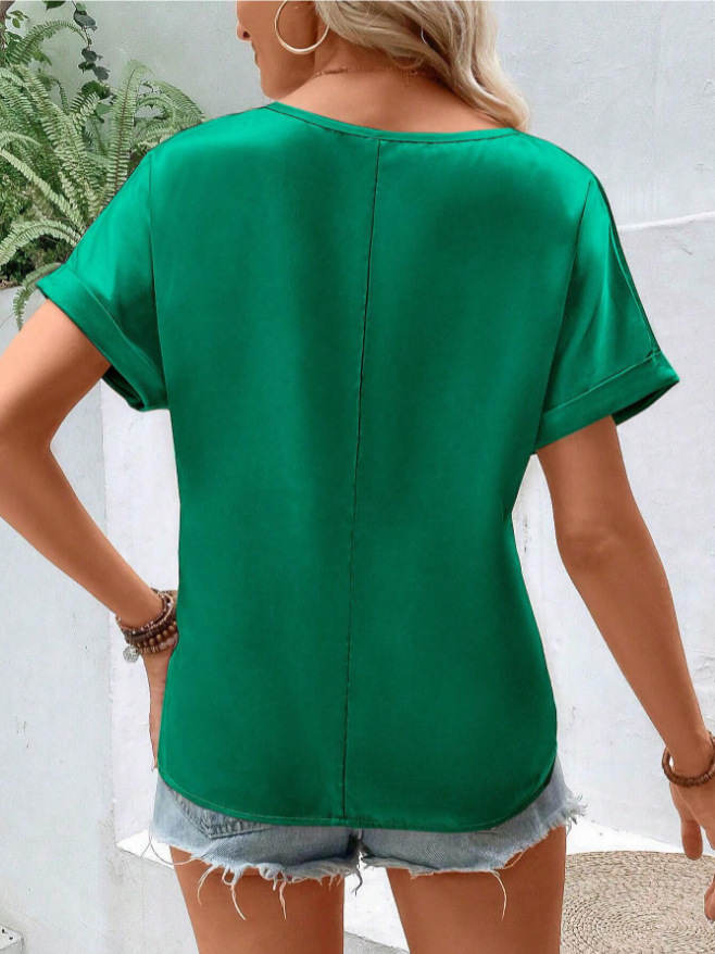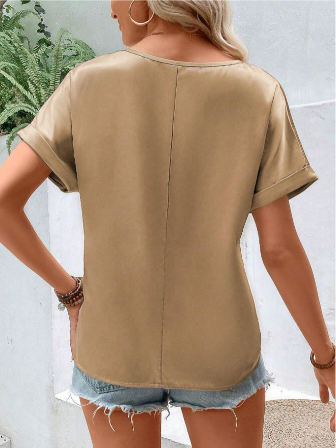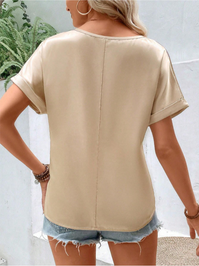 女装春季衣服 女装气质高级感 短袖T恤女 2025欧美女装色丁 女装职场高级感 短袖t恤女 v领t恤女 t恤衫 内搭上衣女春秋 上衣春季 名媛风上衣 t恤欧美 速卖通t恤 外贸服装代工厂 服装定做贴标 欧美上衣女高级 2025 早春夏秋冬天 新款全新新品穿搭 仿真丝色丁缎面 高级感设计感气质简约女士女式女装衣服服装 外贸欧美亚马逊速卖通独立站跨境欧美风北美 一件代发批发 定制爆款加工工厂加工厂定做厂家现货
